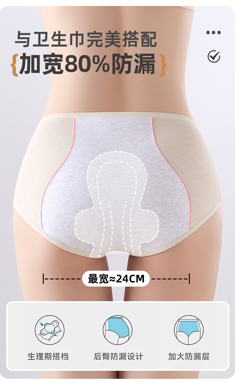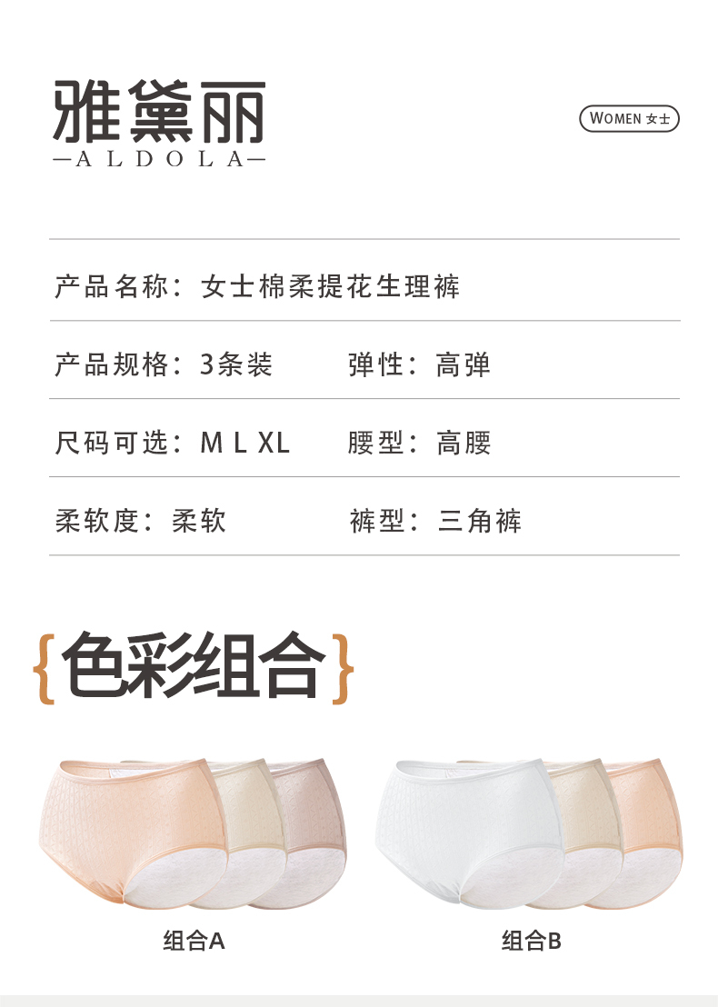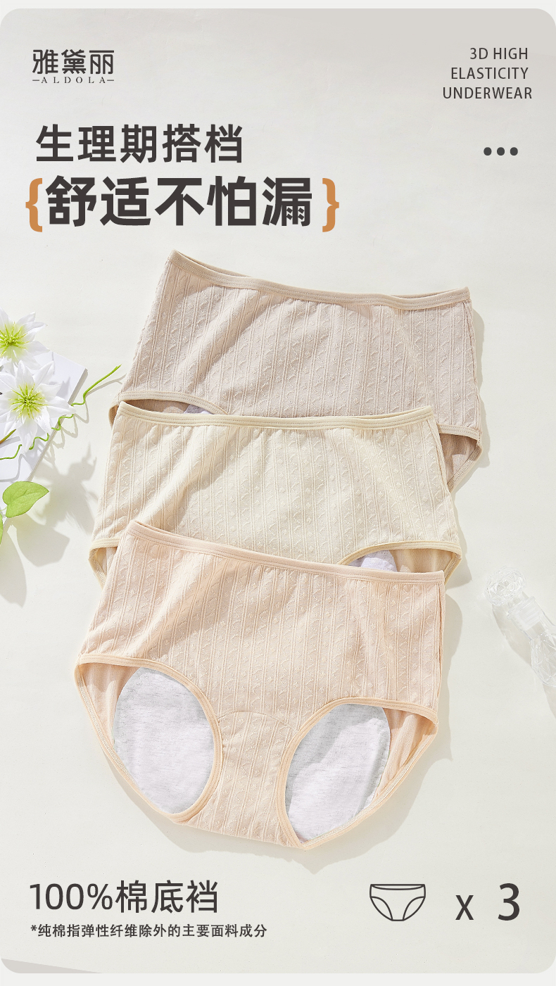 ALDOLA/雅黛俪生理裤女士月经期专用加宽防漏中腰纯棉姨妈裤内裤