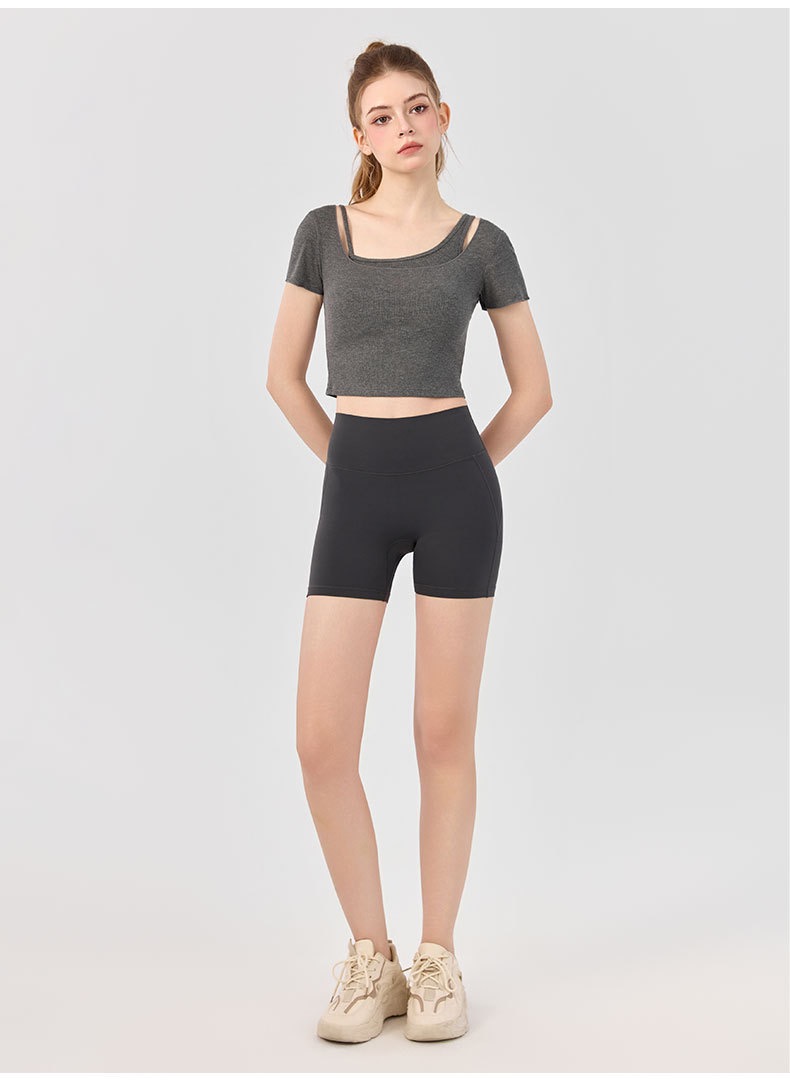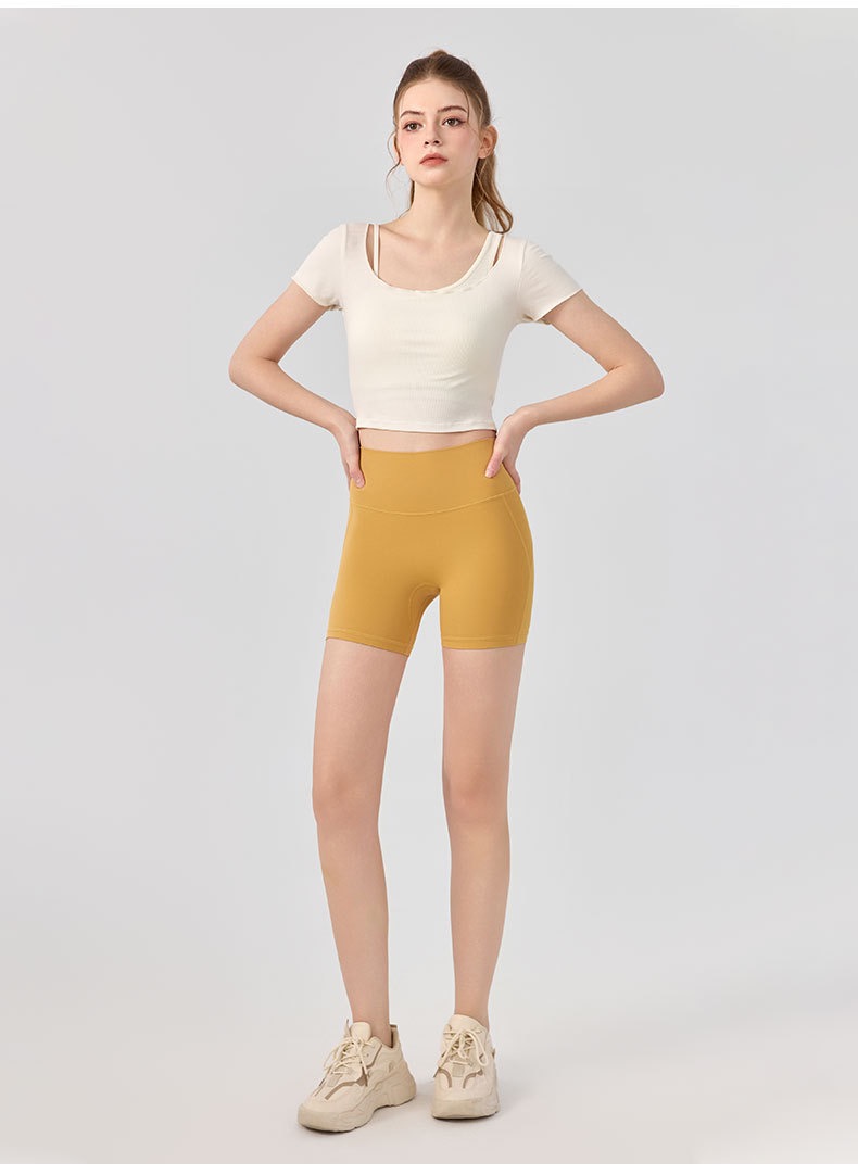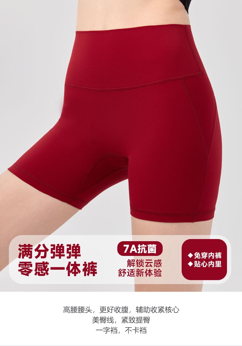 【限时59元】一片式瑜伽短裤无痕裸感高腰蜜桃提臀紧身热裤运动健身三分裤BMMZ-364