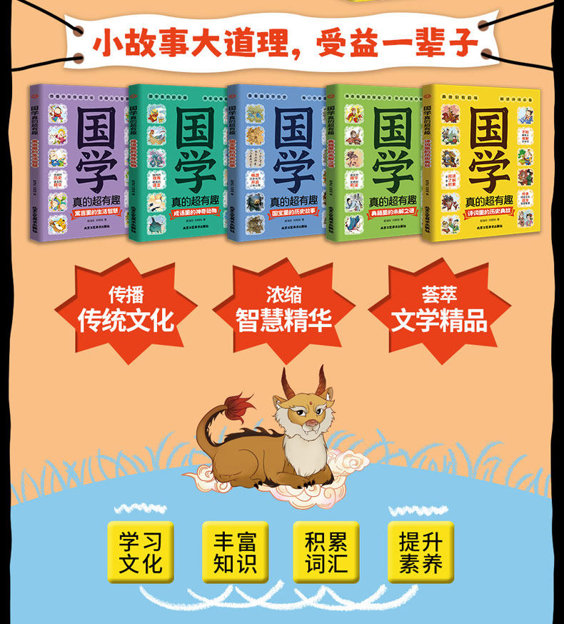 国学真的超有趣全5册中华传统文化入门读物诗词历史故事典籍未解之谜国宝成语里的动物寓言里的生活智慧小学生课外国学经典漫画书