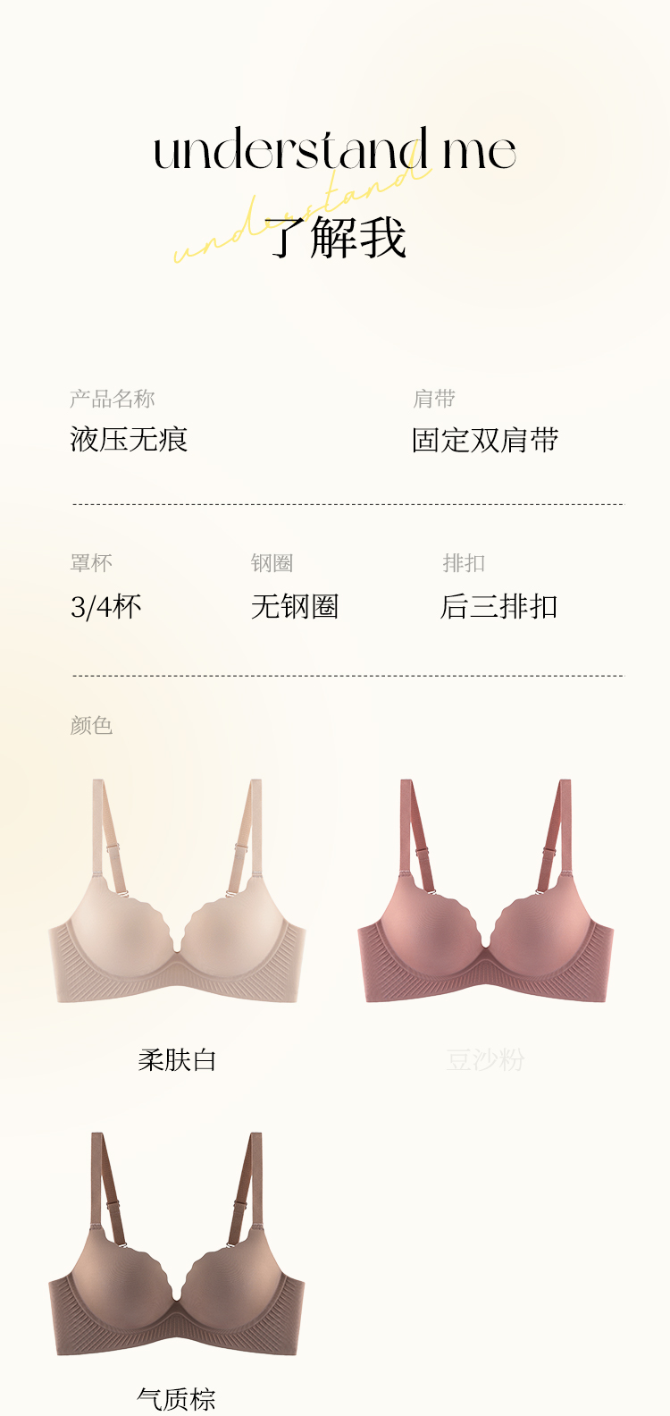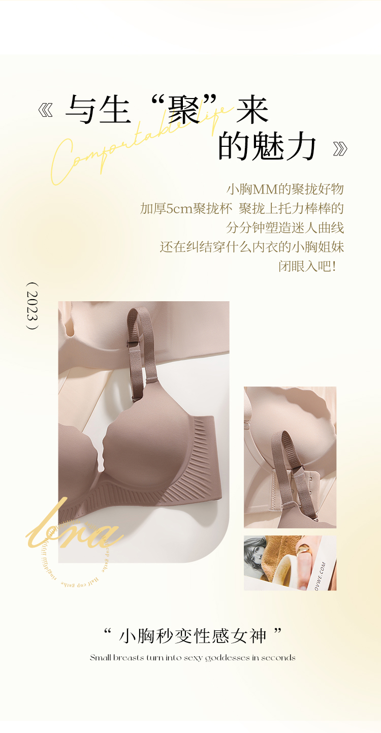 梦芭蒂无痕聚拢小胸显大裸感舒适软支撑内衣加厚内杯聚拢显大文胸液压无痕