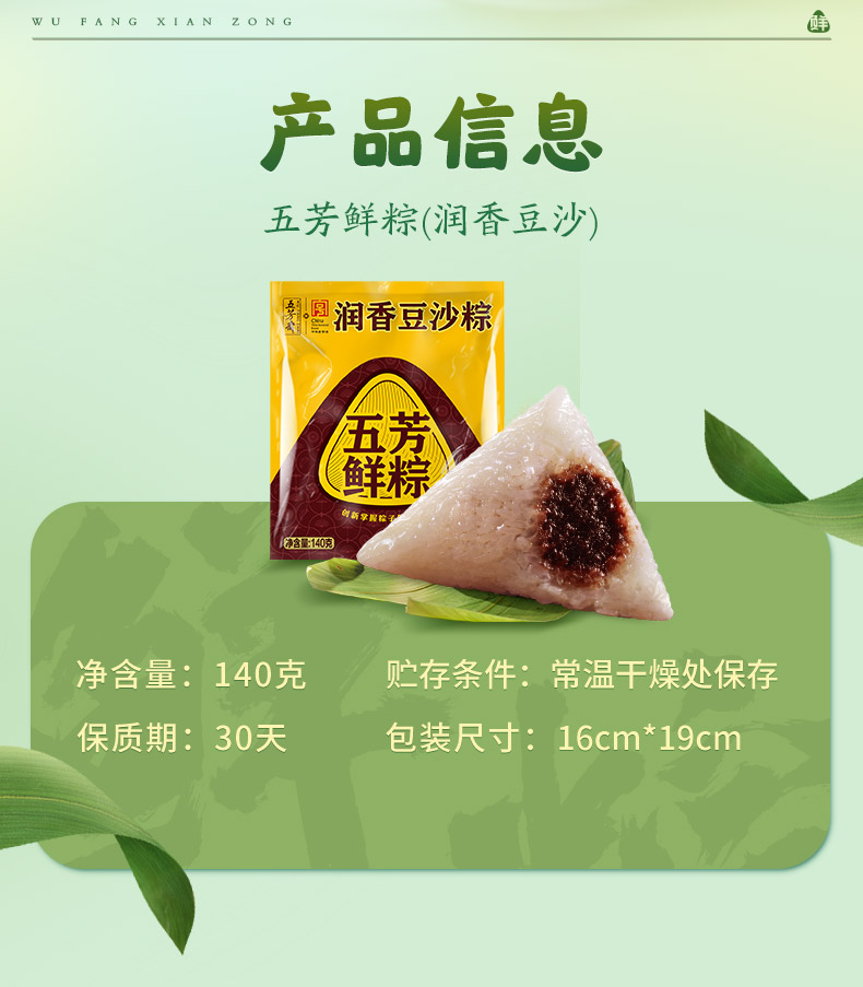 五芳斋 锁鲜润香豆沙鲜粽 豆沙绵密清甜 米香自然融合 软糯拉丝不齁甜