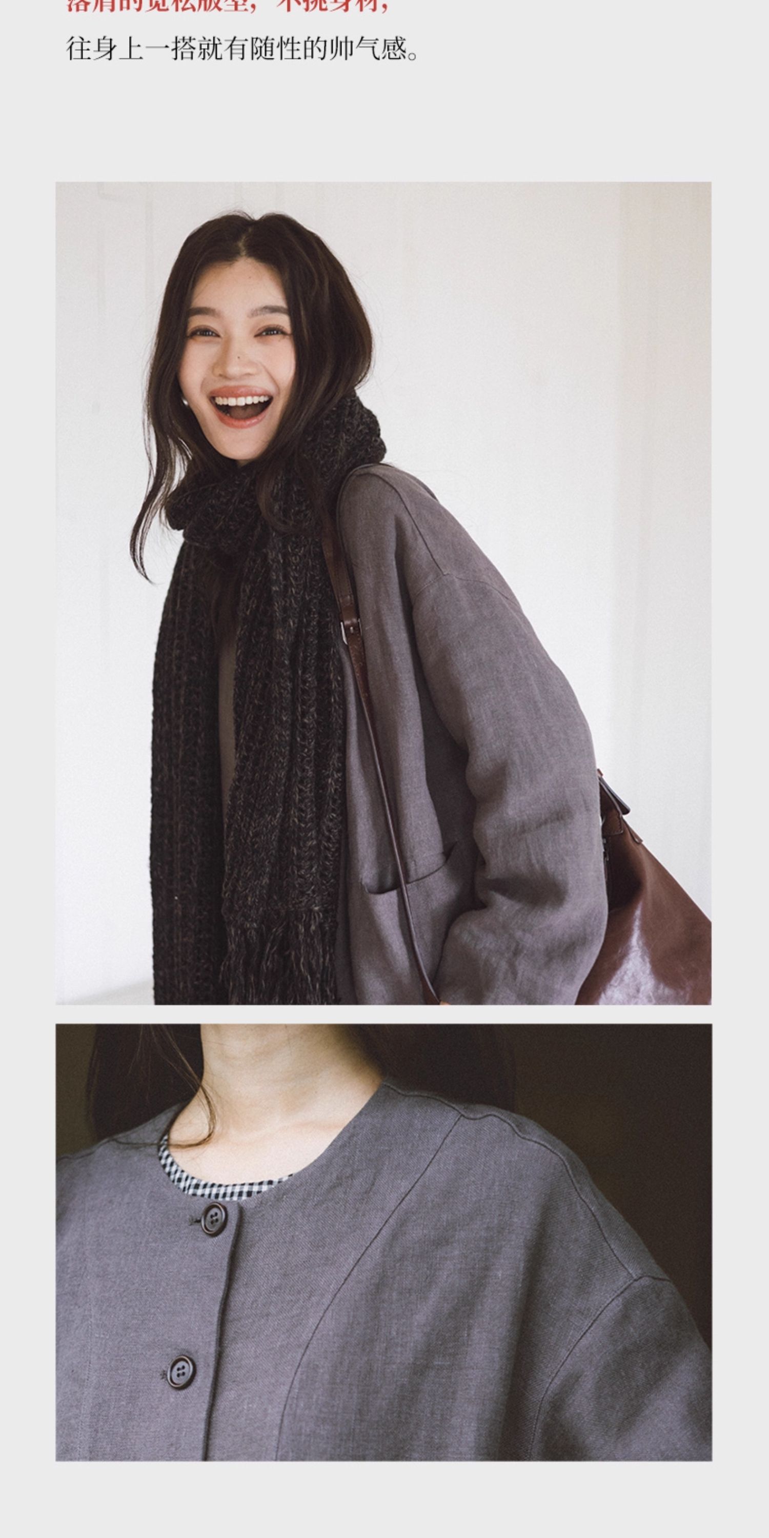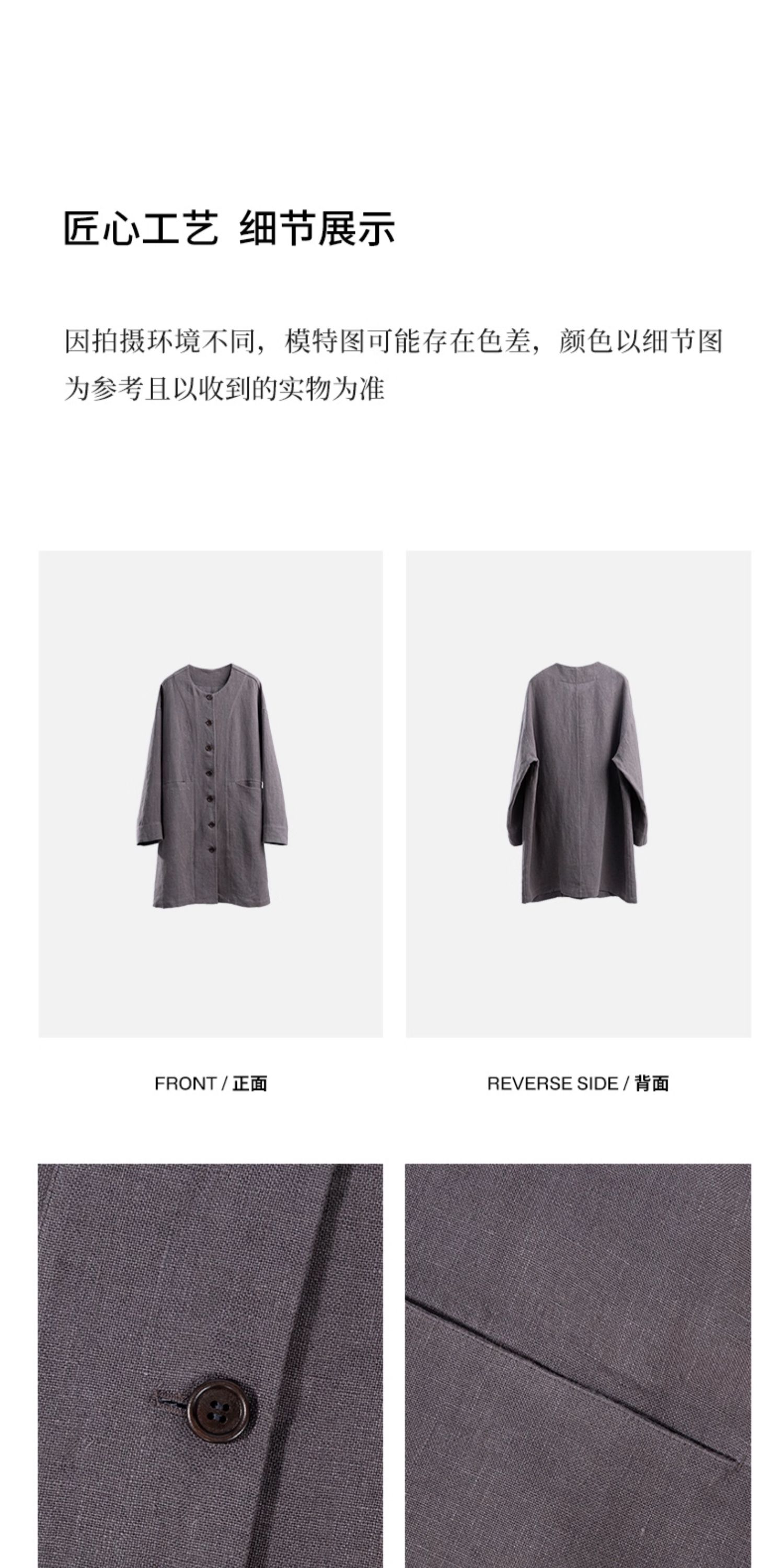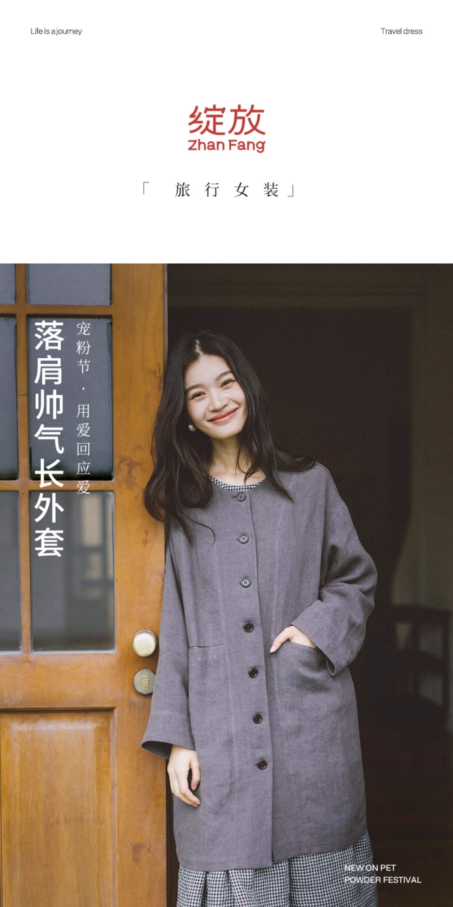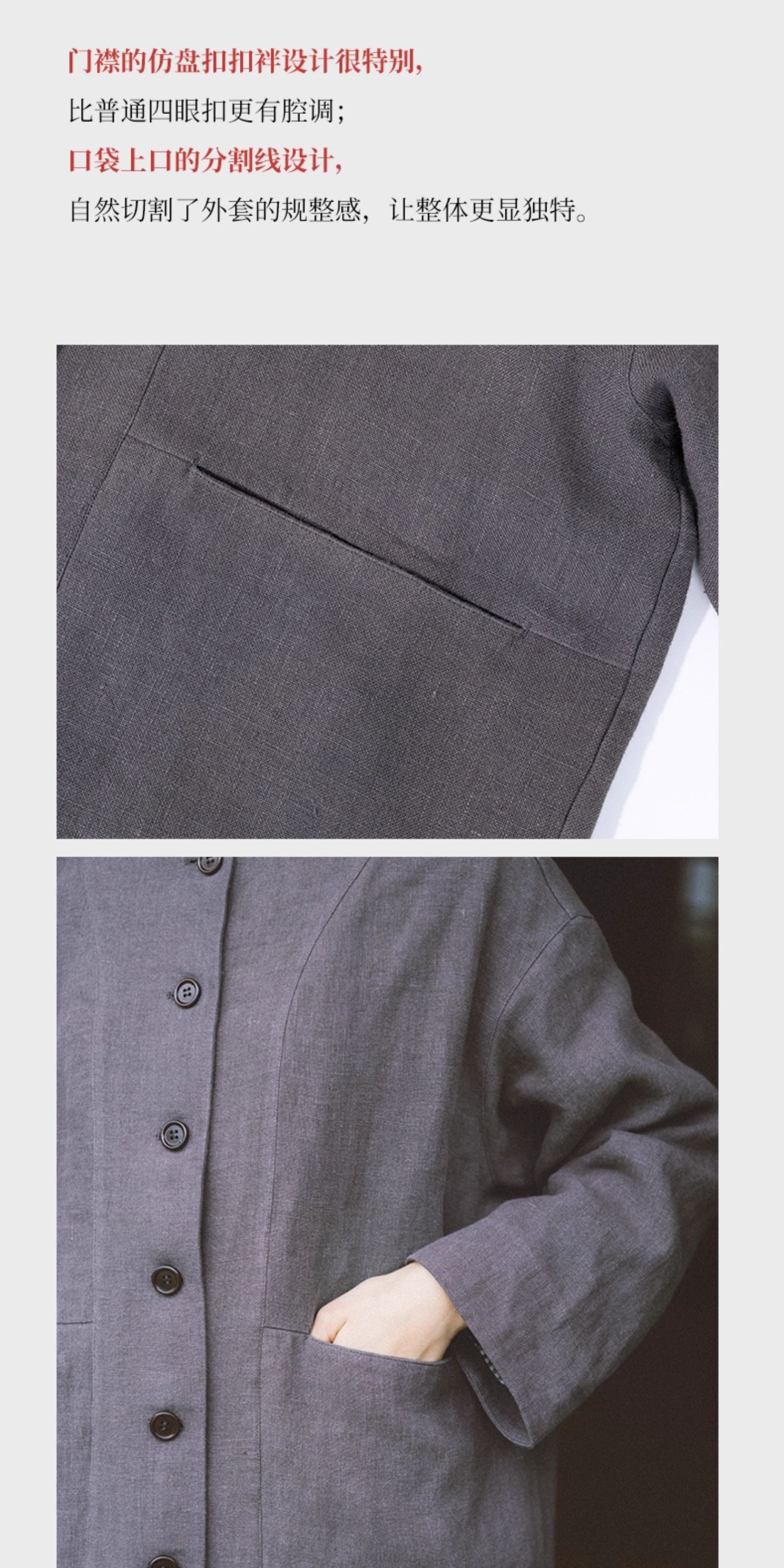 绽放774朵/落肩帅气长外套·纯亚麻帅气设计感文艺落肩风衣中长款
