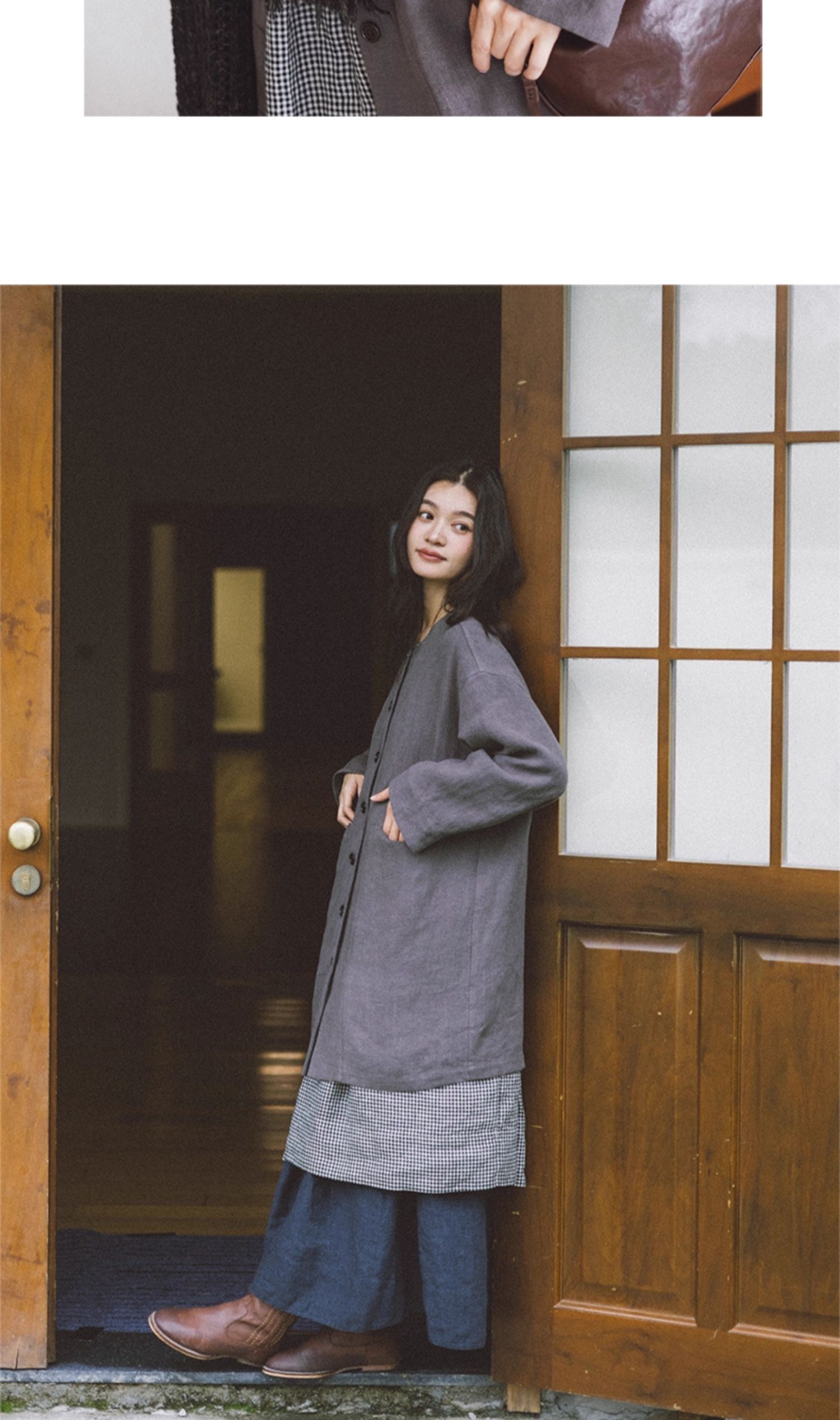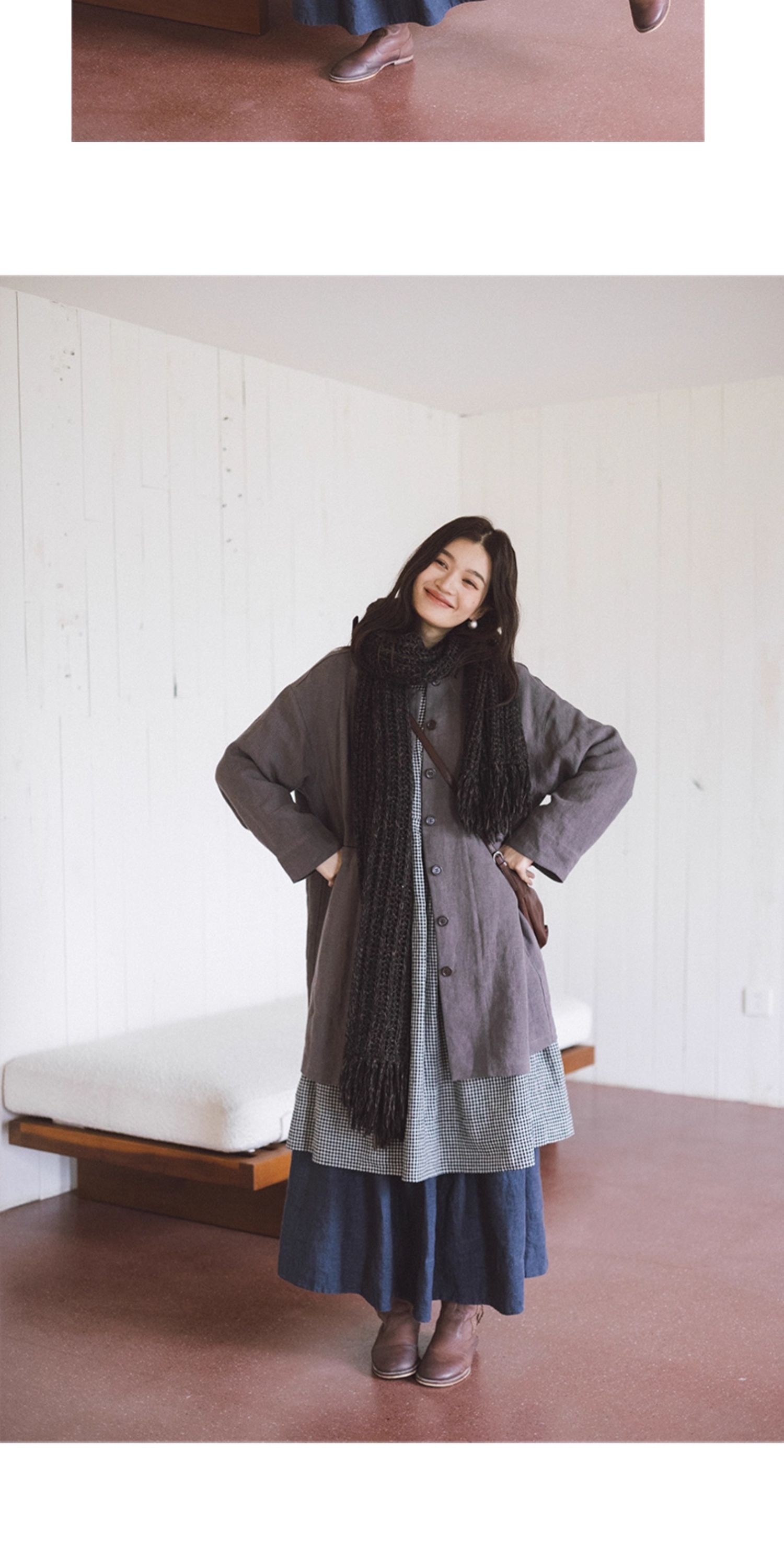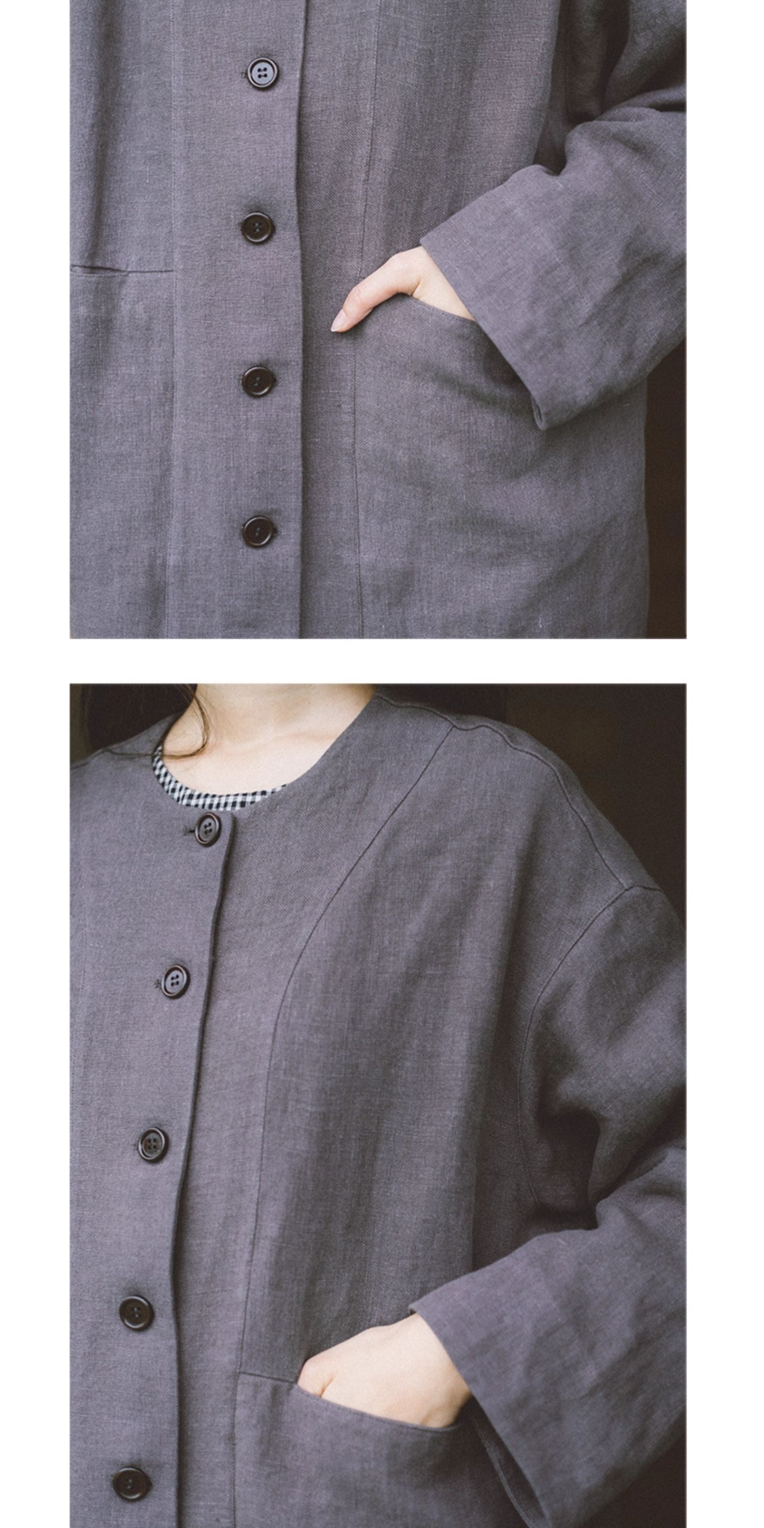 绽放774朵/落肩帅气长外套·纯亚麻帅气设计感文艺落肩风衣中长款