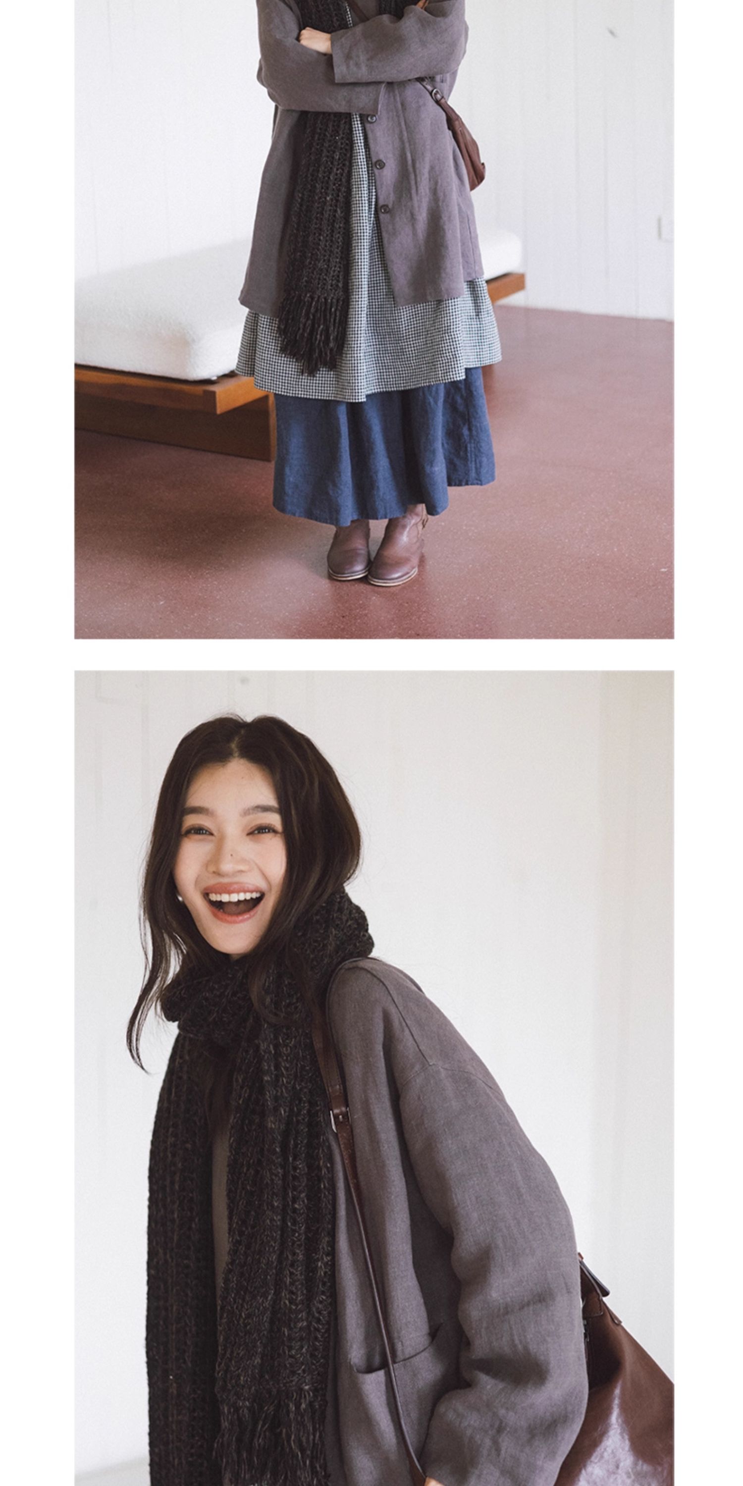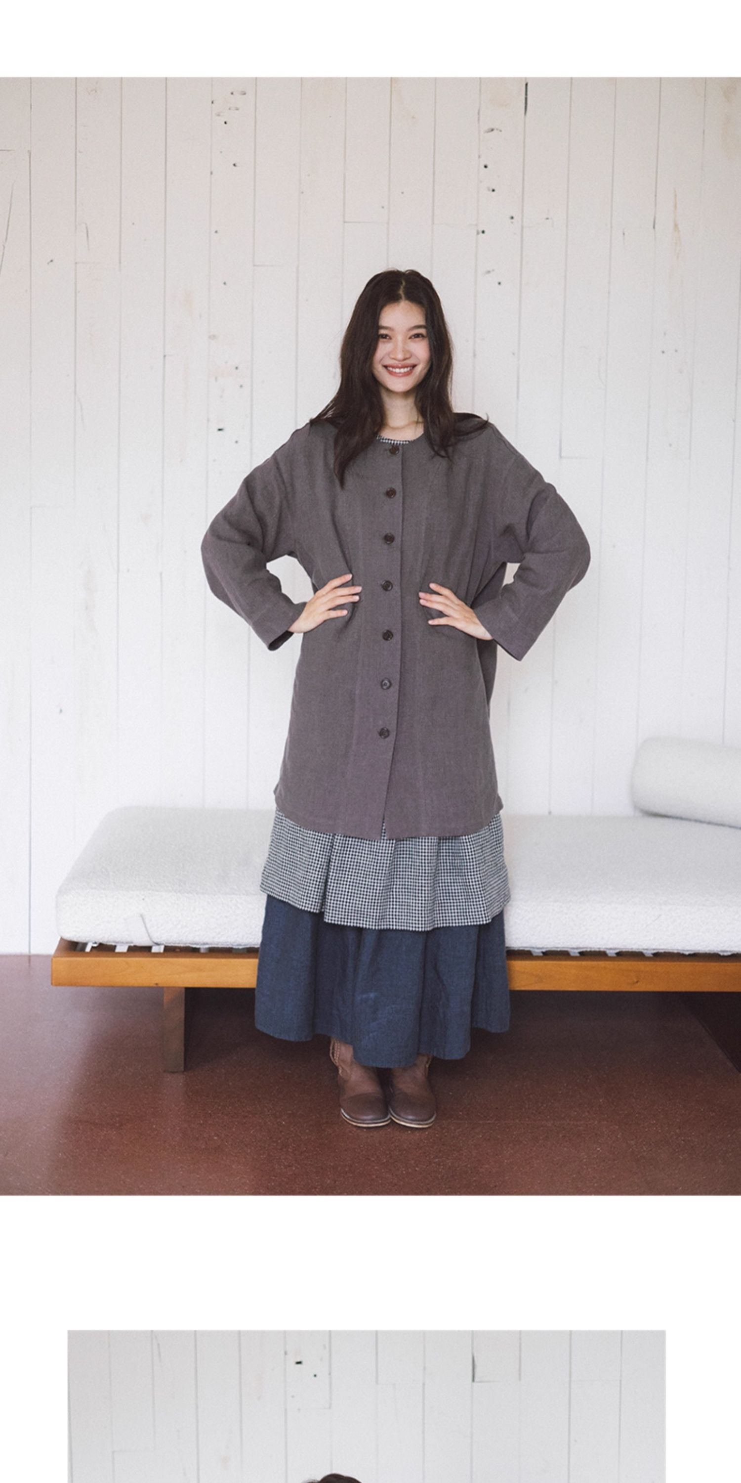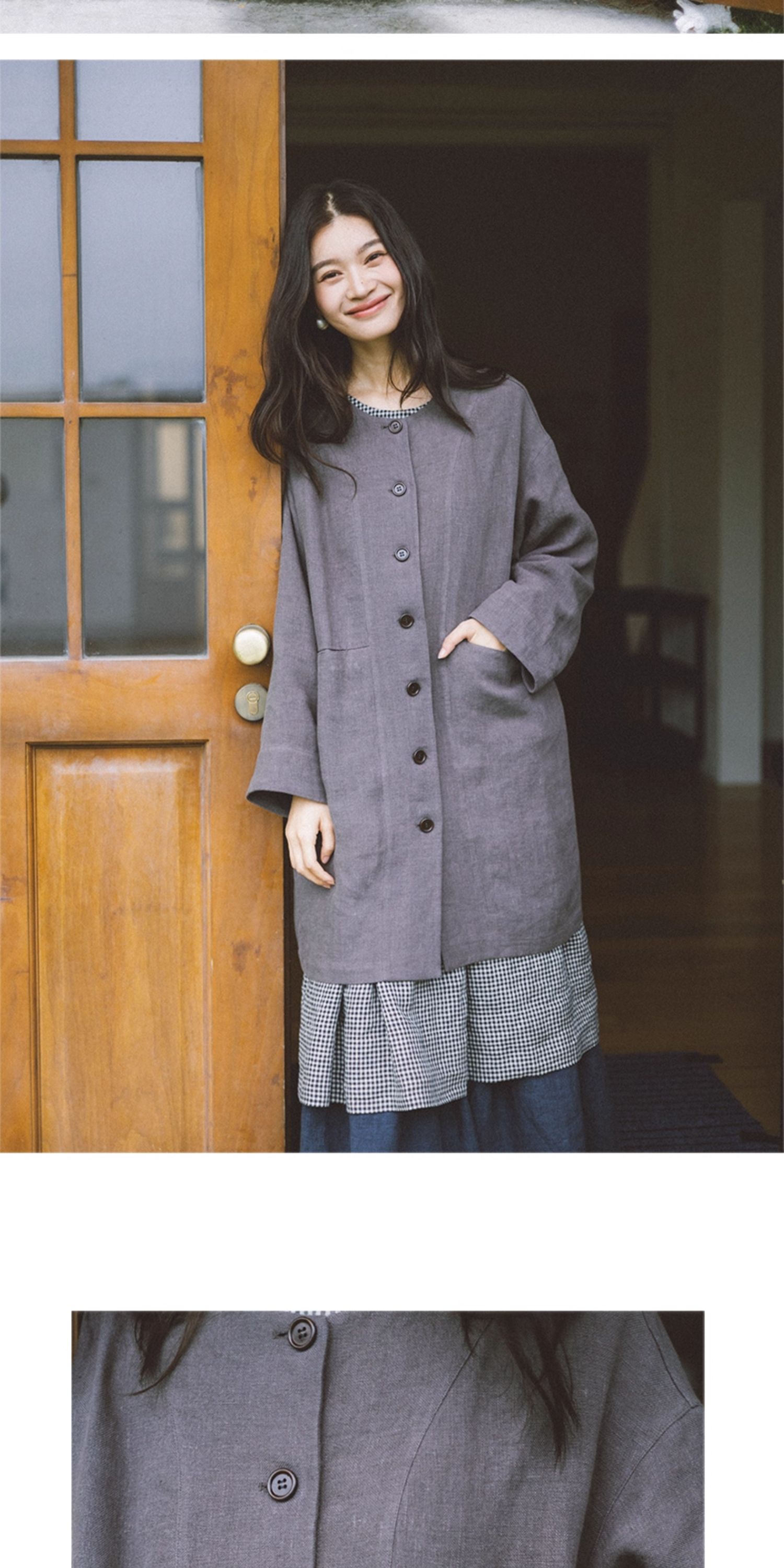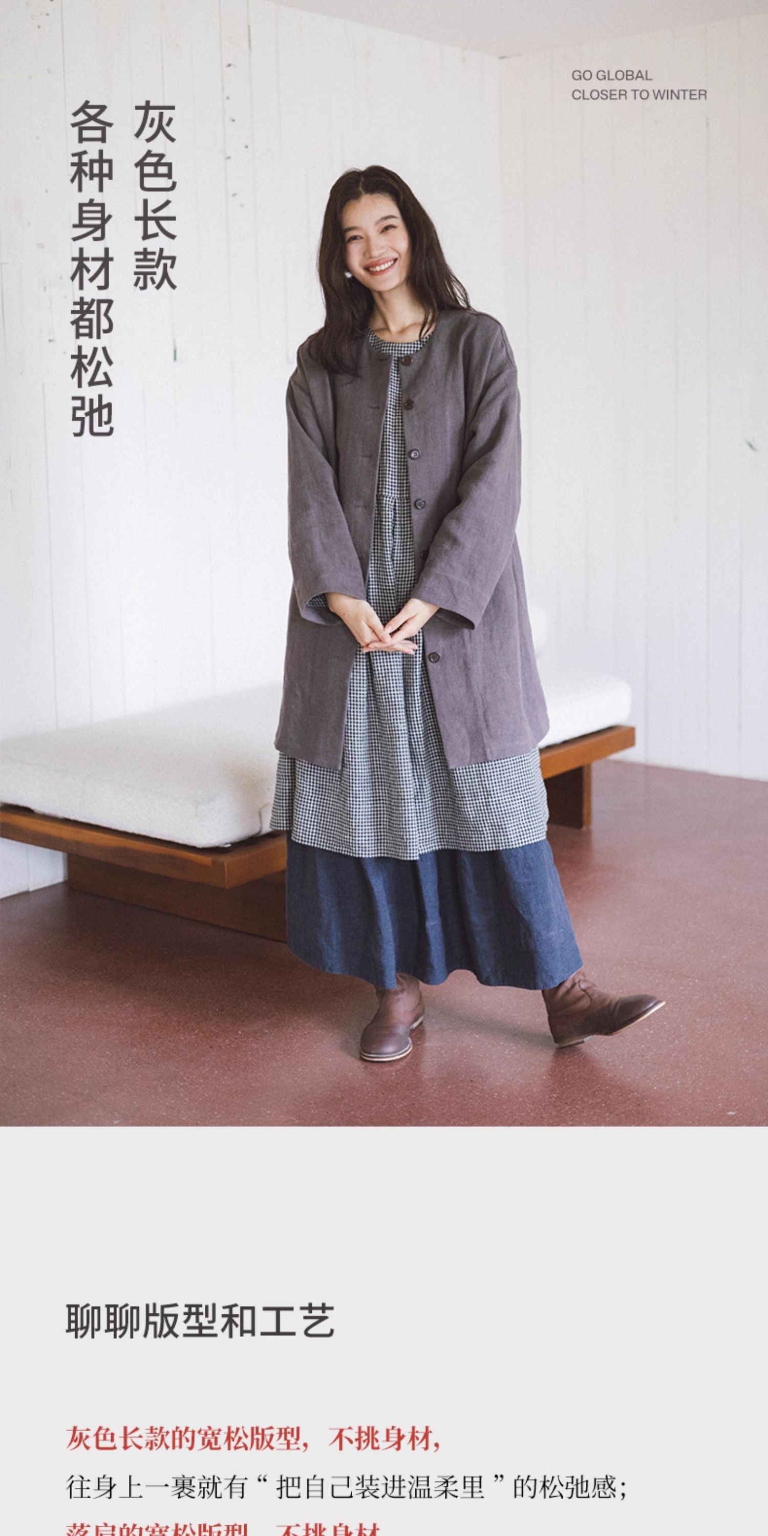 绽放774朵/落肩帅气长外套·纯亚麻帅气设计感文艺落肩风衣中长款