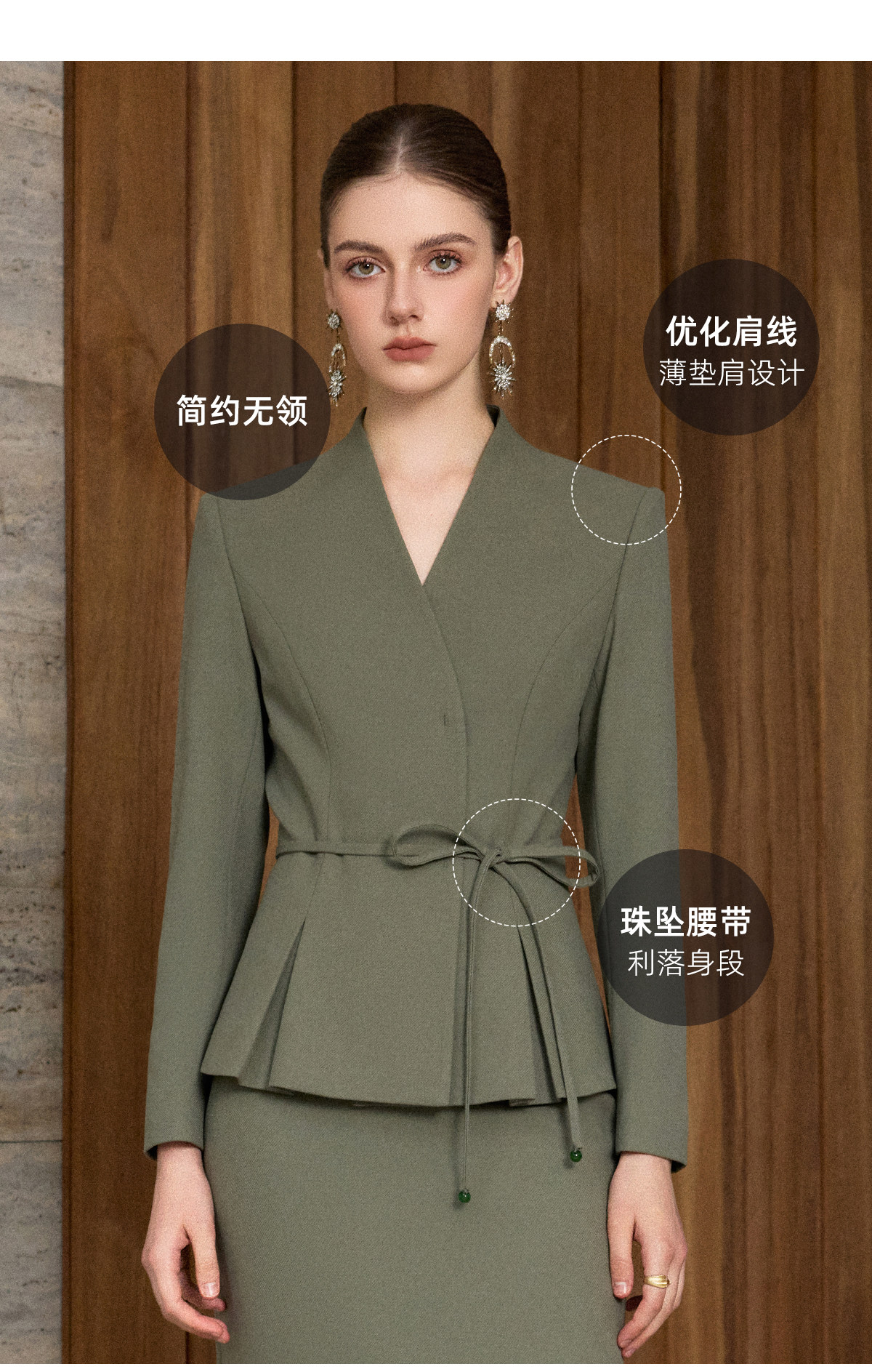 艾尚臣通勤上镜西服套装女春季气质复古松绿色西装正装职业半身裙