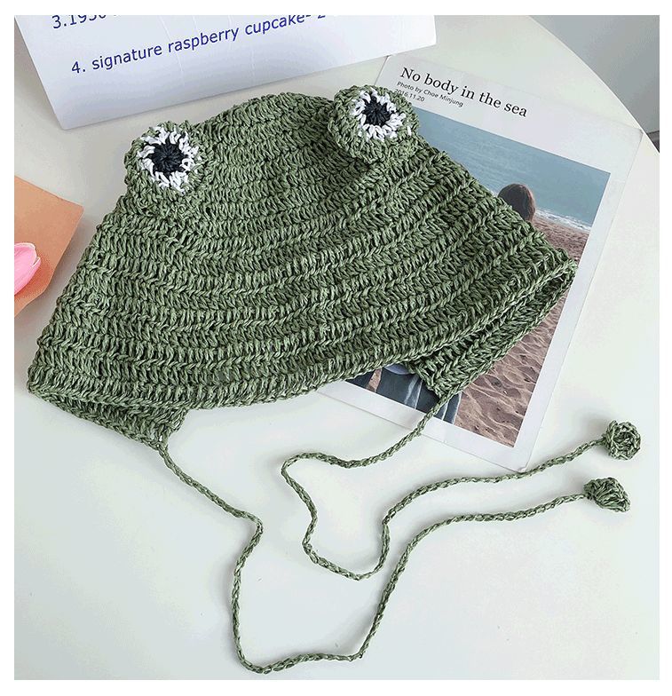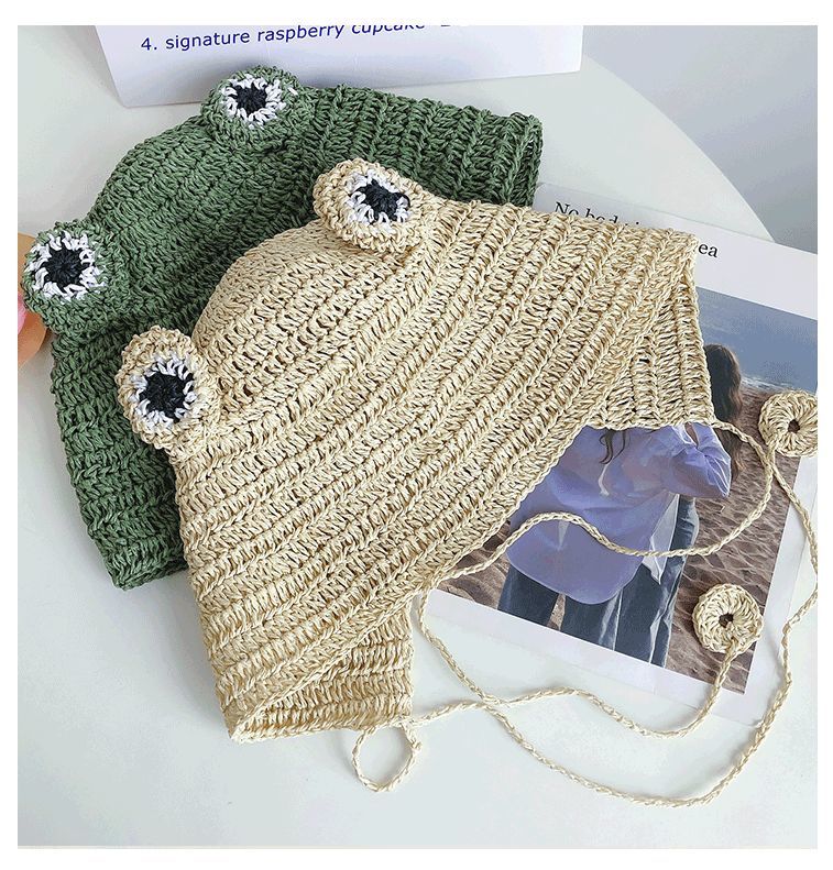 草帽女遮阳夏季海边小青蛙草编帽新款时尚薄款学生度假透气渔夫帽