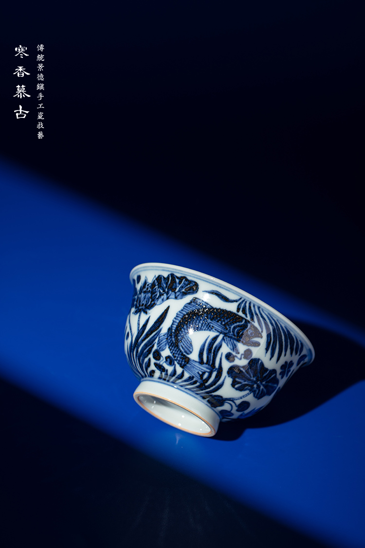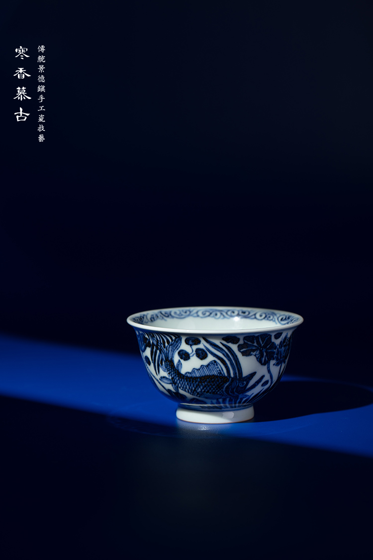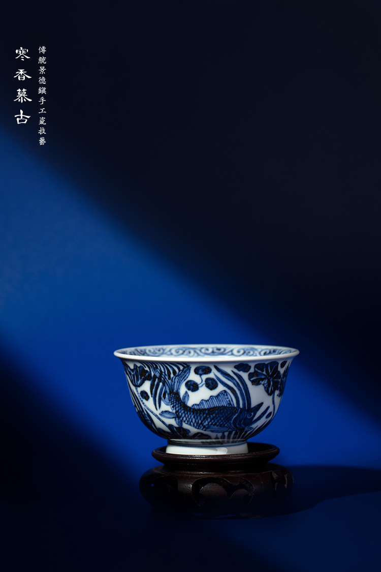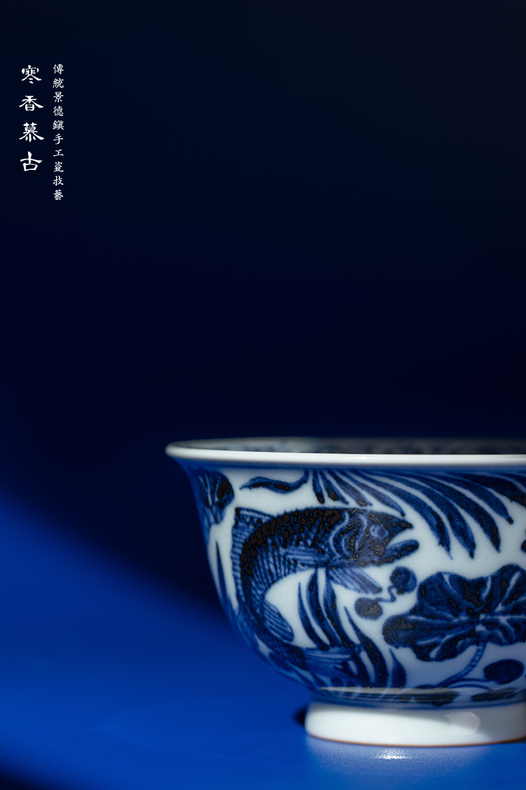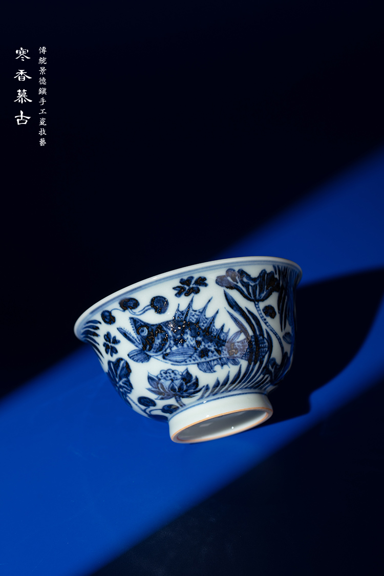 寒香慕古元青花鱼藻纹敞口杯