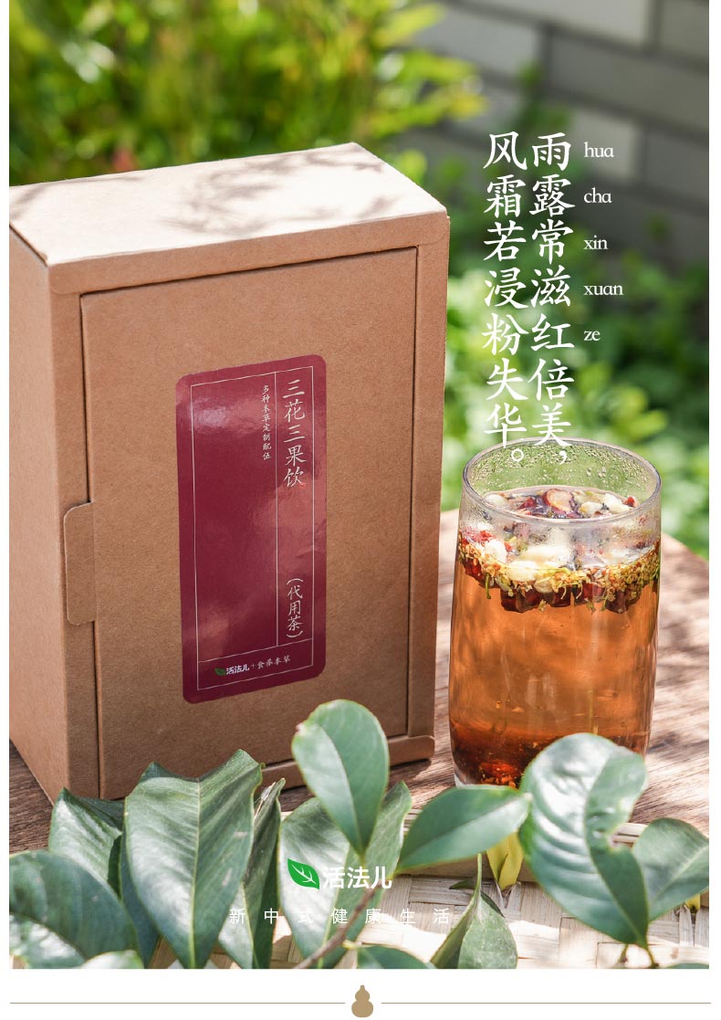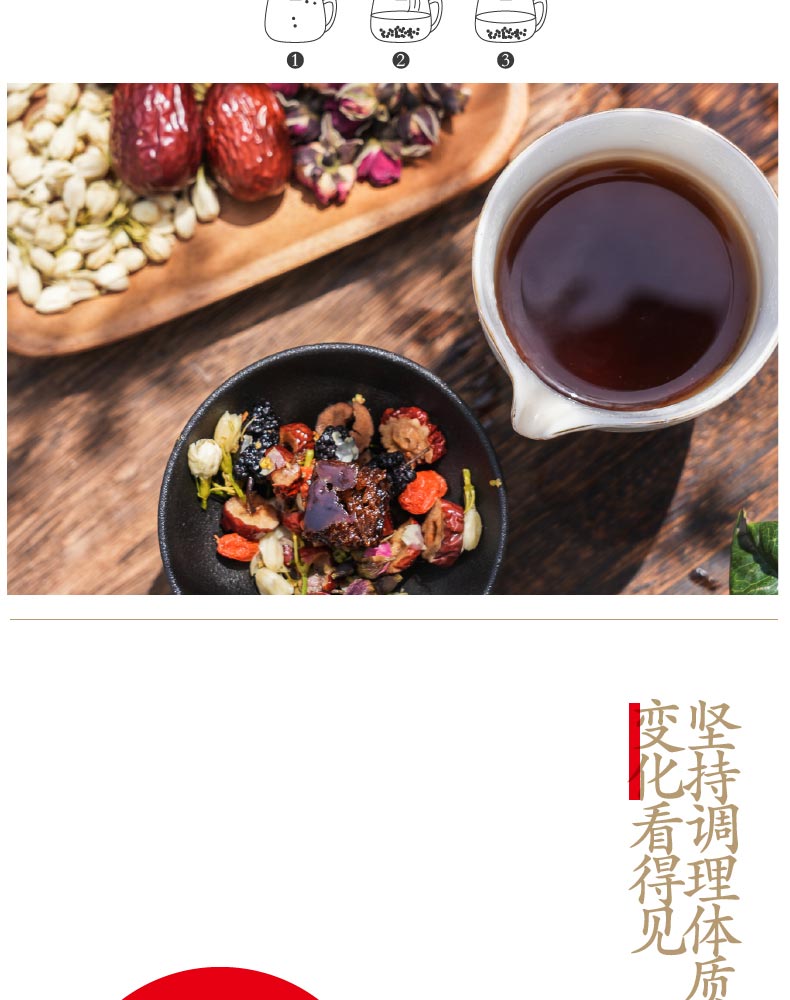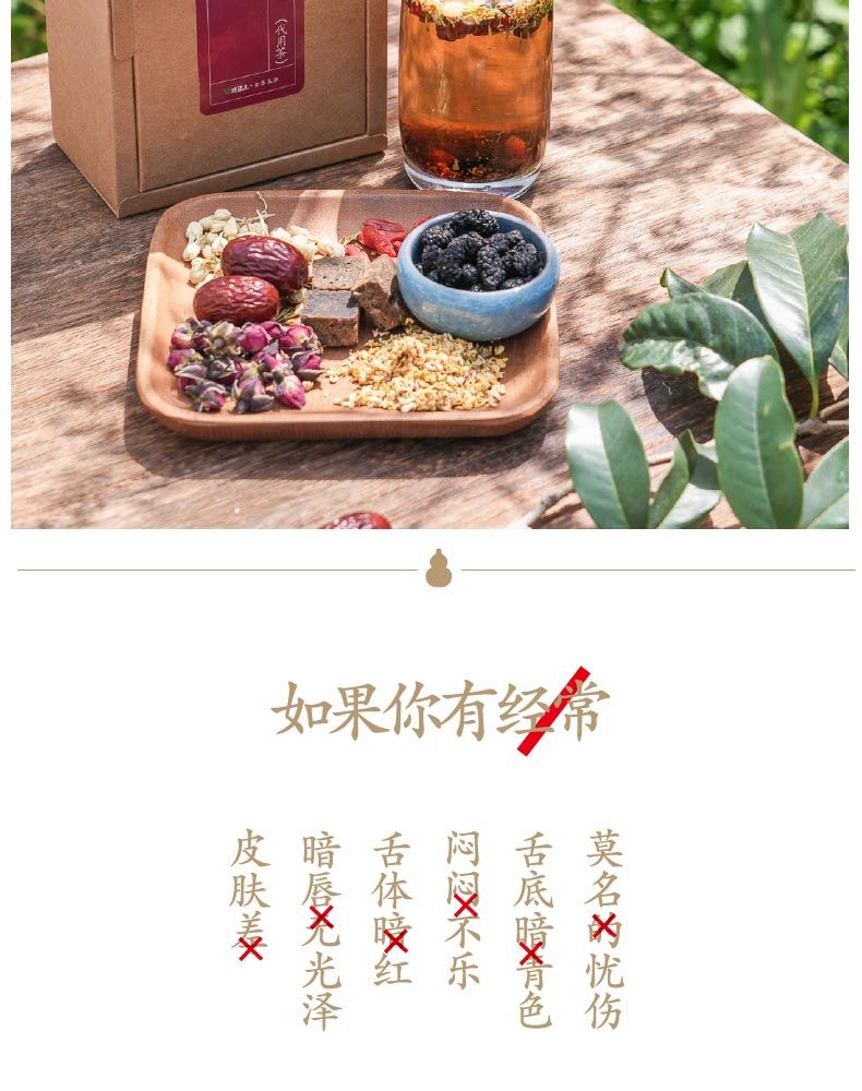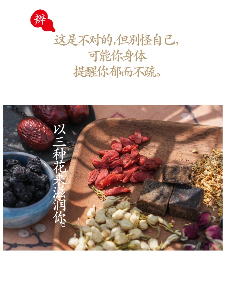 三花三果饮 |重瓣红玫瑰桂花茉莉花 桑椹红枣枸杞黑糖。180g一大盒10袋独立包装。