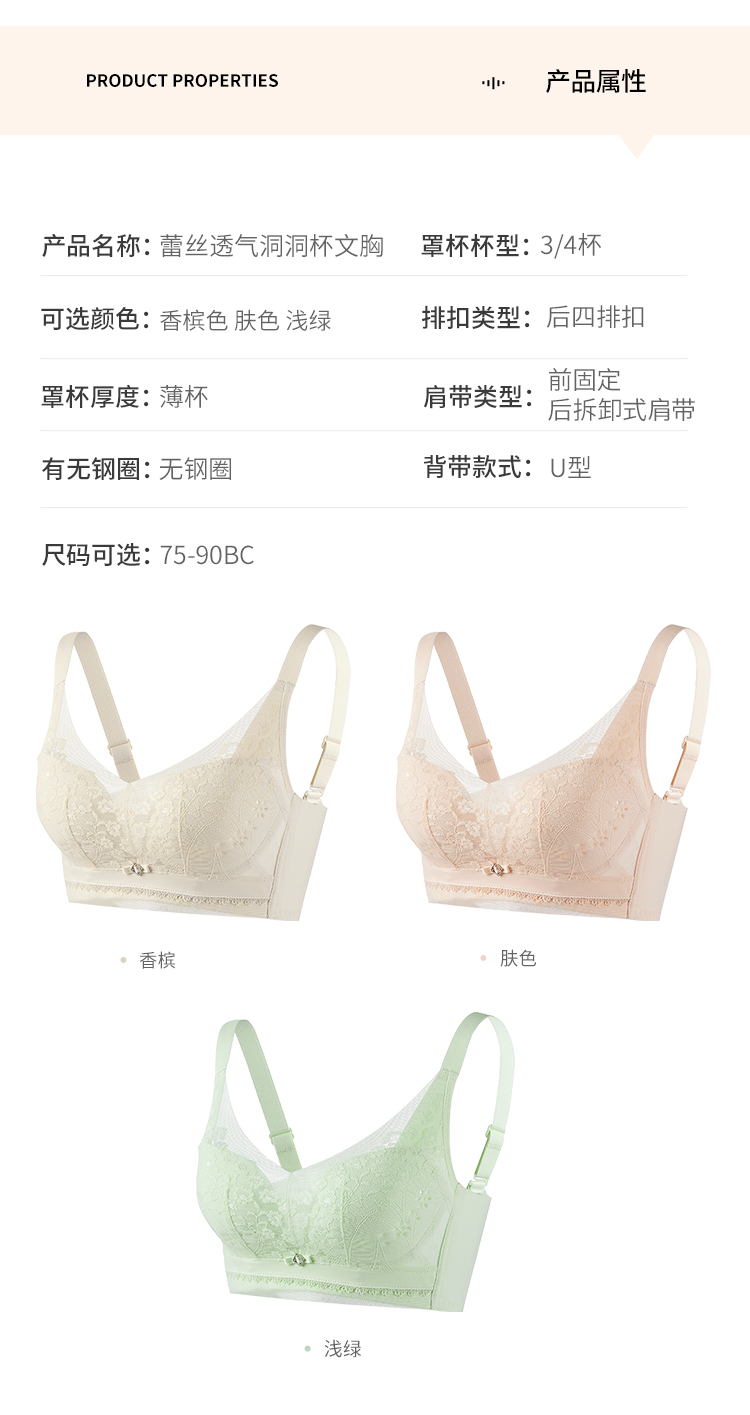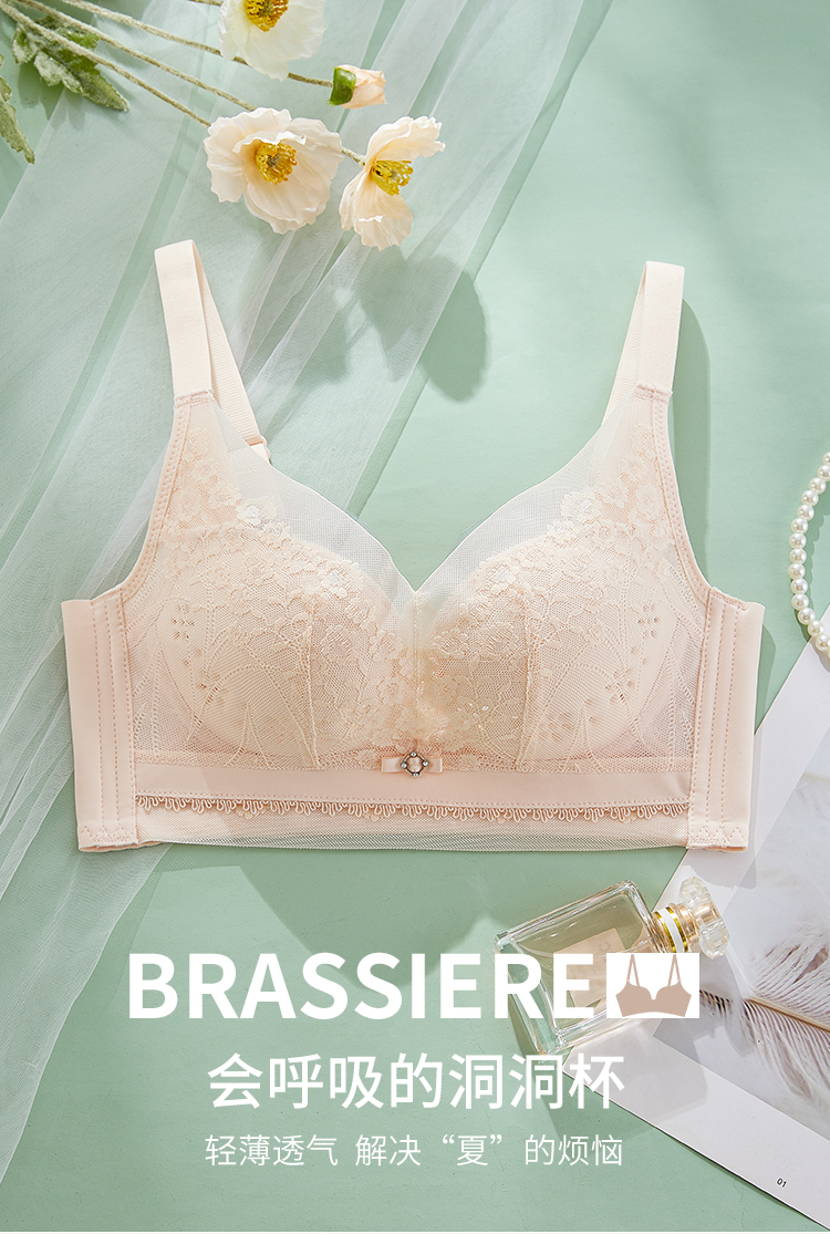 雅黛丽内衣女夏季薄款透气洞洞杯文胸上托聚拢收副乳防下垂胸罩