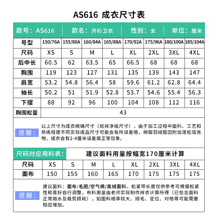 裁缝学苑AS616美式连帽卫衣纸样外套宽松慵懒拉链开衫打版裁剪图纸