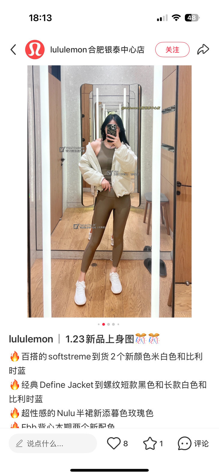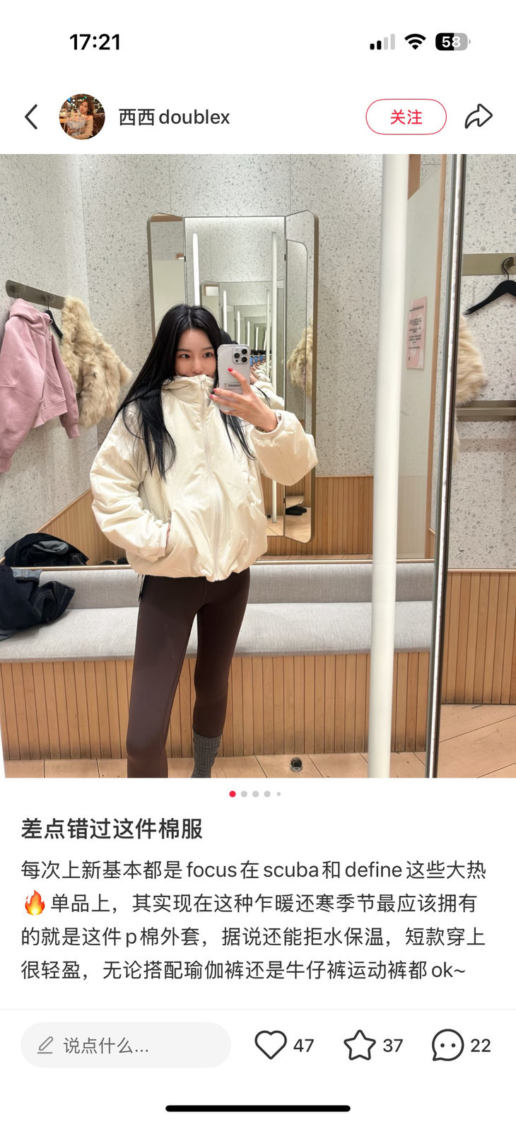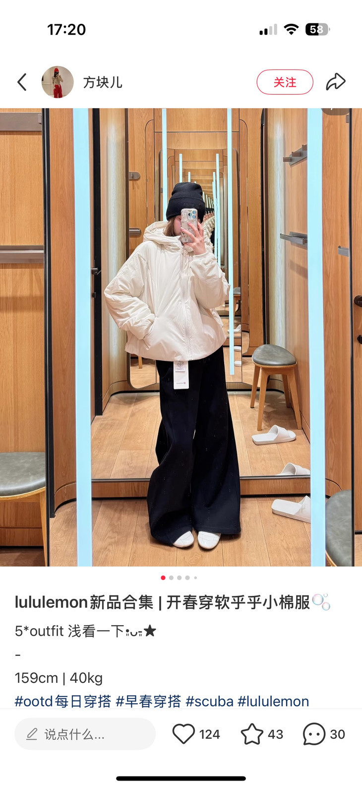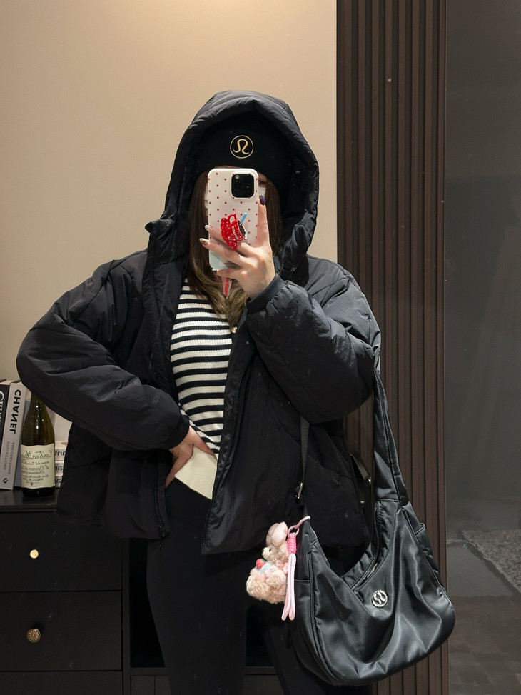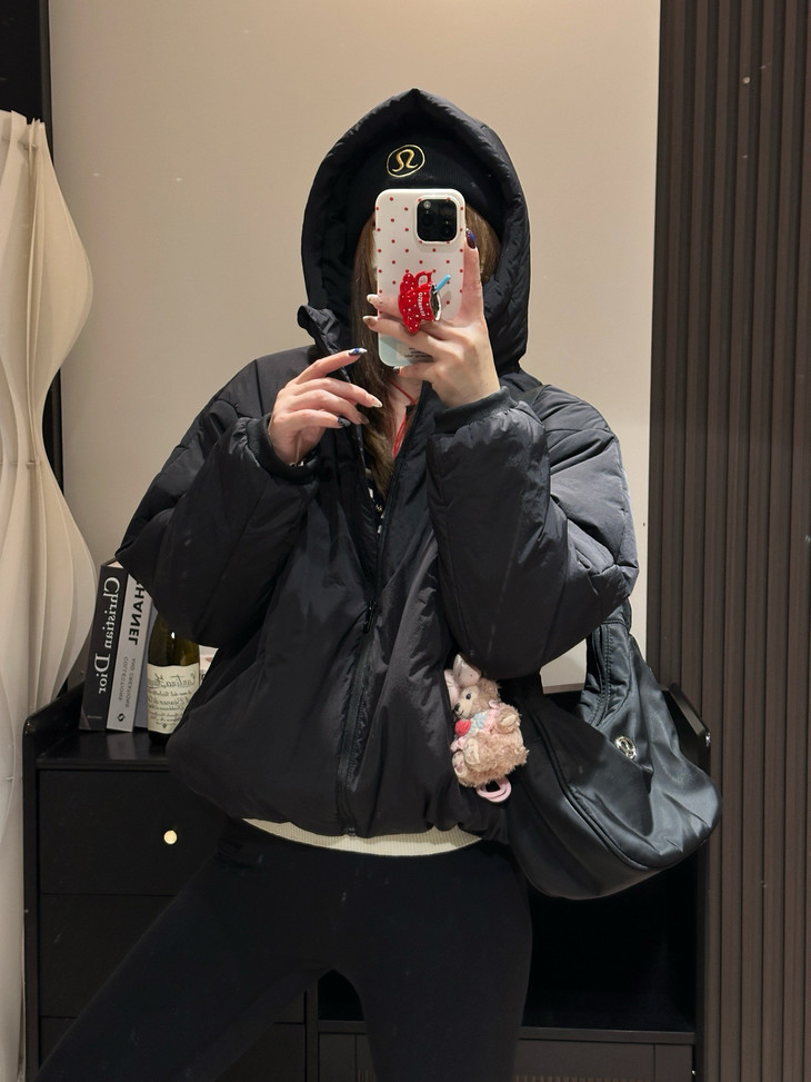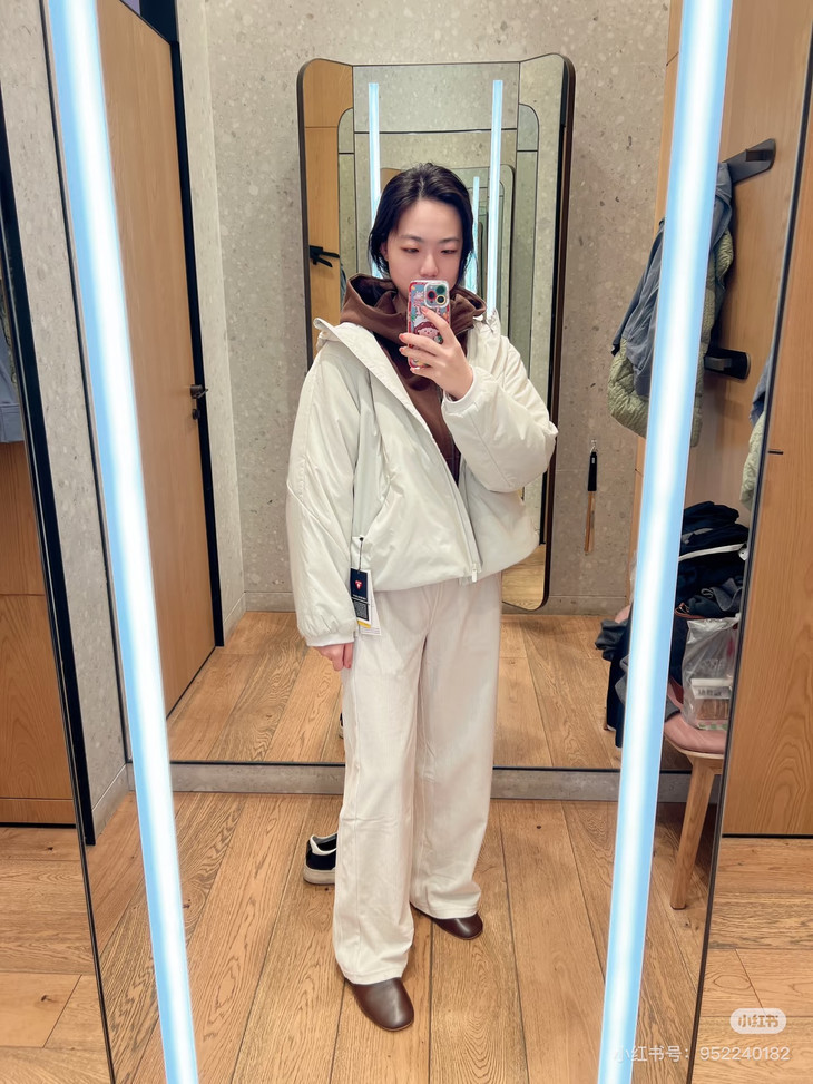 个人觉得它比经典的四格六格都要好穿!上身一点不臃肿,很轻盈,无论搭配瑜伽裤还是牛仔裤运动裤都ok〰️