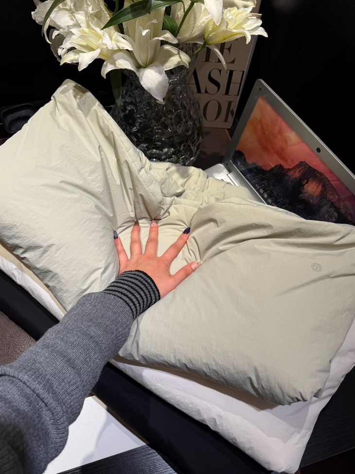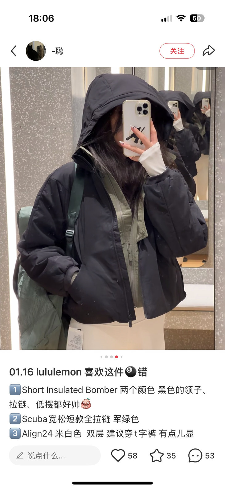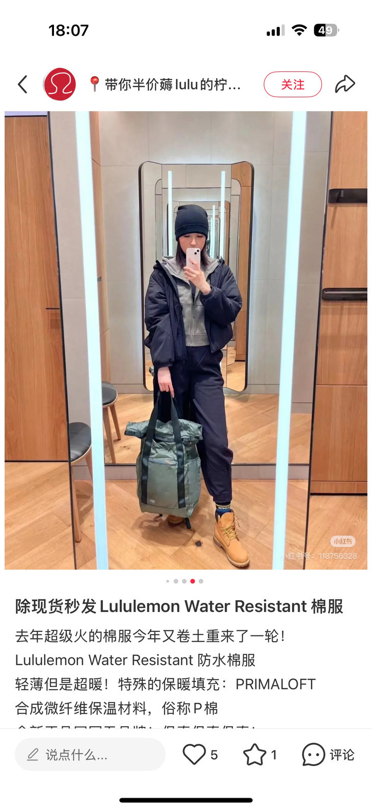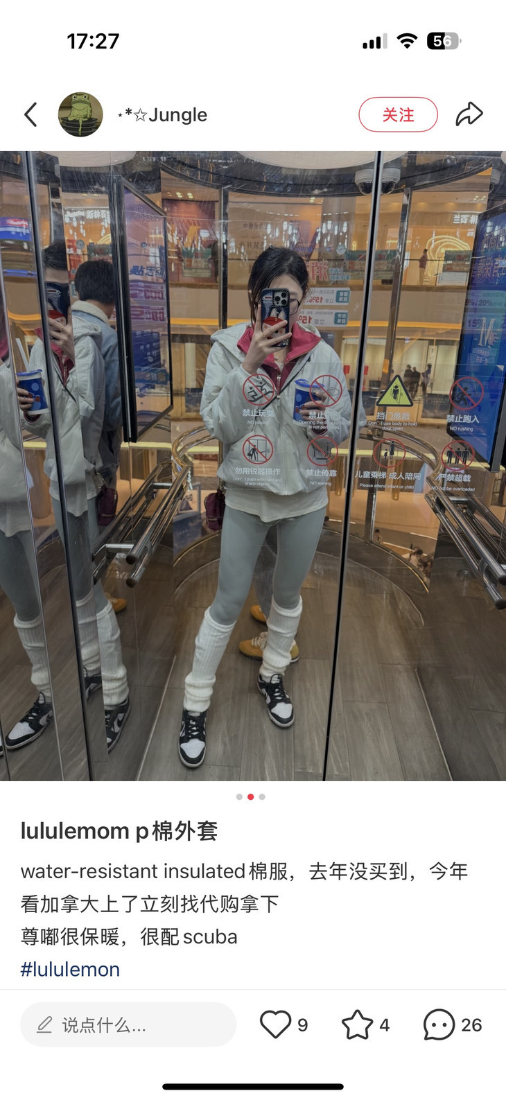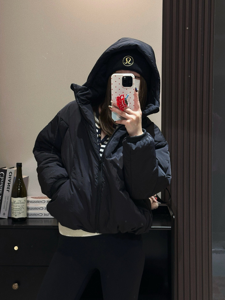 个人觉得它比经典的四格六格都要好穿!上身一点不臃肿,很轻盈,无论搭配瑜伽裤还是牛仔裤运动裤都ok〰️