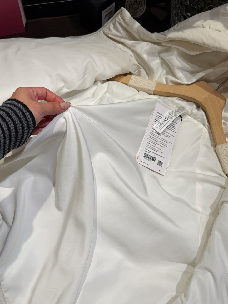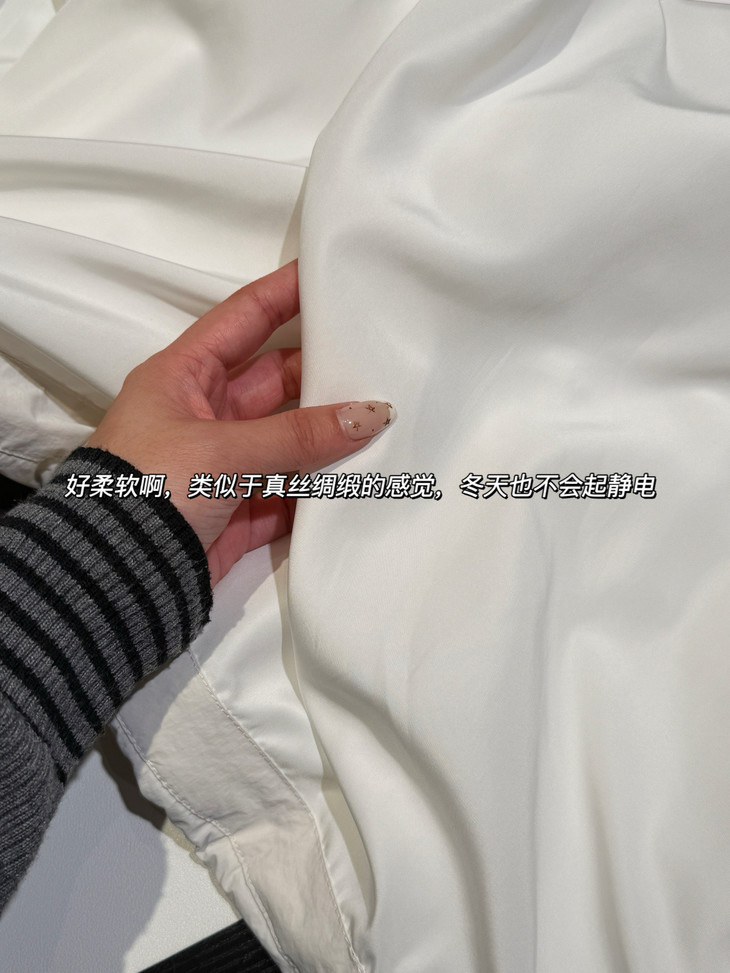 柔软轻薄,有种动态的金属光泽又带着手工褶皱。上身几乎没有存在感 太舒服了😌