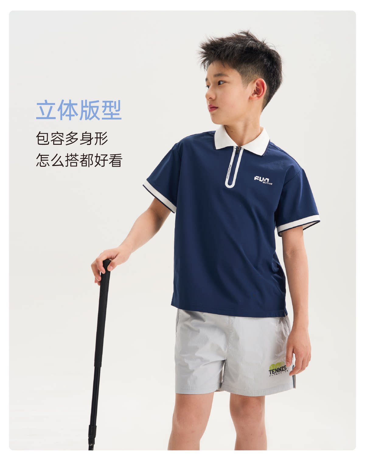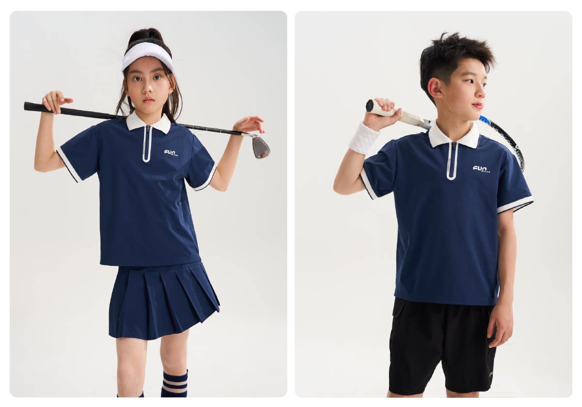 funactive男女童polo衫夏季翻领运动网球羽毛球服儿童短袖T恤上衣F1UT30359