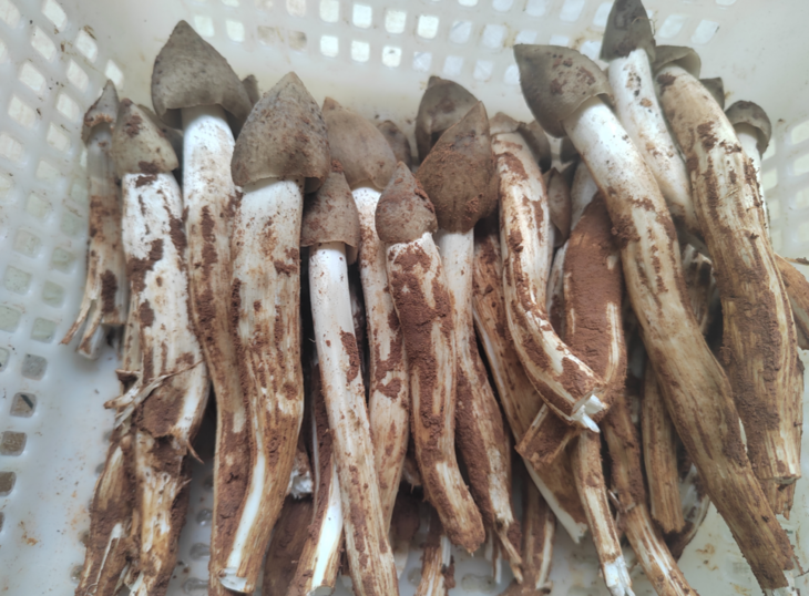 刚长出来时的鸡枞菌,约10厘米高,形状像一把胖嘟嘟的没打开的小雨伞,这时候的鸡枞菌口感是最清甜的。
