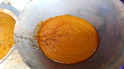 看着青悠悠的甘蔗汁不断的翻滚冒泡,到最后变成沸腾香浓,橙黄绵软的糖浆,收获感异常的满足。起锅的时刻很关键,起早了,糖不成行,起晚了,糖会糊锅。掌勺人守着大锅,一声令下,不耽误一分钟,将糖汁摇出来,手工迅速搅拌打砂,将糖浆里的热量迅速散发,就可以装模具了。
