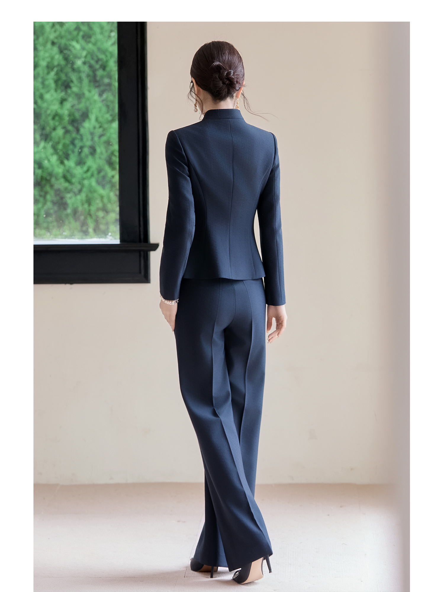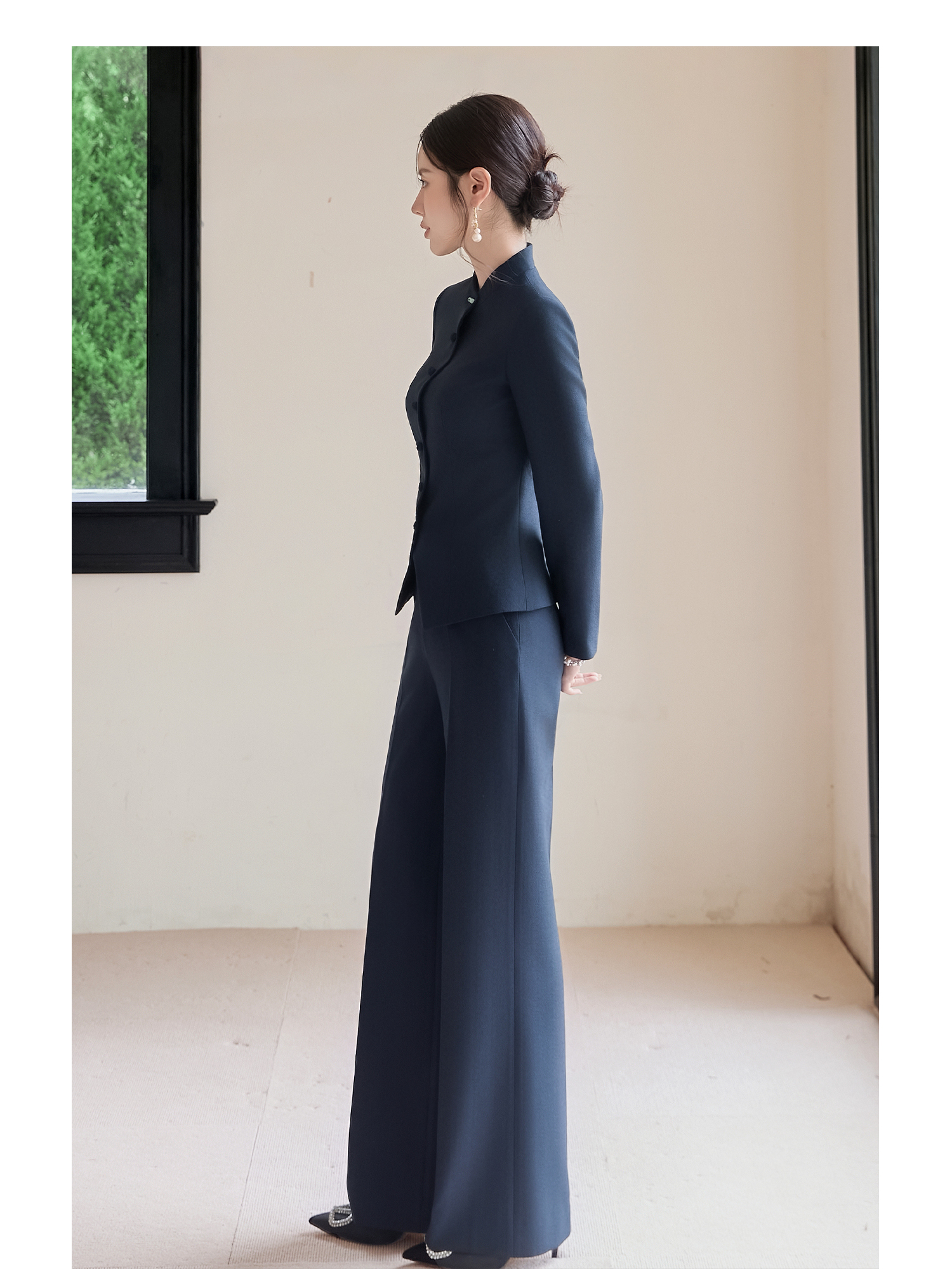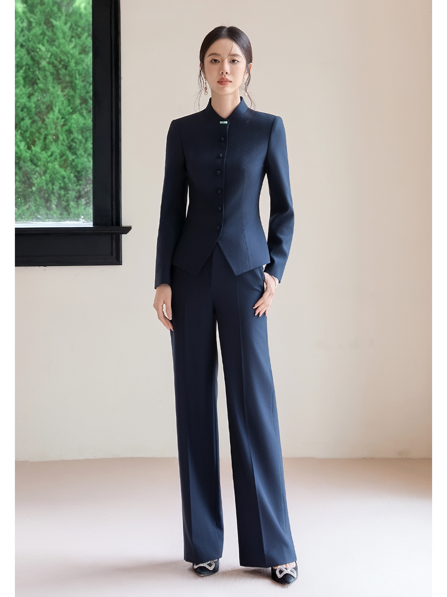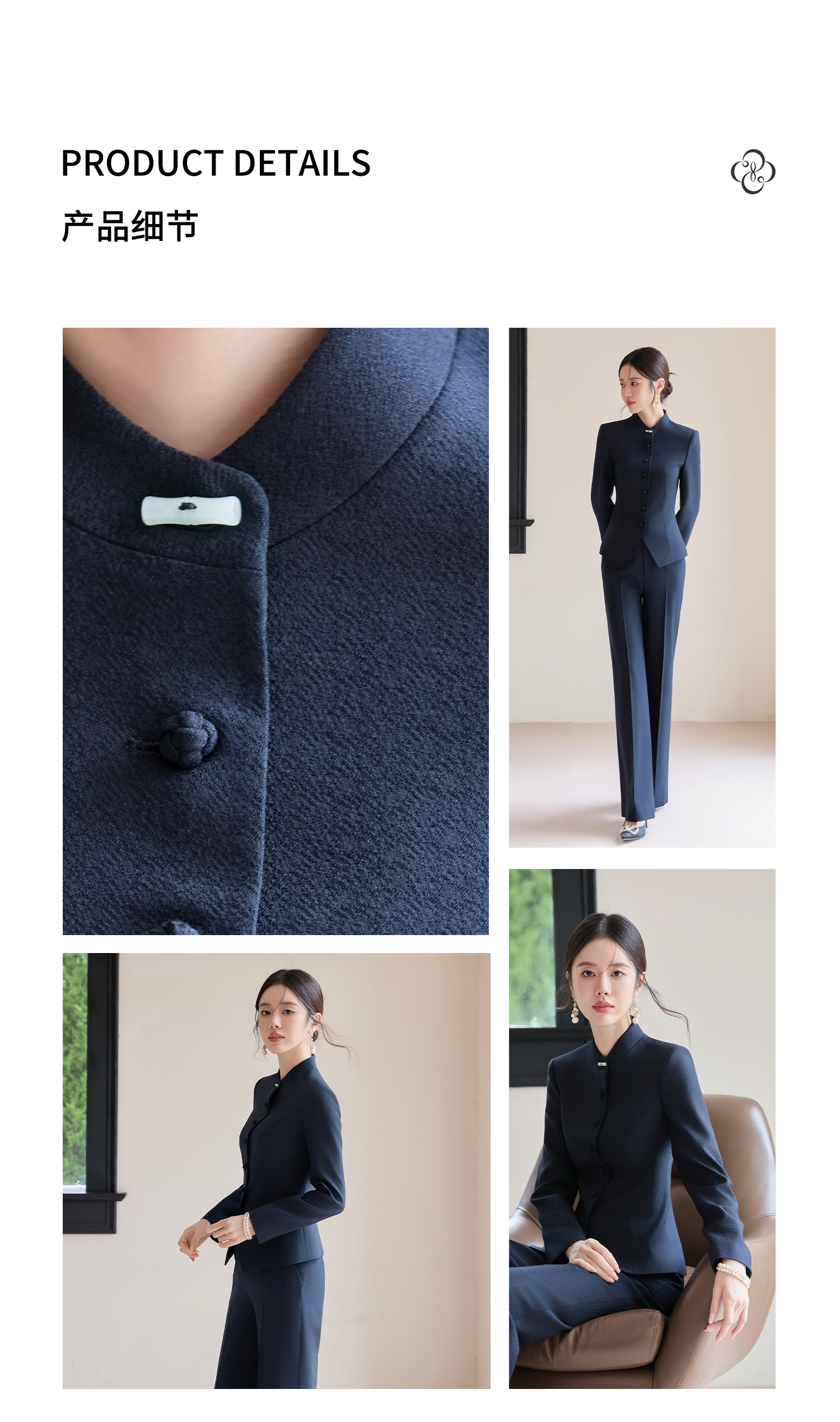 FUYAO扶摇 新中式盘扣西装套装女2025新款藏青色圆领西服中山装秋