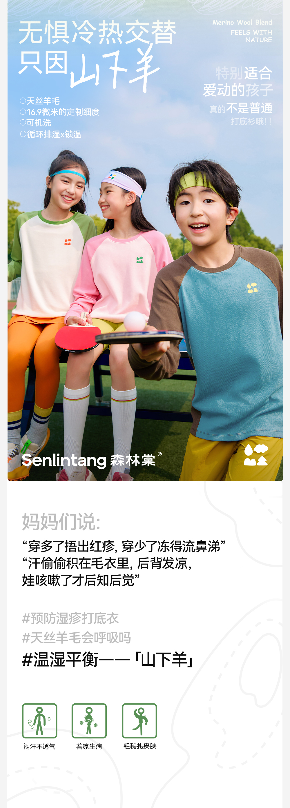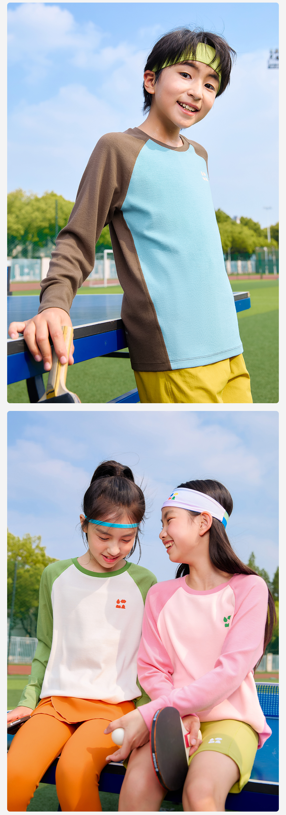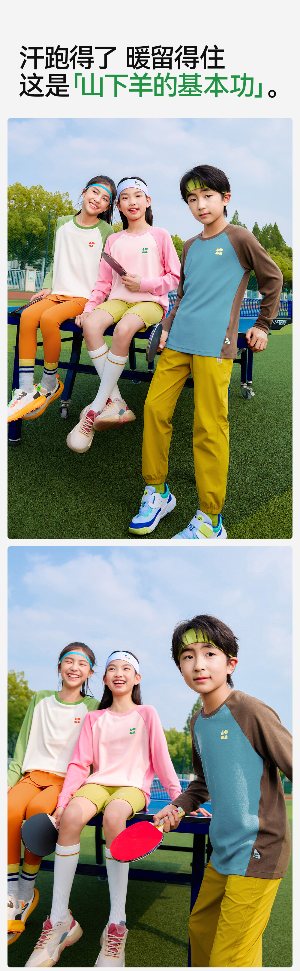 【天丝羊毛插肩T恤】森林棠25秋新款 儿童运动排汗拼色保暖打底上衣60253182