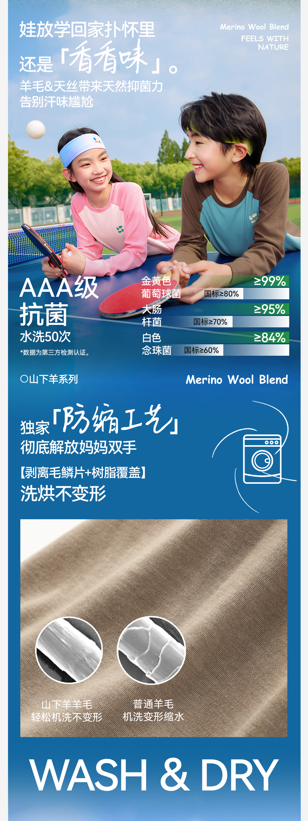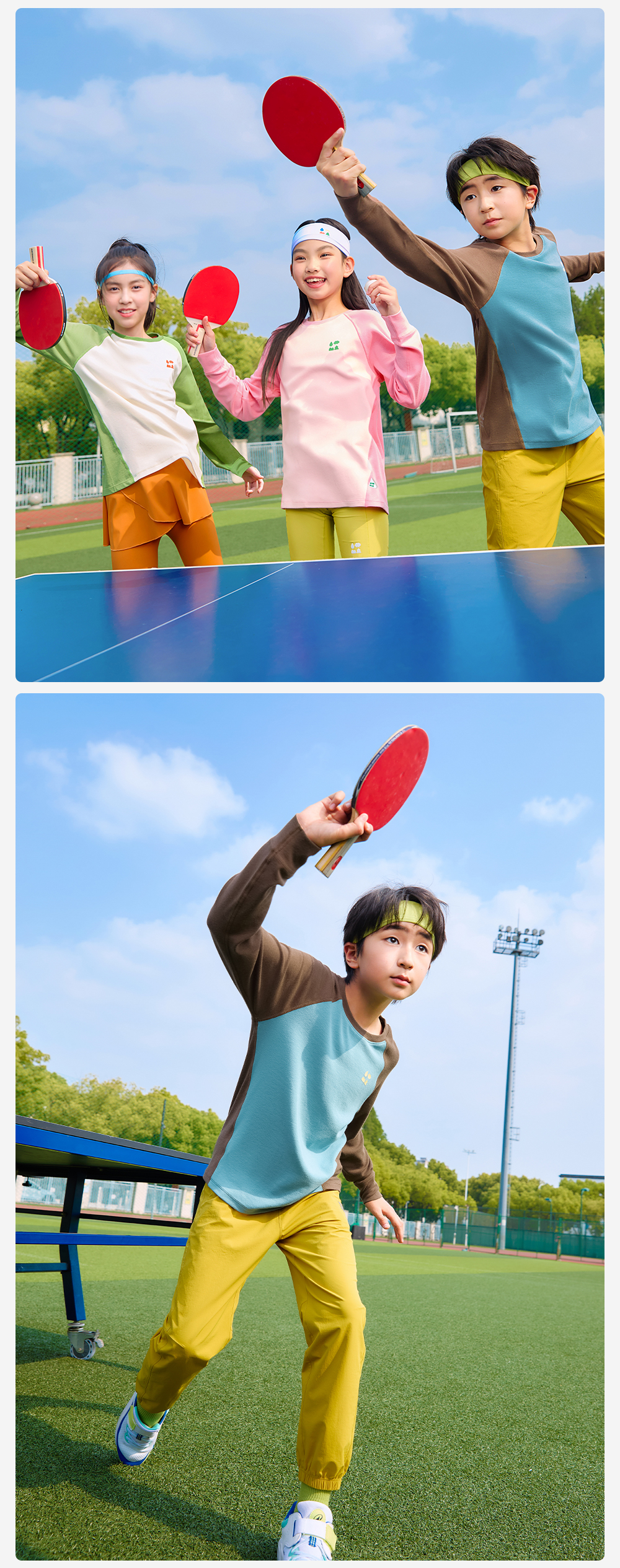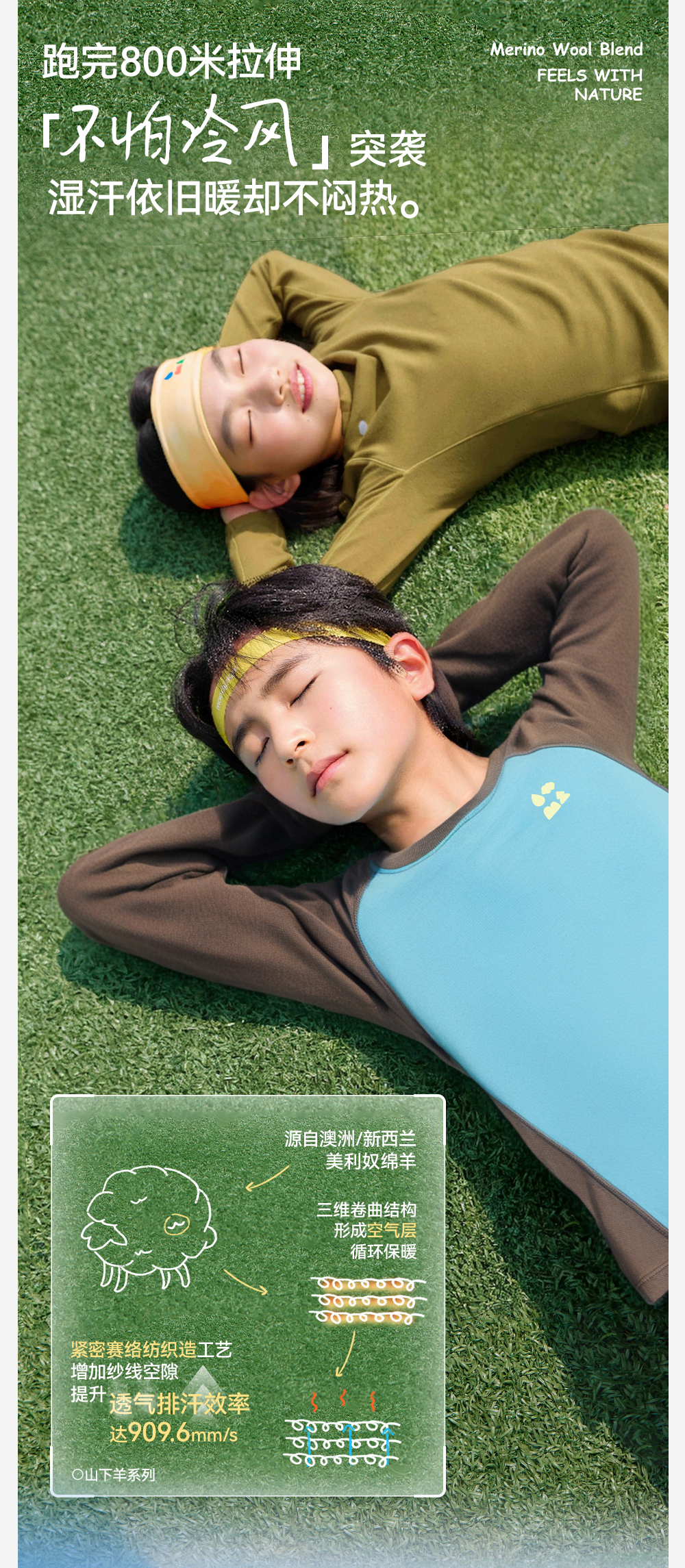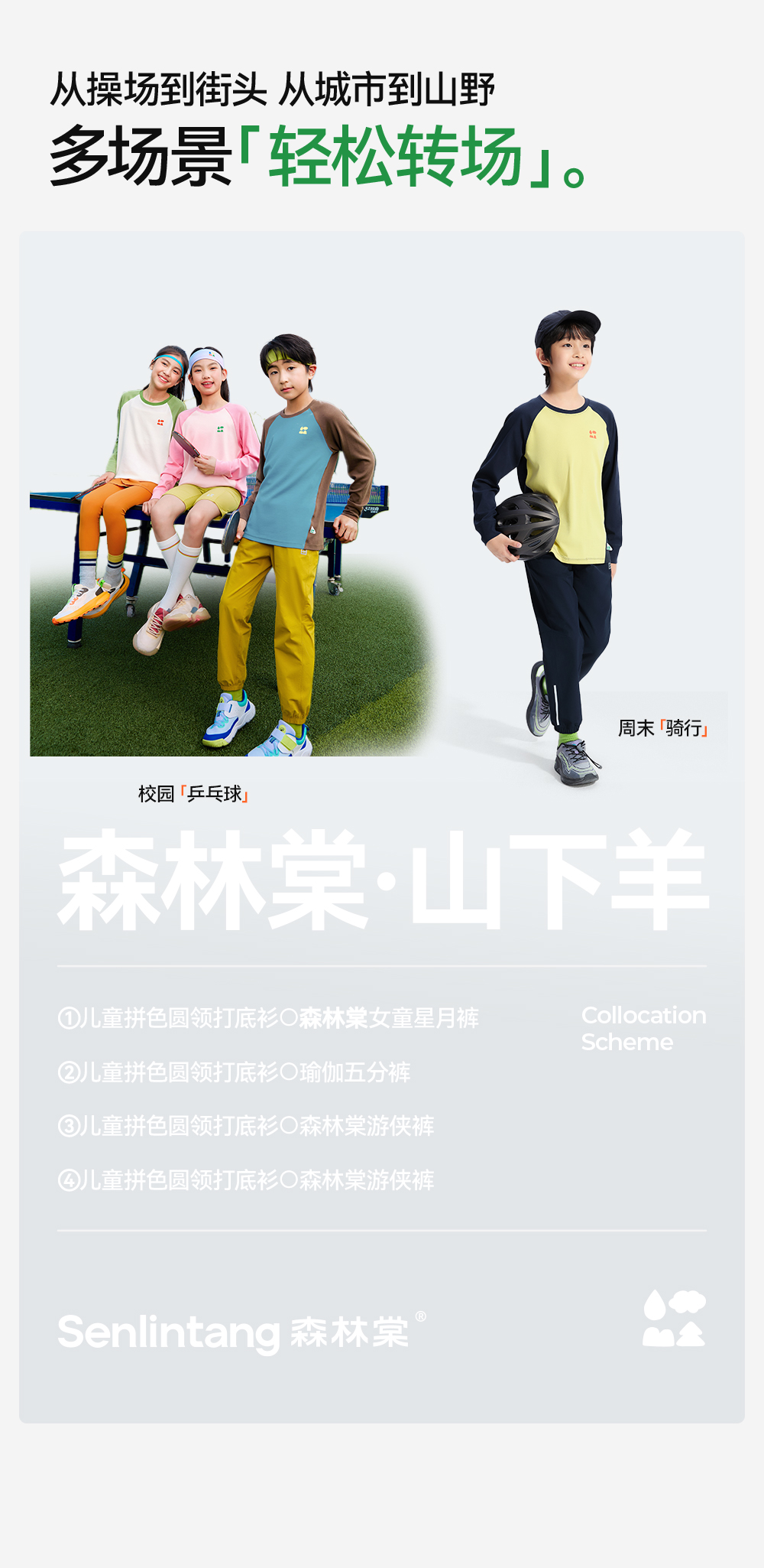 【天丝羊毛插肩T恤】森林棠25秋新款 儿童运动排汗拼色保暖打底上衣60253182