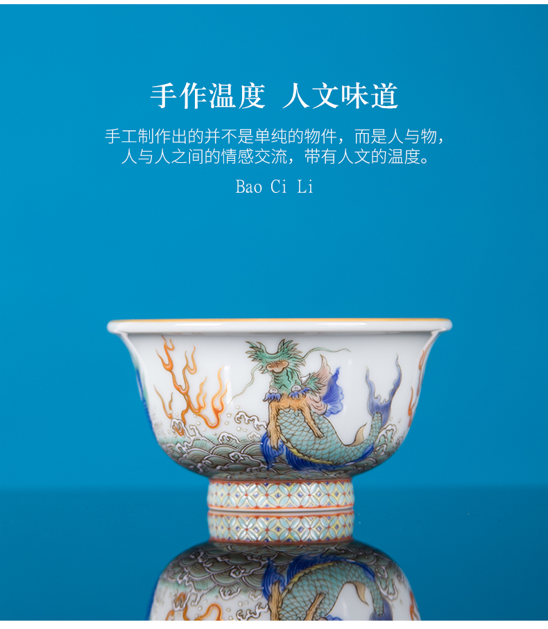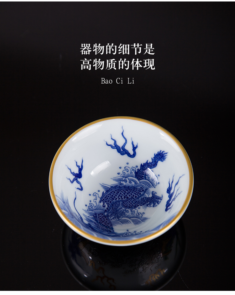 青花古彩描金鱼化龙压手杯 商品图4