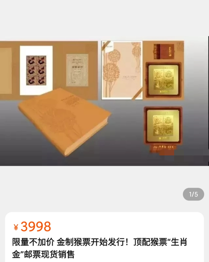 2016年的首枚邮票金,30万的发行量被一抢而空,几年时间,品相完好的价格接近4000元,而且还非常难找。