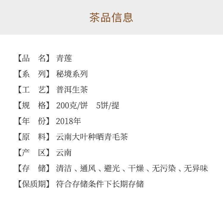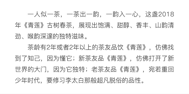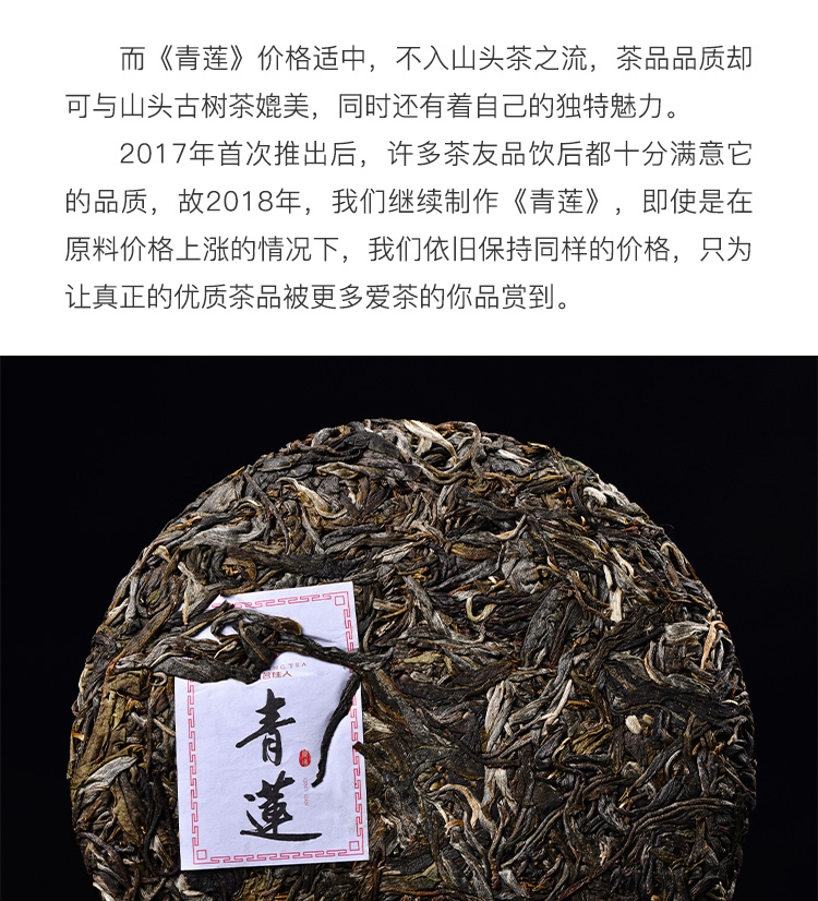 【秒杀】200克*5饼 2018年《青莲》古树春茶 普洱生茶