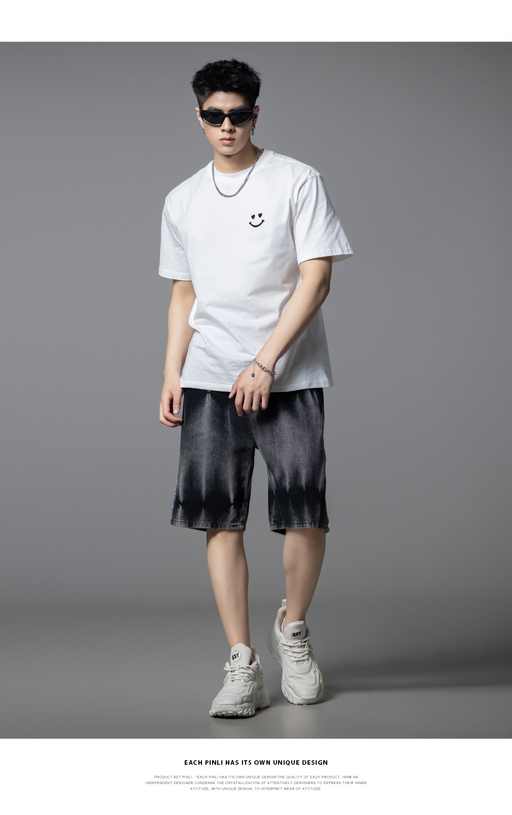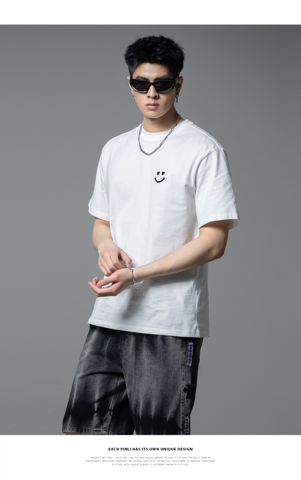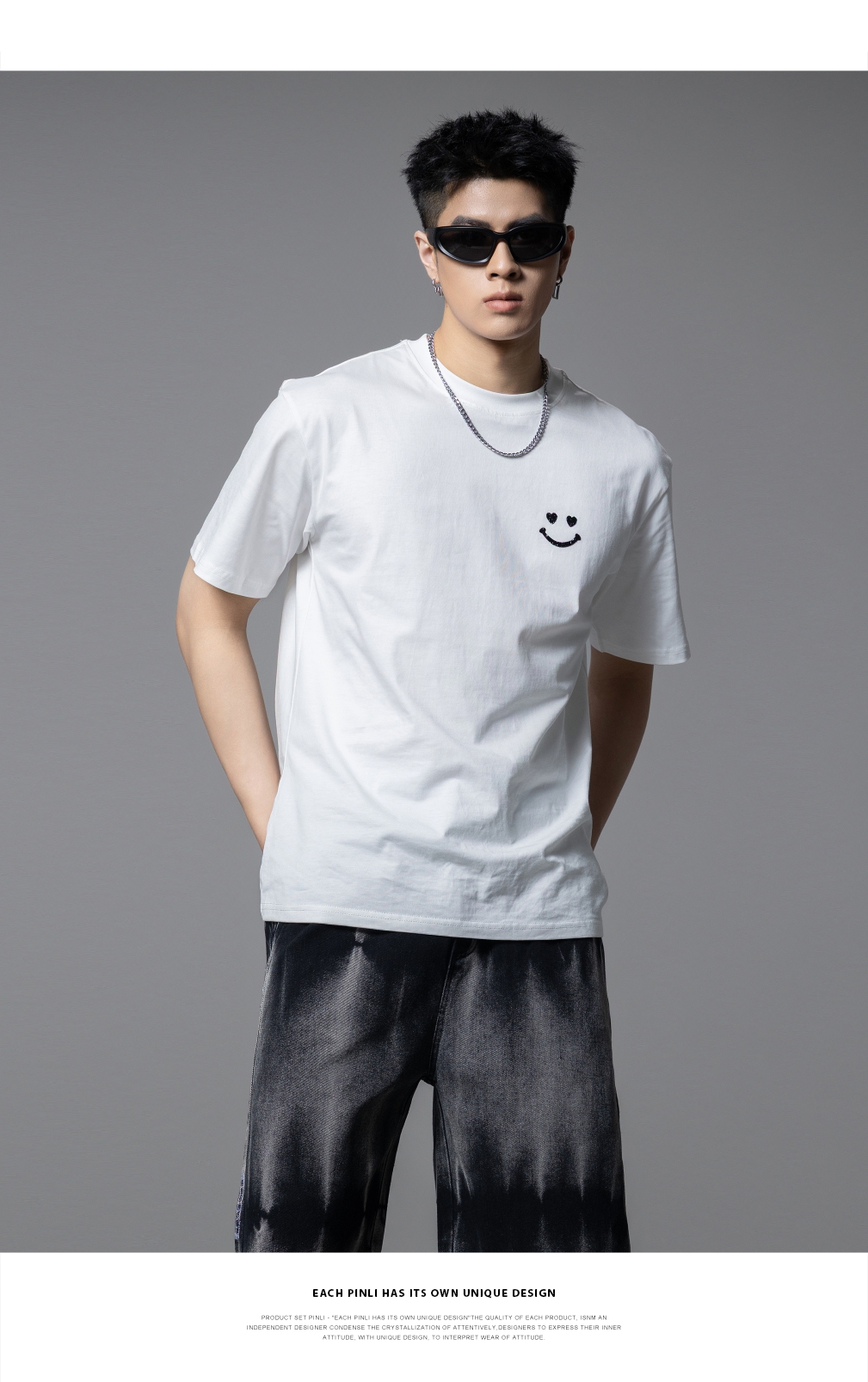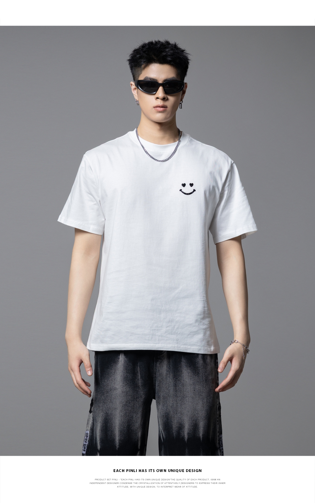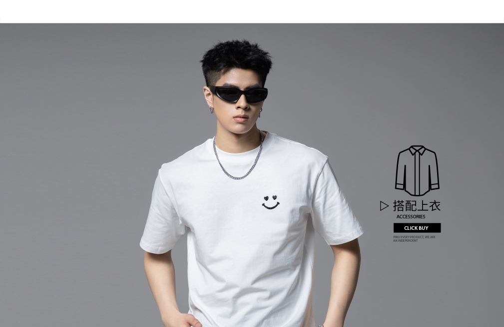 PINLI品立2025夏季新款男士笑脸烫钻圆领短袖T恤上衣BG252111056