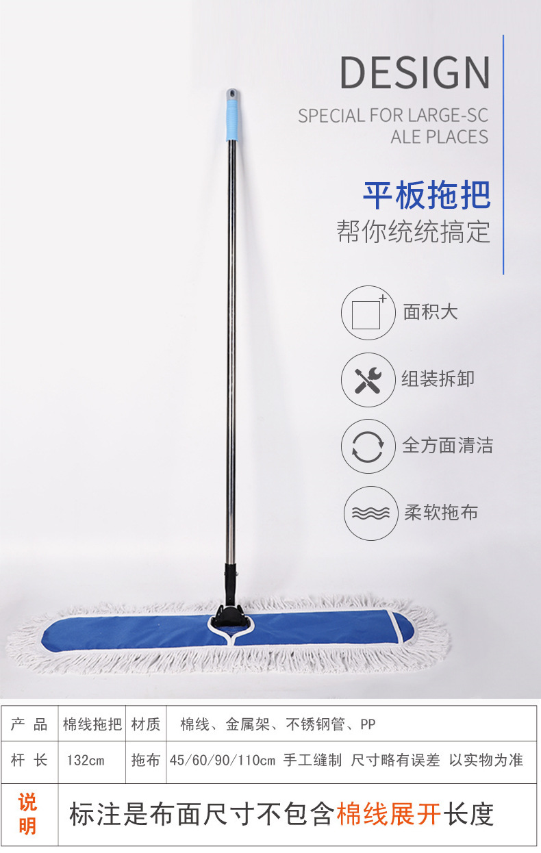 60cm大平板拖把家用商用工业用大号尘推排拖酒店大堂大头拖把油拖棉线拖布长地拖