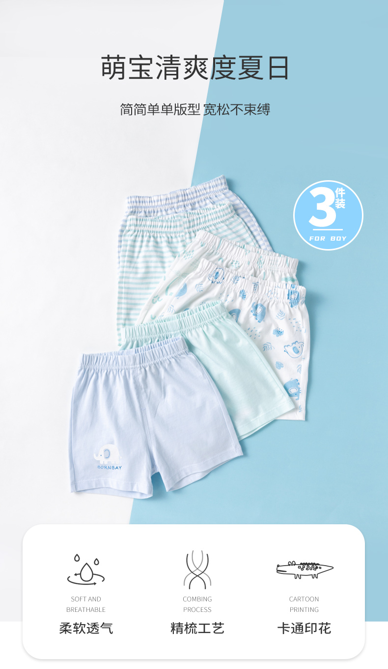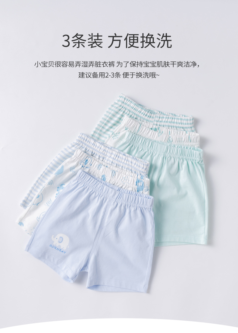 贝贝怡男童短裤夏季薄款中大童男孩儿童裤子五分裤休闲裤3条装
