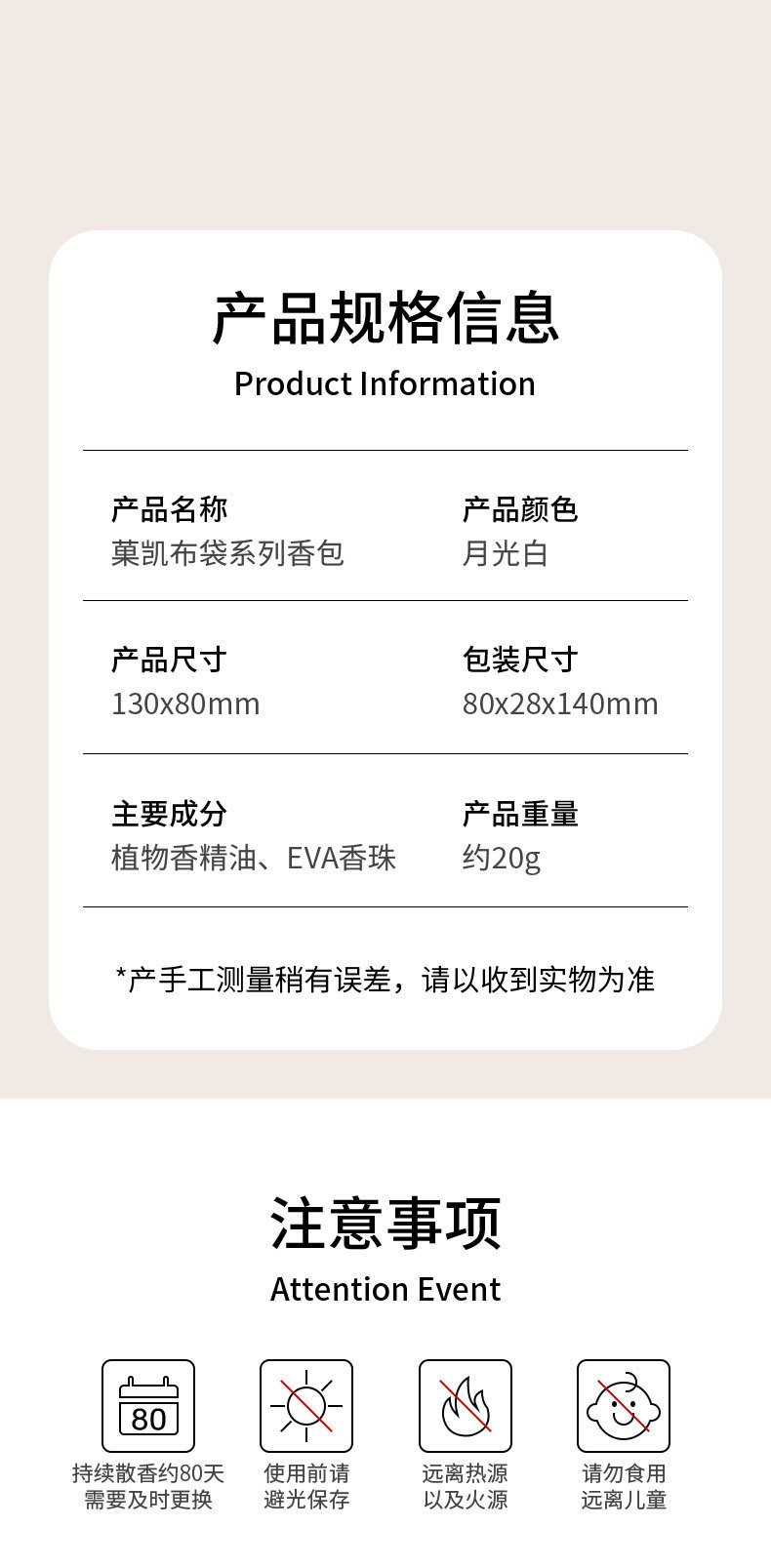 【品名】菓凯 花语布袋香包/桂花香薰蜡片 一物多用 多空间适用 【规格】 香包:英国梨&小苍兰、满陇桂雨、纯白栀子、蓝风铃、丝绒玫瑰乌木、白桃乌龙、鼠尾草&海盐 圆形/椭圆形蜡片:桂花 【产地】国内 【发货包装】独立包装 【发货地】江苏 【发货快递】极兔、申通随机发 【补邮费地区】新疆+10元 西藏+12元 内宁甘青+3元 【发货时效】48-72小时,周末节假日顺延 |
