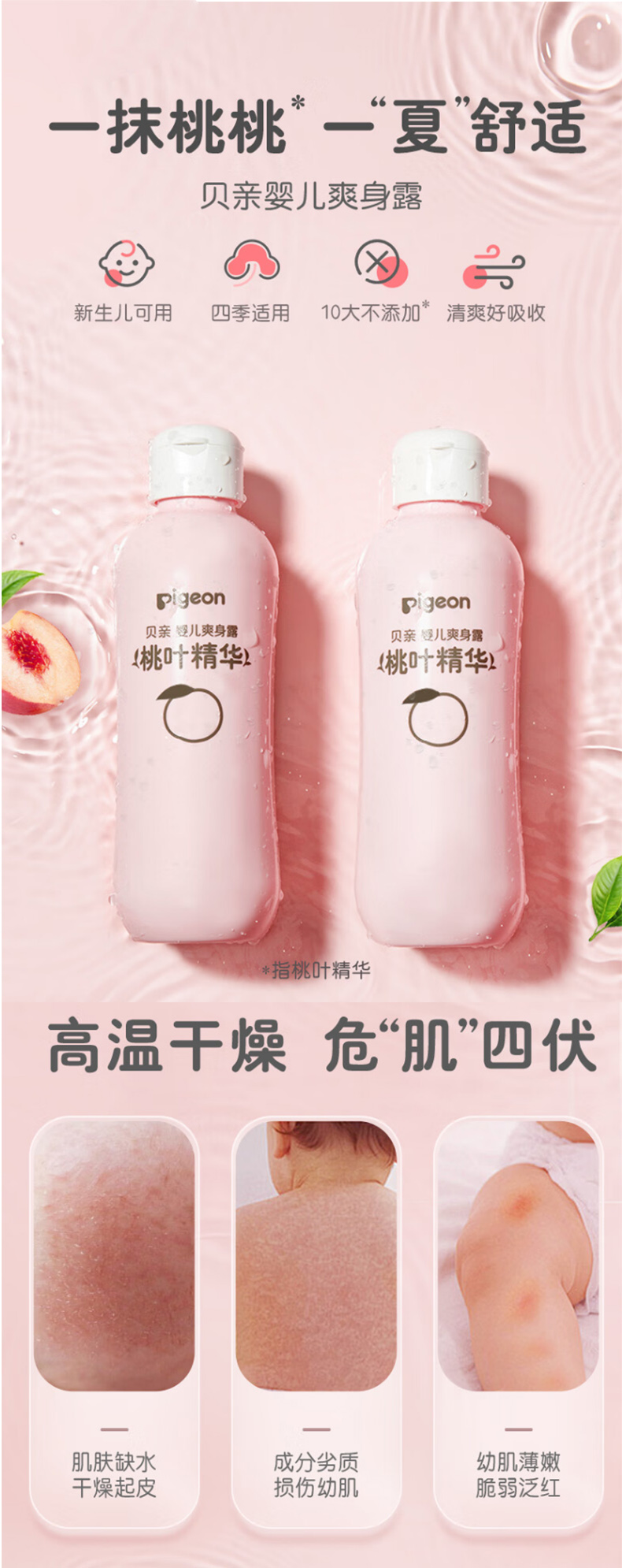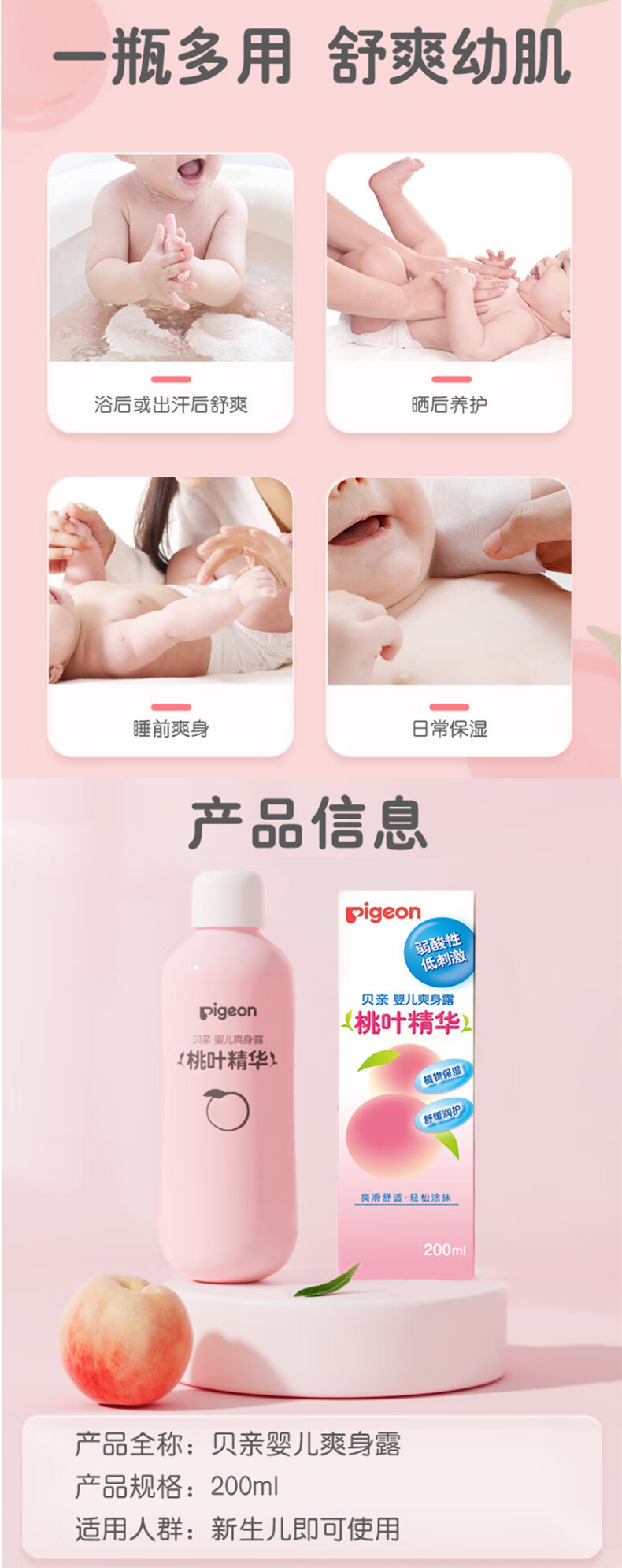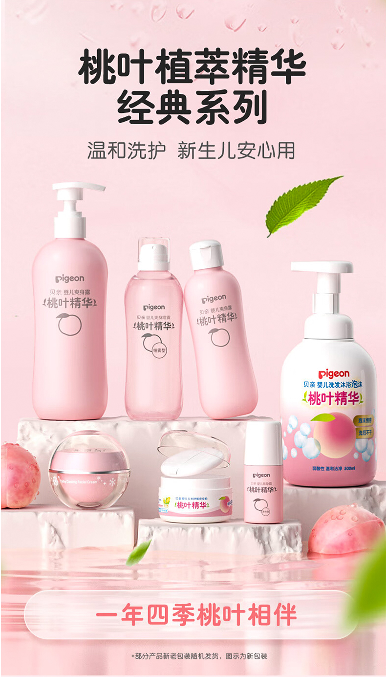 贝亲桃叶精华护肤系列二合一洗发沐浴露桃子水润肤面霜爽身粉