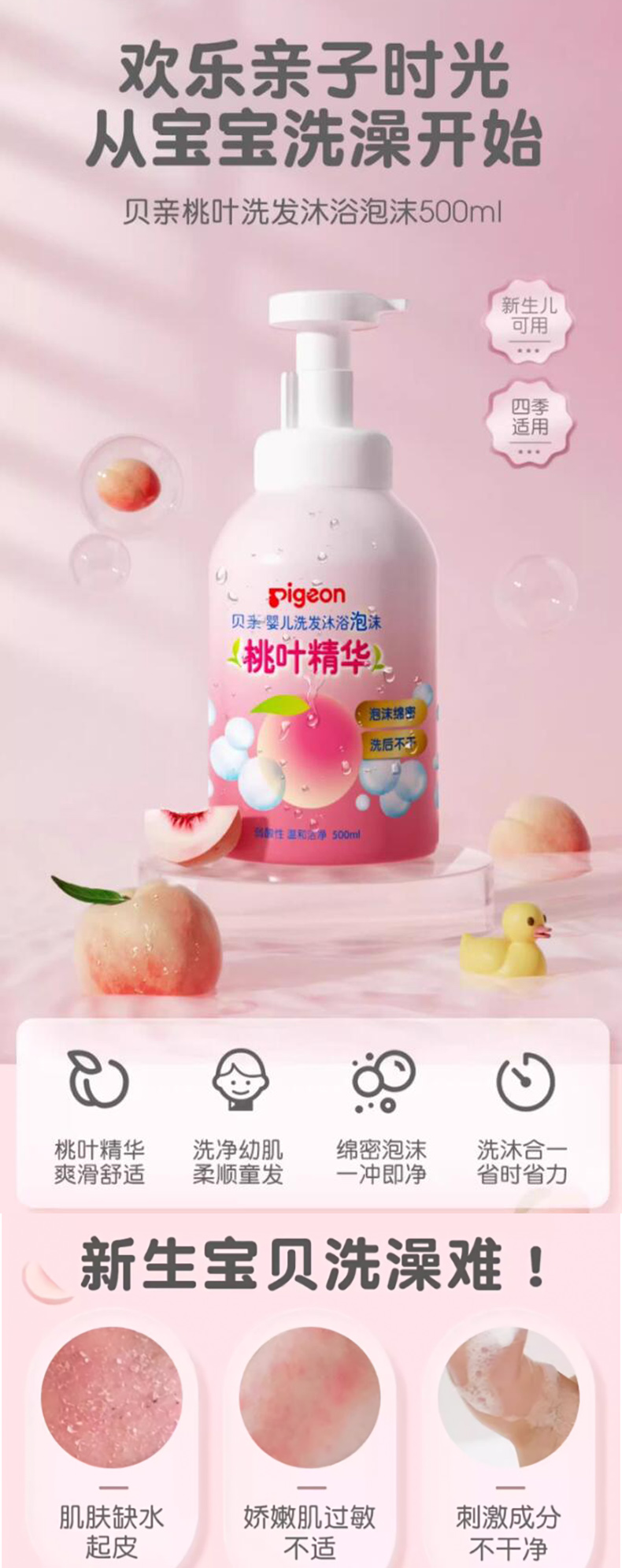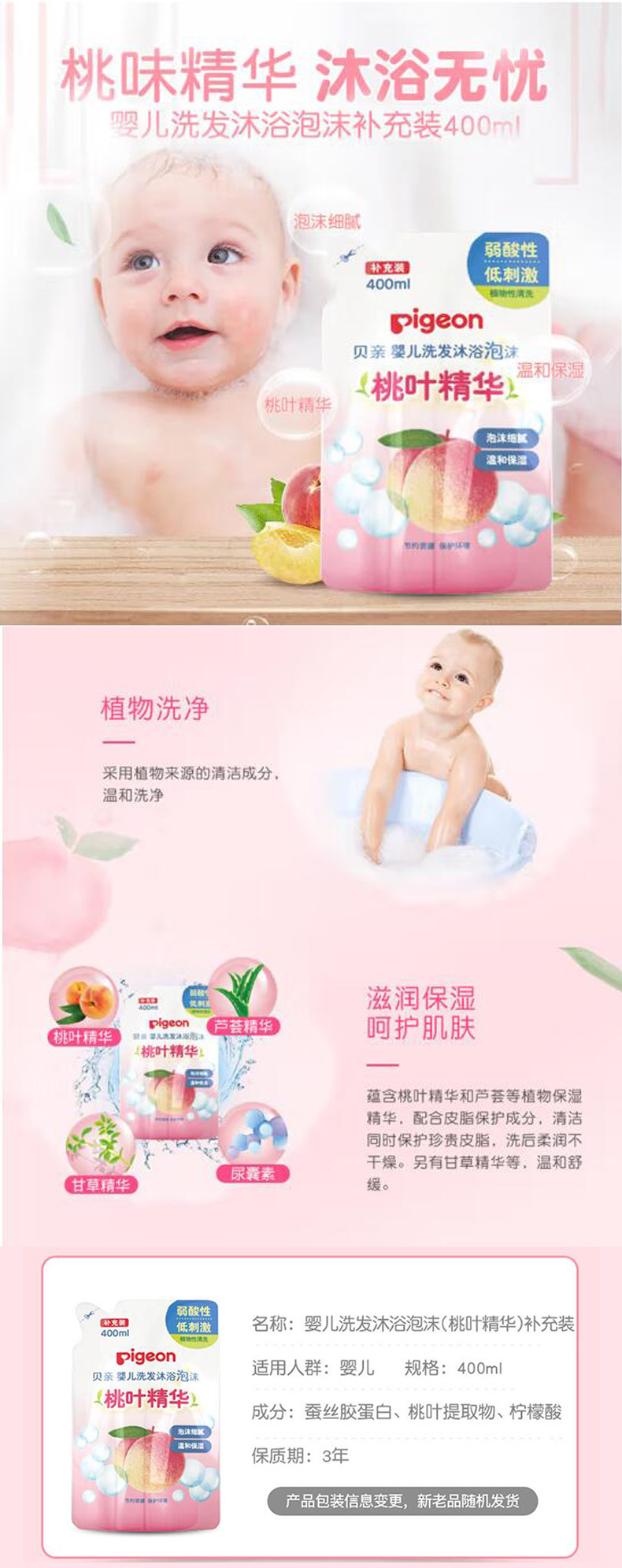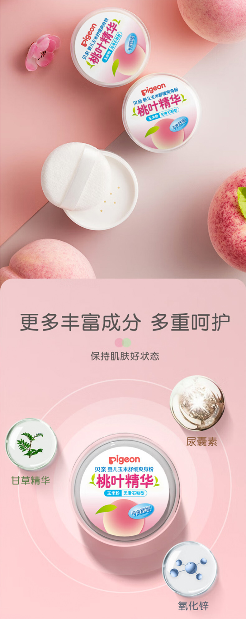贝亲桃叶精华护肤系列二合一洗发沐浴露桃子水润肤面霜爽身粉