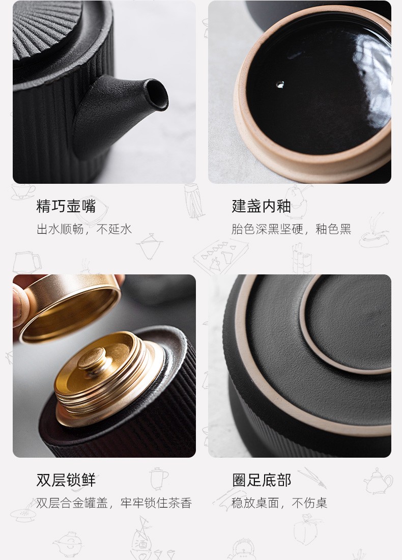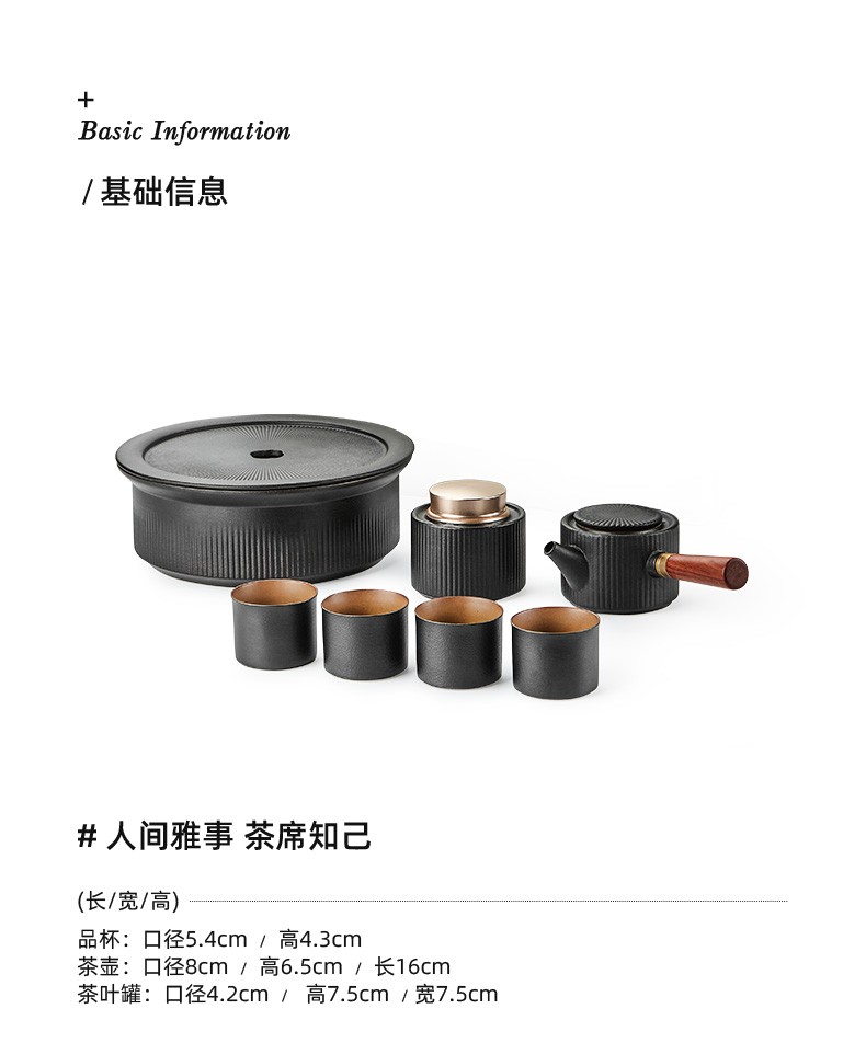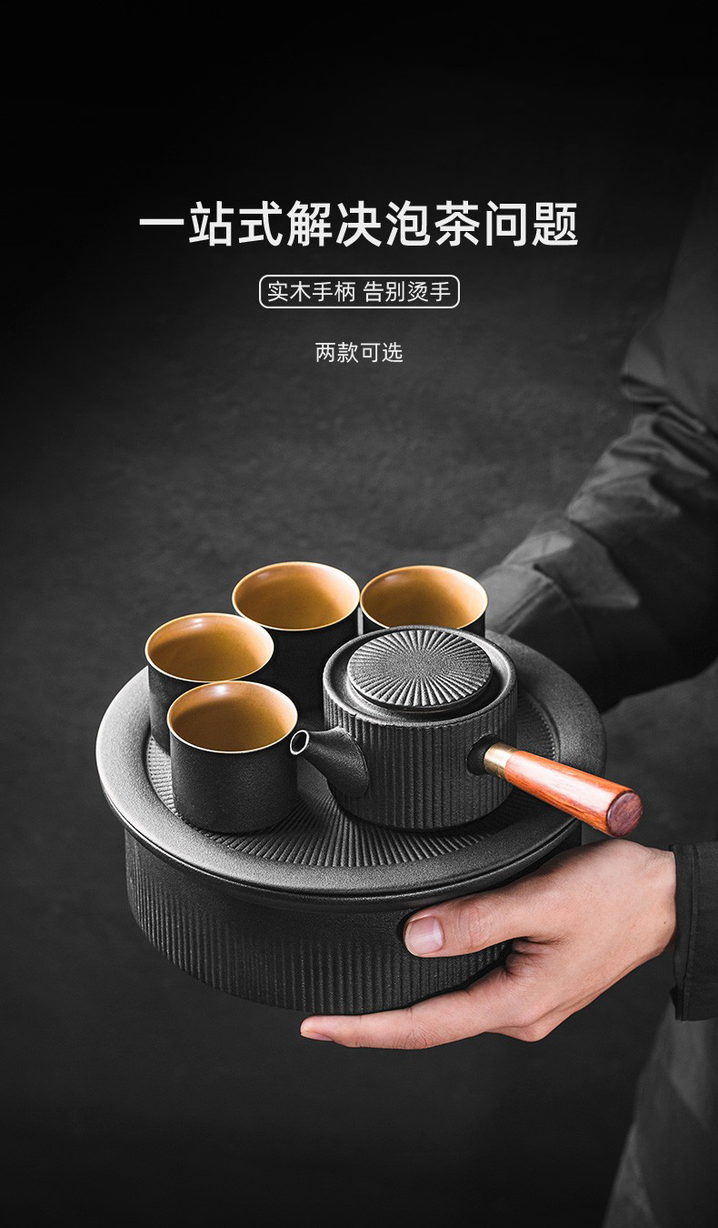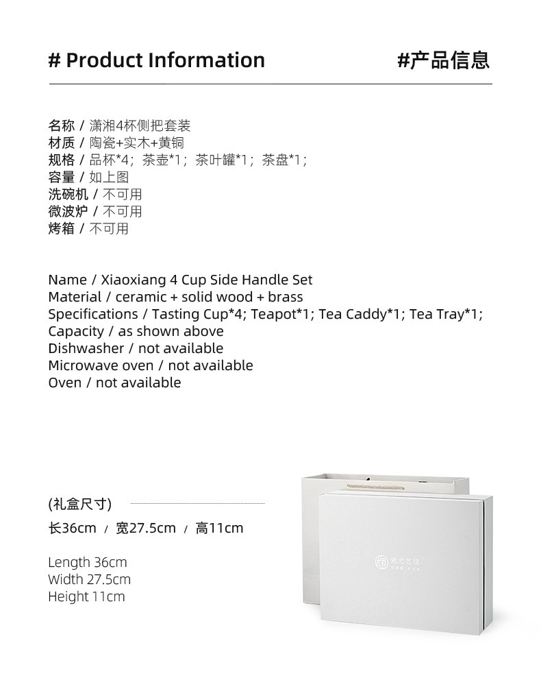 日式茶具套装家用陶瓷简约功夫茶具茶壶茶盘小套礼盒装办公室泡茶 潇湘4杯侧把套装