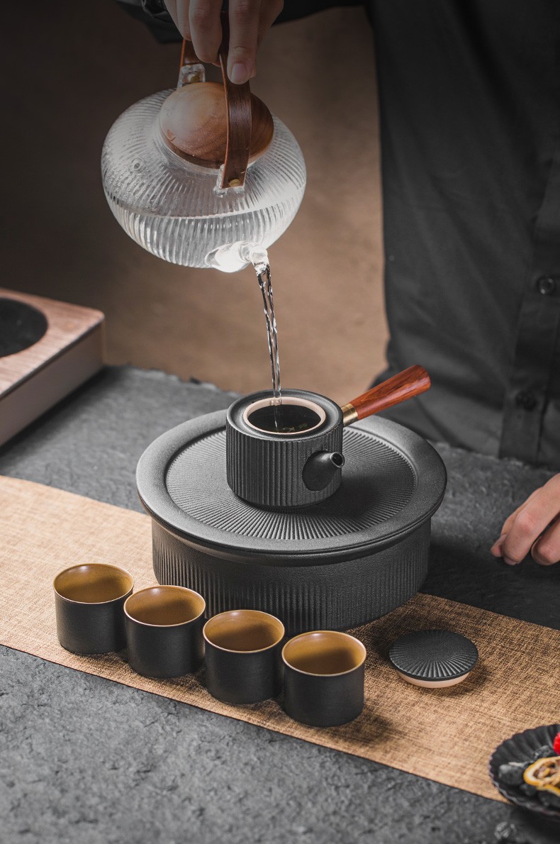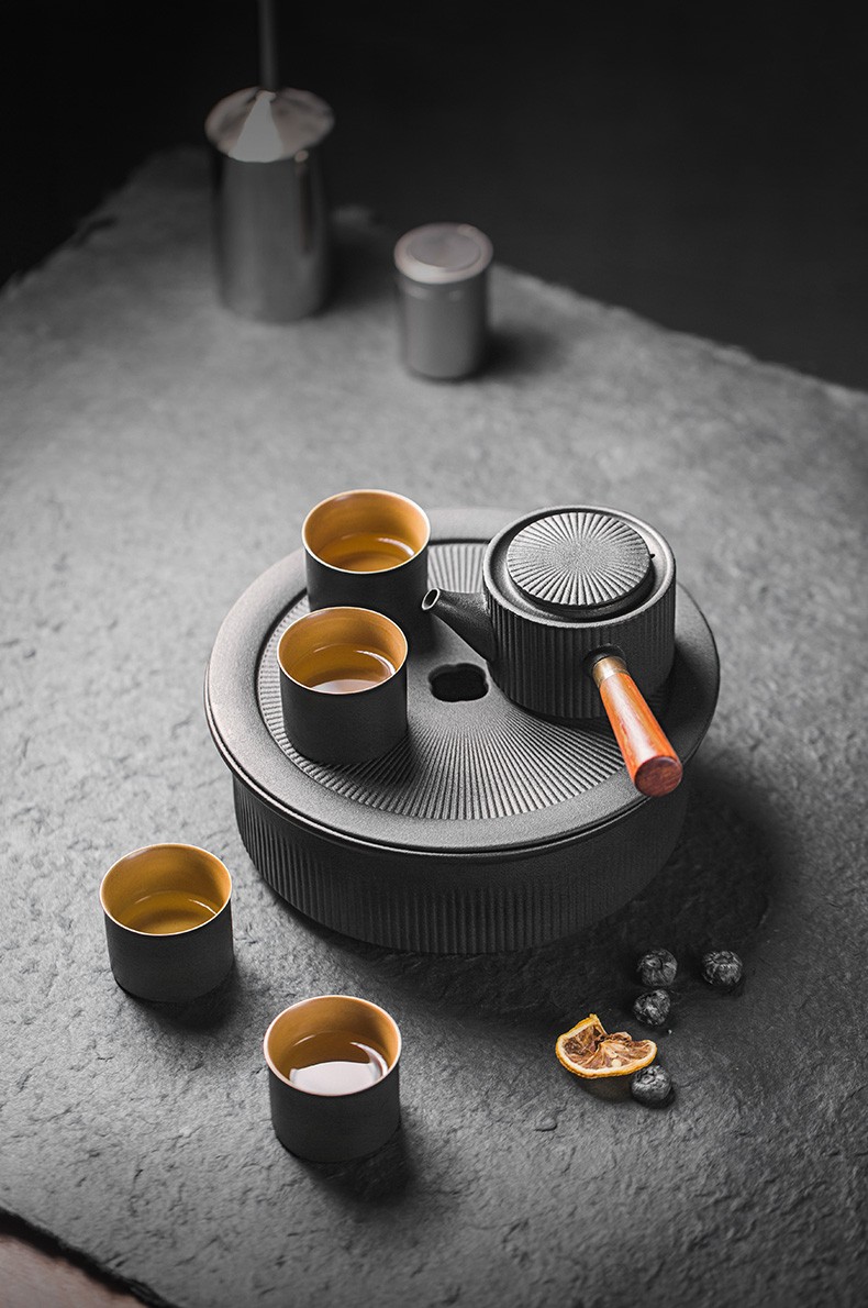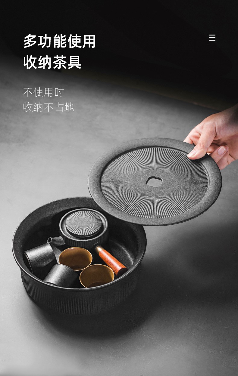 日式茶具套装家用陶瓷简约功夫茶具茶壶茶盘小套礼盒装办公室泡茶 潇湘4杯侧把套装