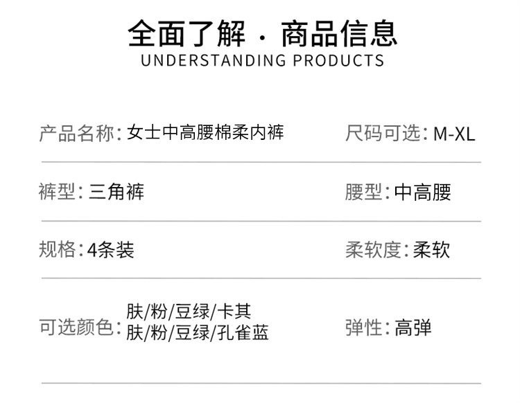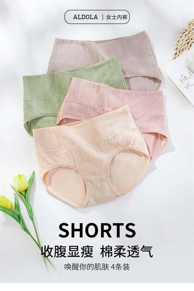 雅黛丽内裤女生纯棉透气高腰三角裤收腹显瘦提臀高弹短裤头4条装
