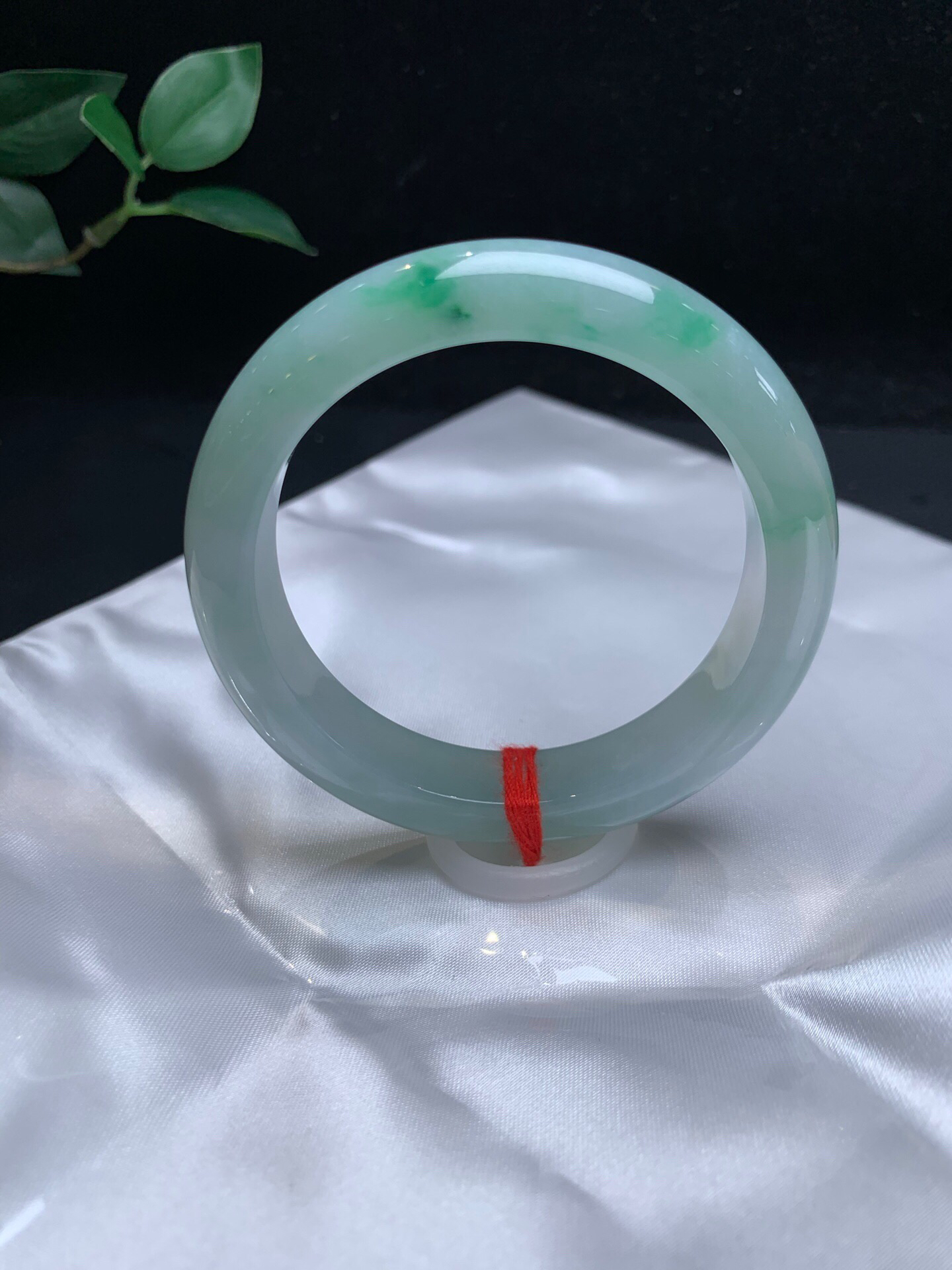 612921,55飘绿手镯、版型不错,飘绿花 润润的