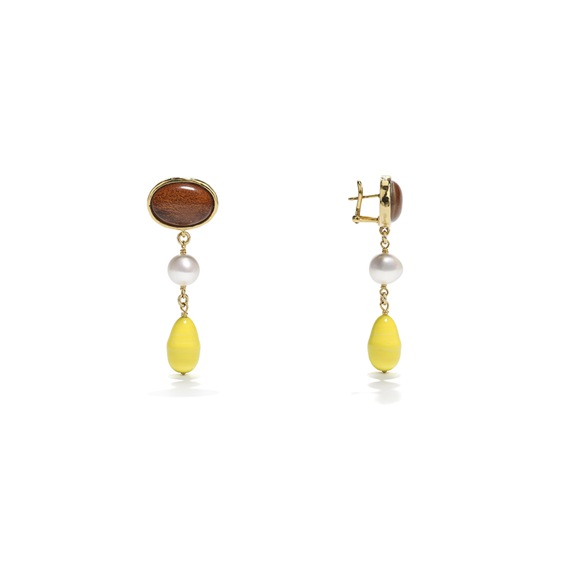 北京仓|Goossens Paris-BOHEME-棕色 琉璃珠 珍珠 吊坠 耳环[法国设计师]
