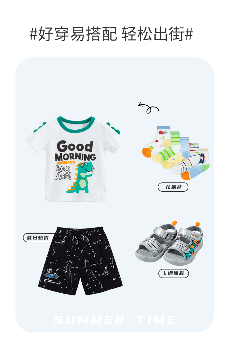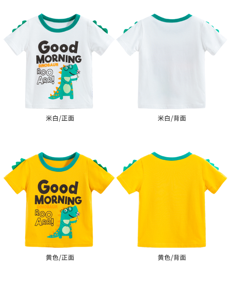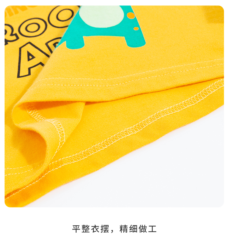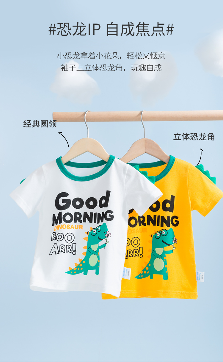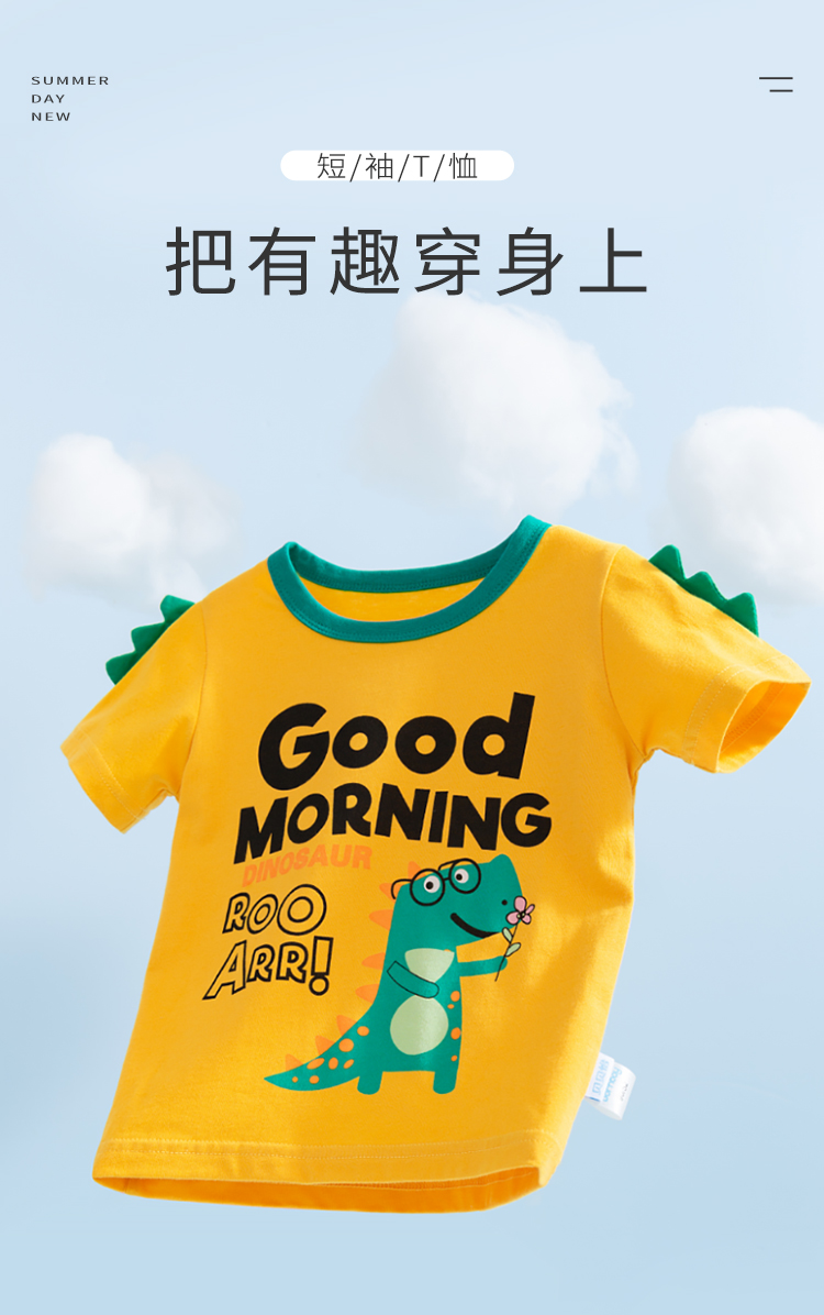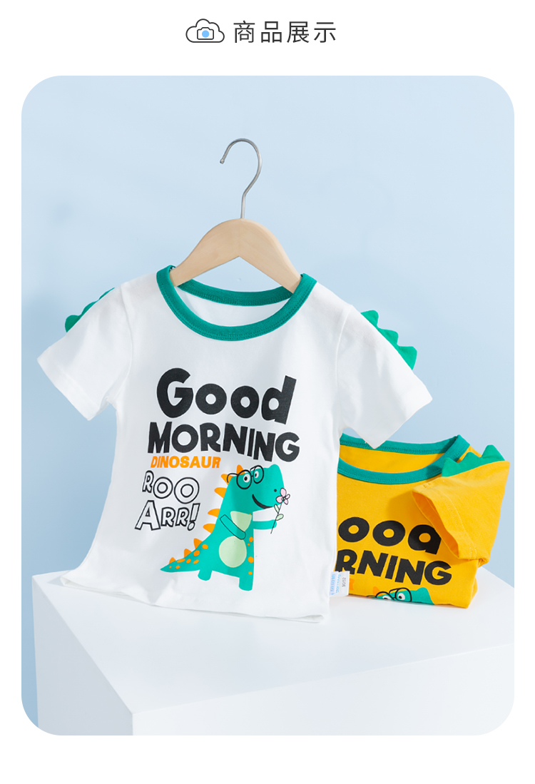 贝贝怡夏季新款儿童短袖T恤卡通恐龙男童宝宝纯棉圆领休闲童装