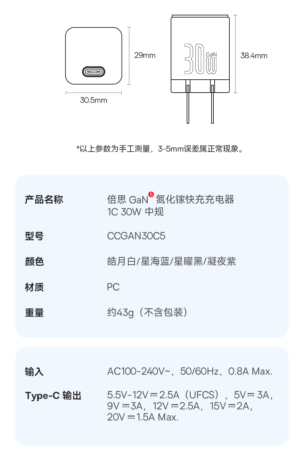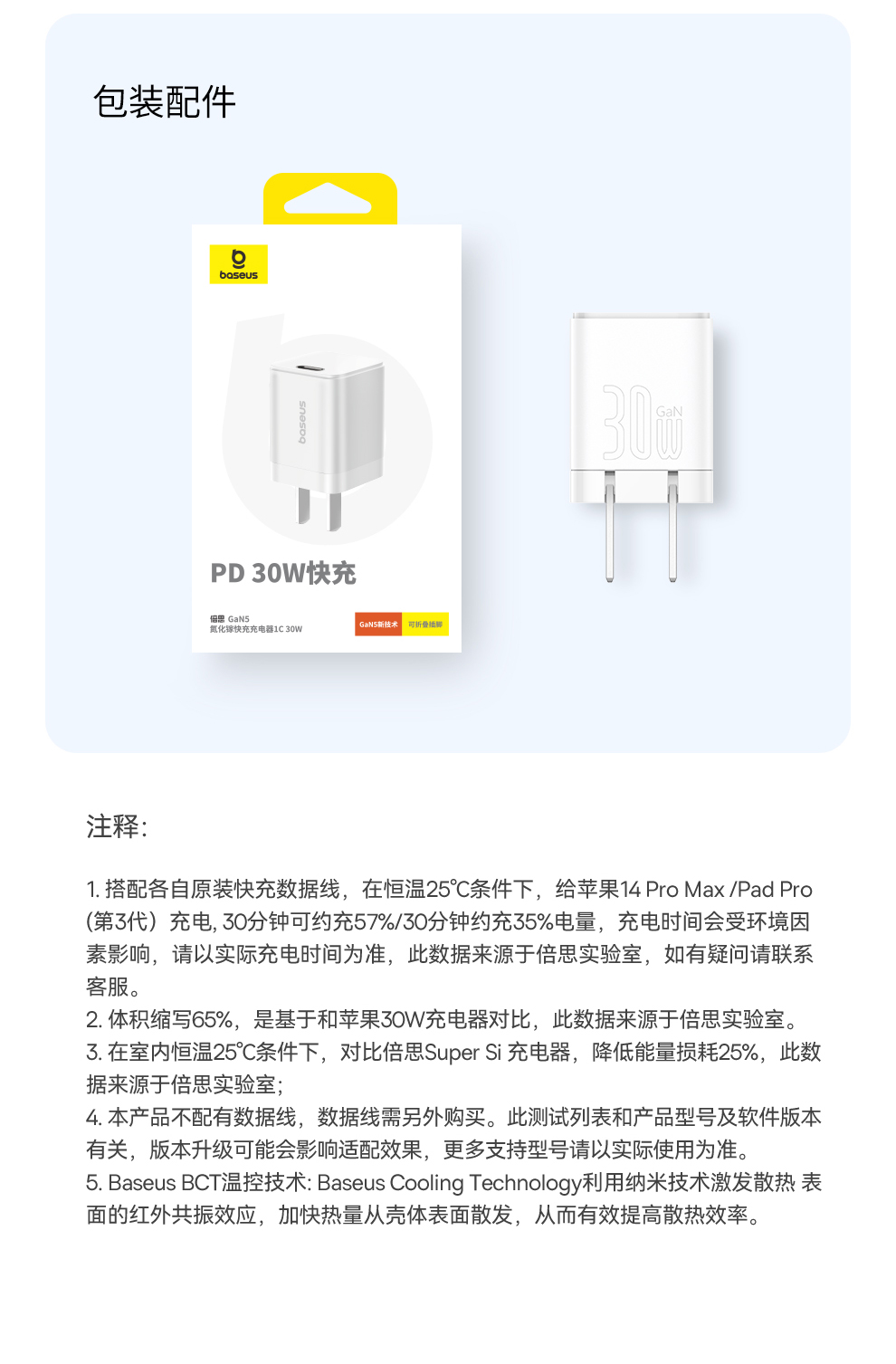 倍思 GaN5 氮化镓快充充电器 1C 20W