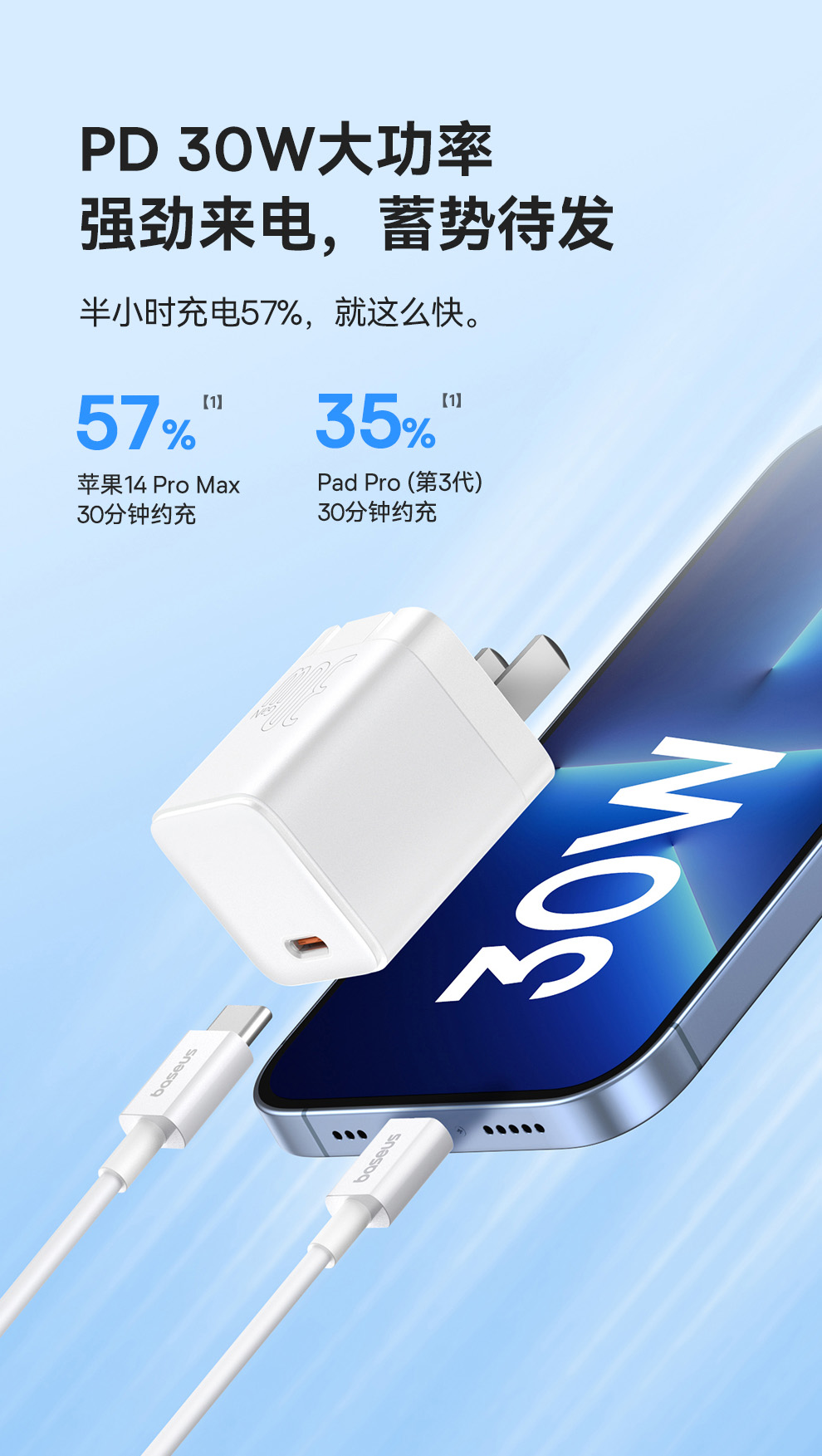 倍思 优胜系列 2 快充数据线 双Type-C 接口 30W 苹果15系列通用