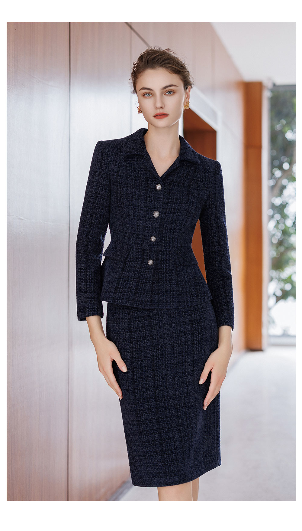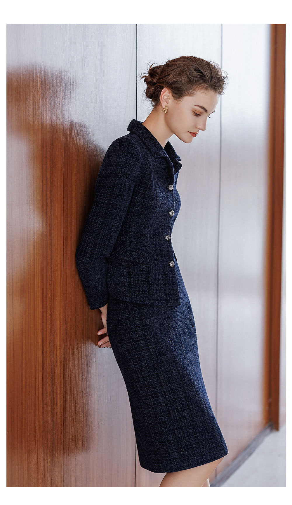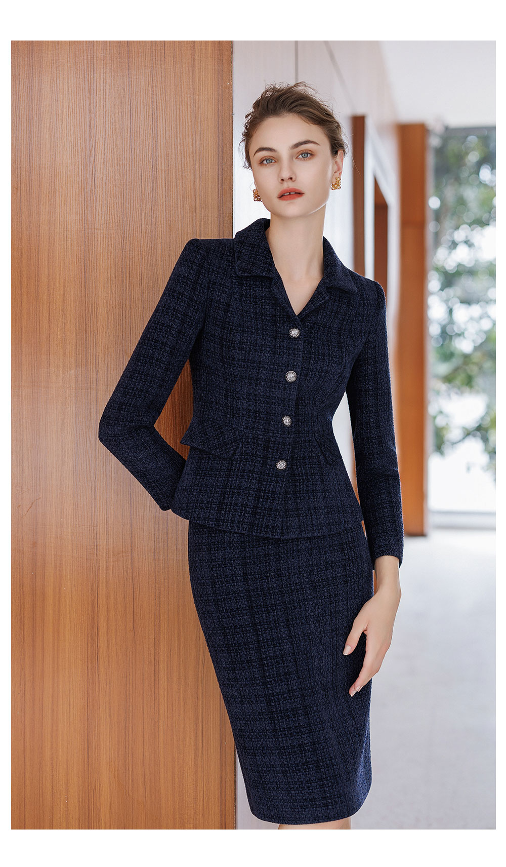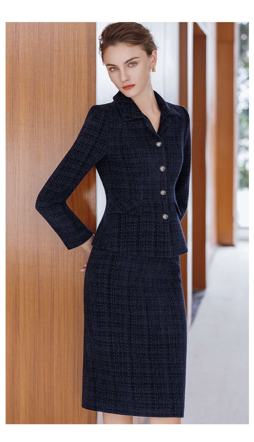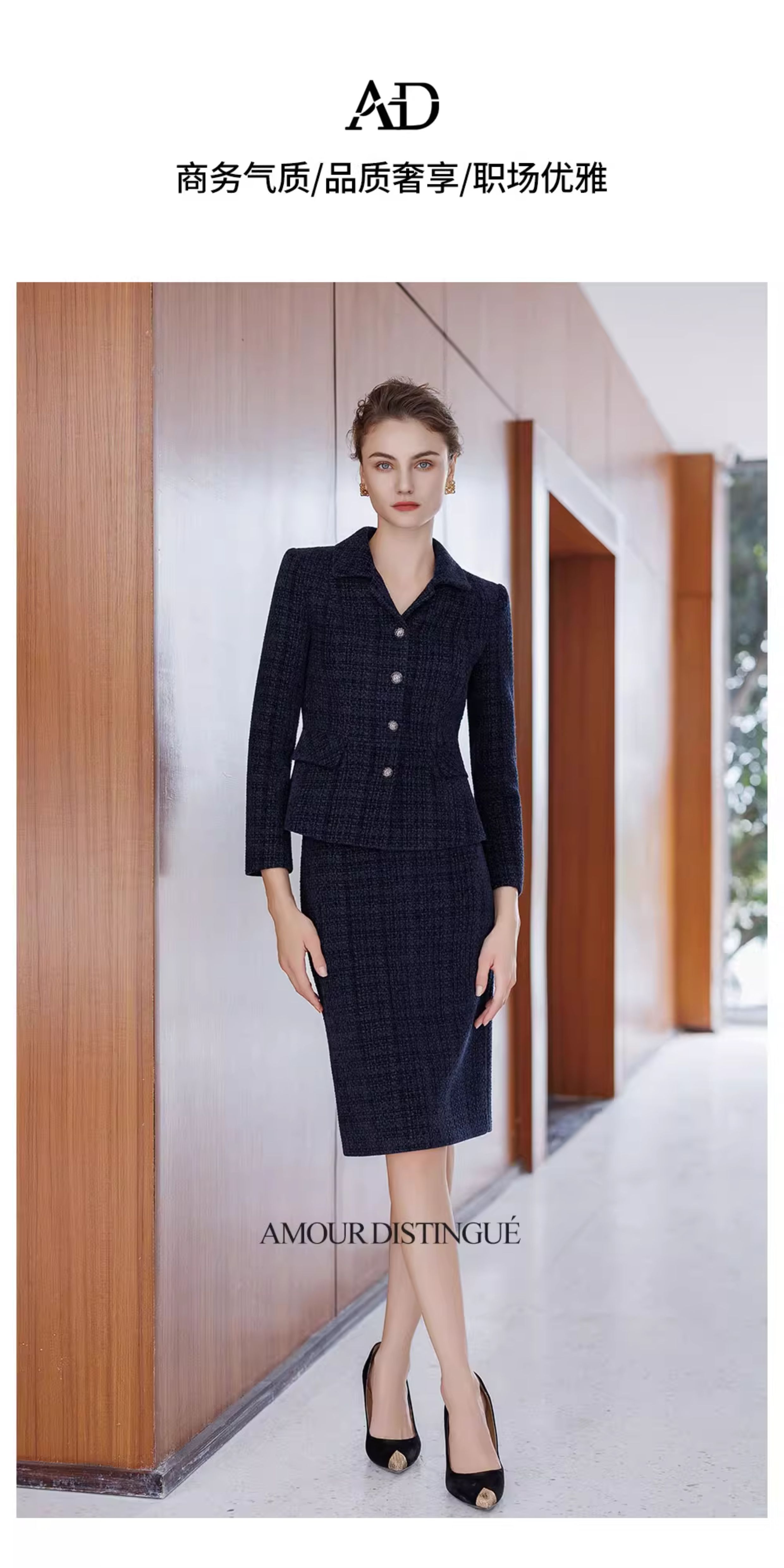 AD气质名媛小香风套装2025新款冬季高级感毛呢外套轻奢格纹半身裙