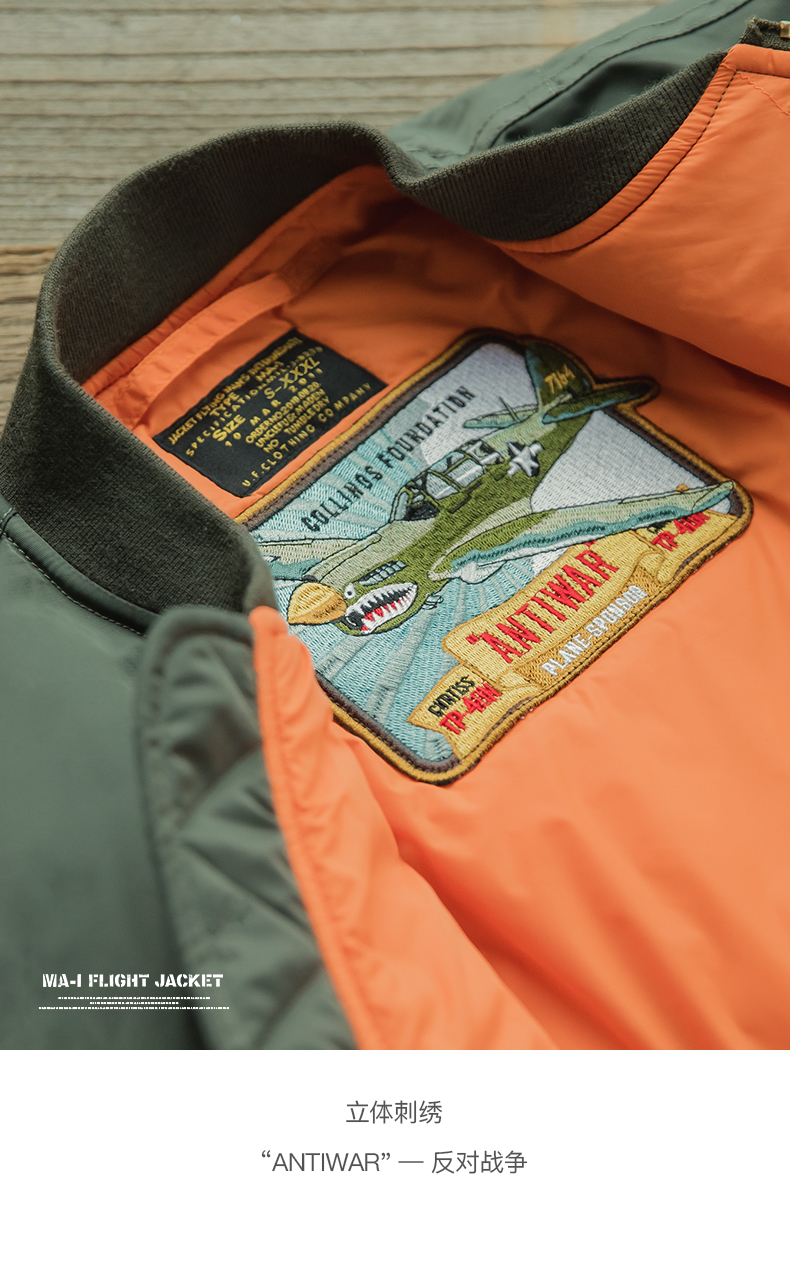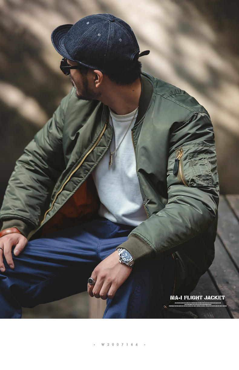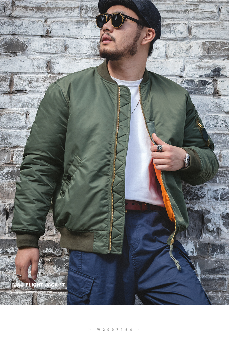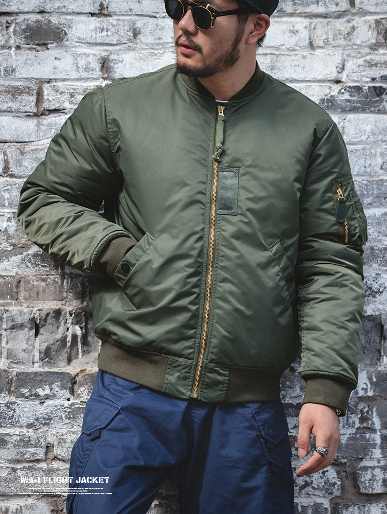 工装优选 美式复古二战军绿色MA-1飞行夹克短款保暖加厚棉衣男潮