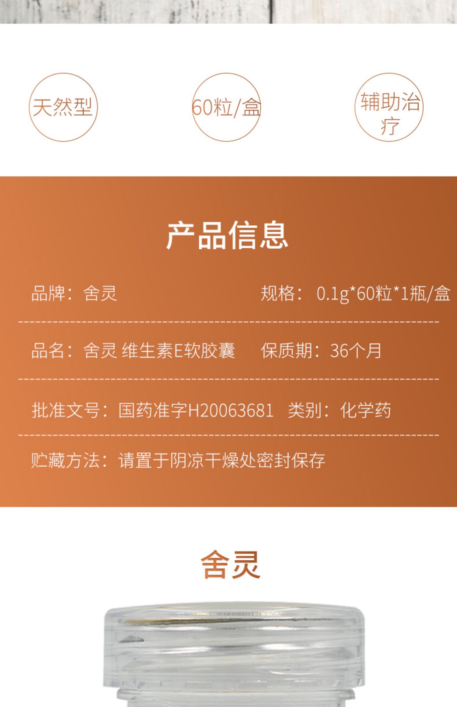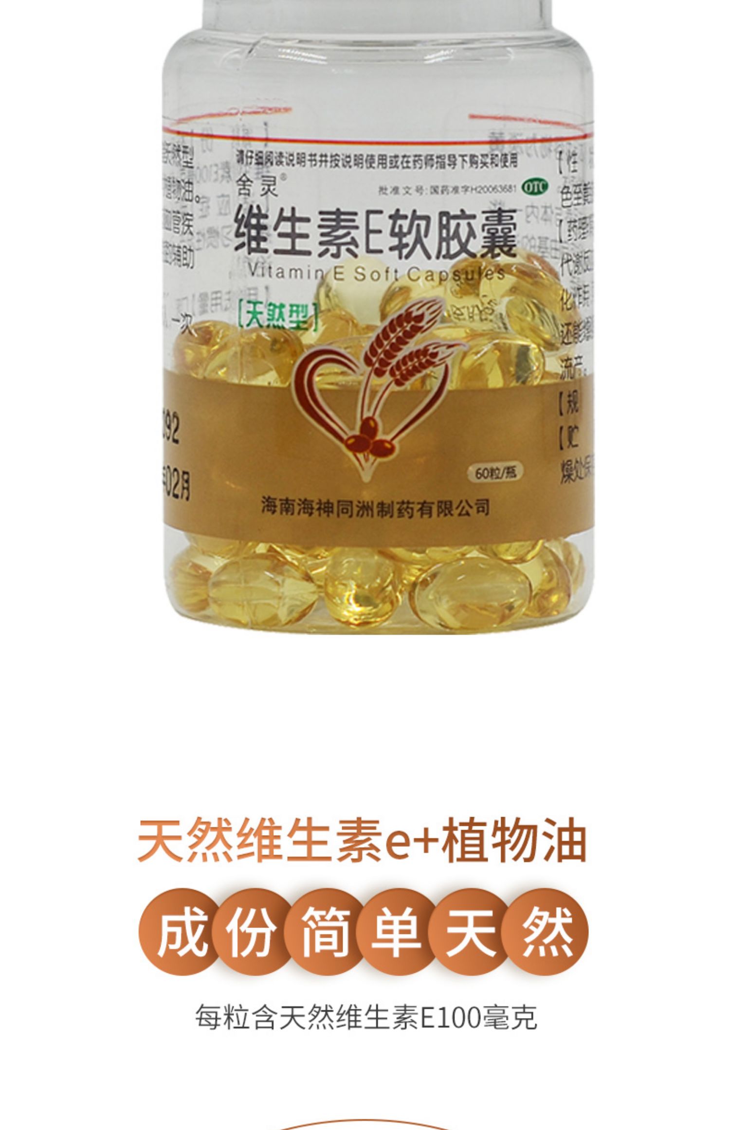 舍灵 维生素E软胶囊 60粒*1瓶/盒用于心脑血管疾病及习惯性流产