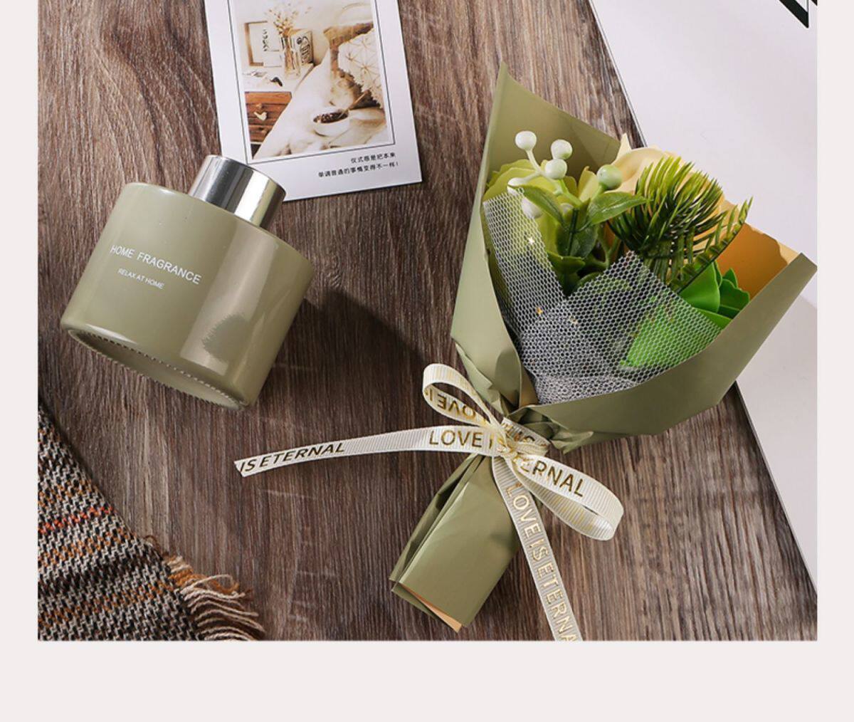 温馨提示:花束都是人工手工制作,每个批次不同,形状,大小颜色都会有所偏差,瓶子会有一点小瑕疵,盒子等一点瑕疵问题,不做为退货退款理由哦!