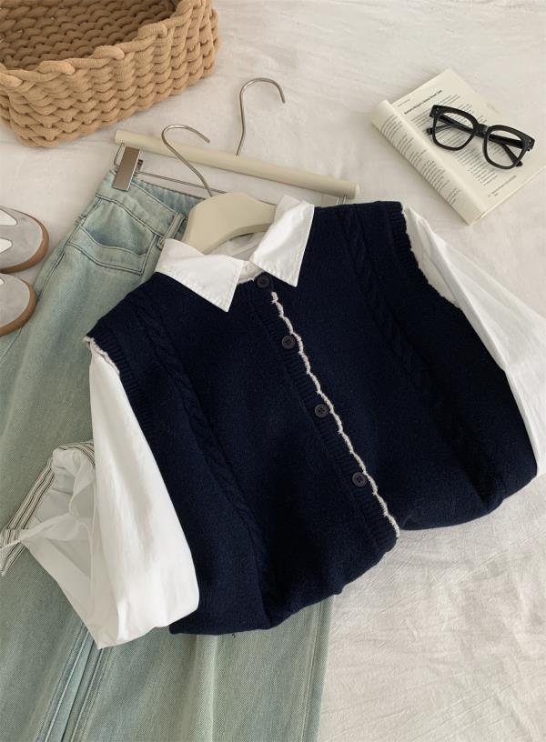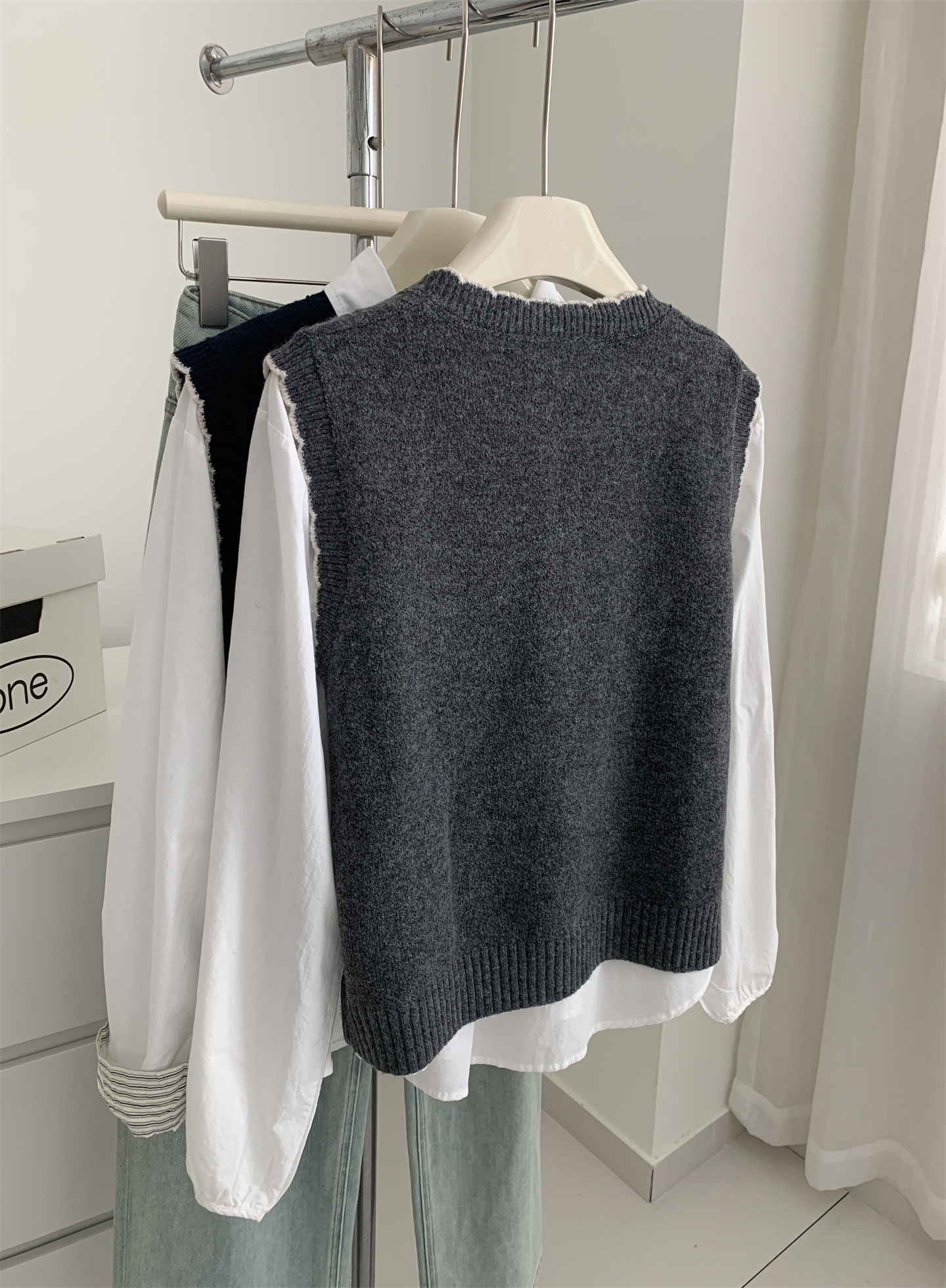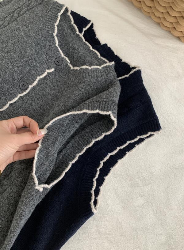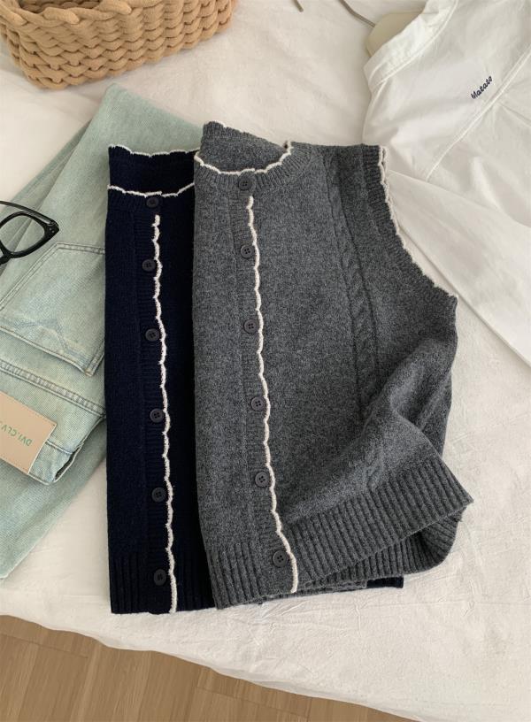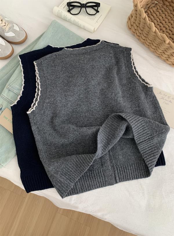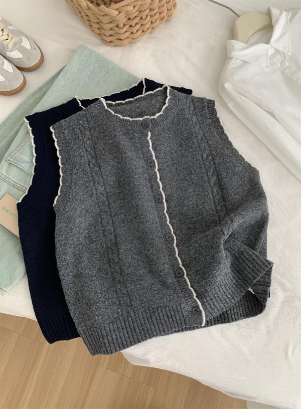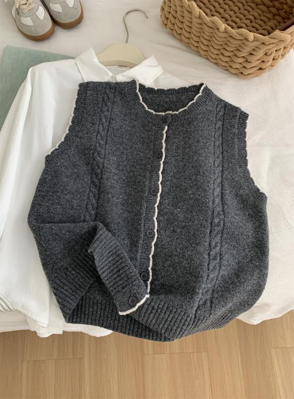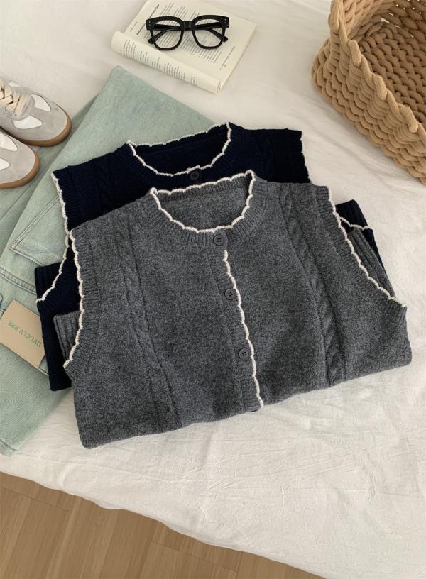 2025温柔复古花边圆领针织马甲!女软糯亲肤绵羊毛毛衣背心秋冬叠穿外套!