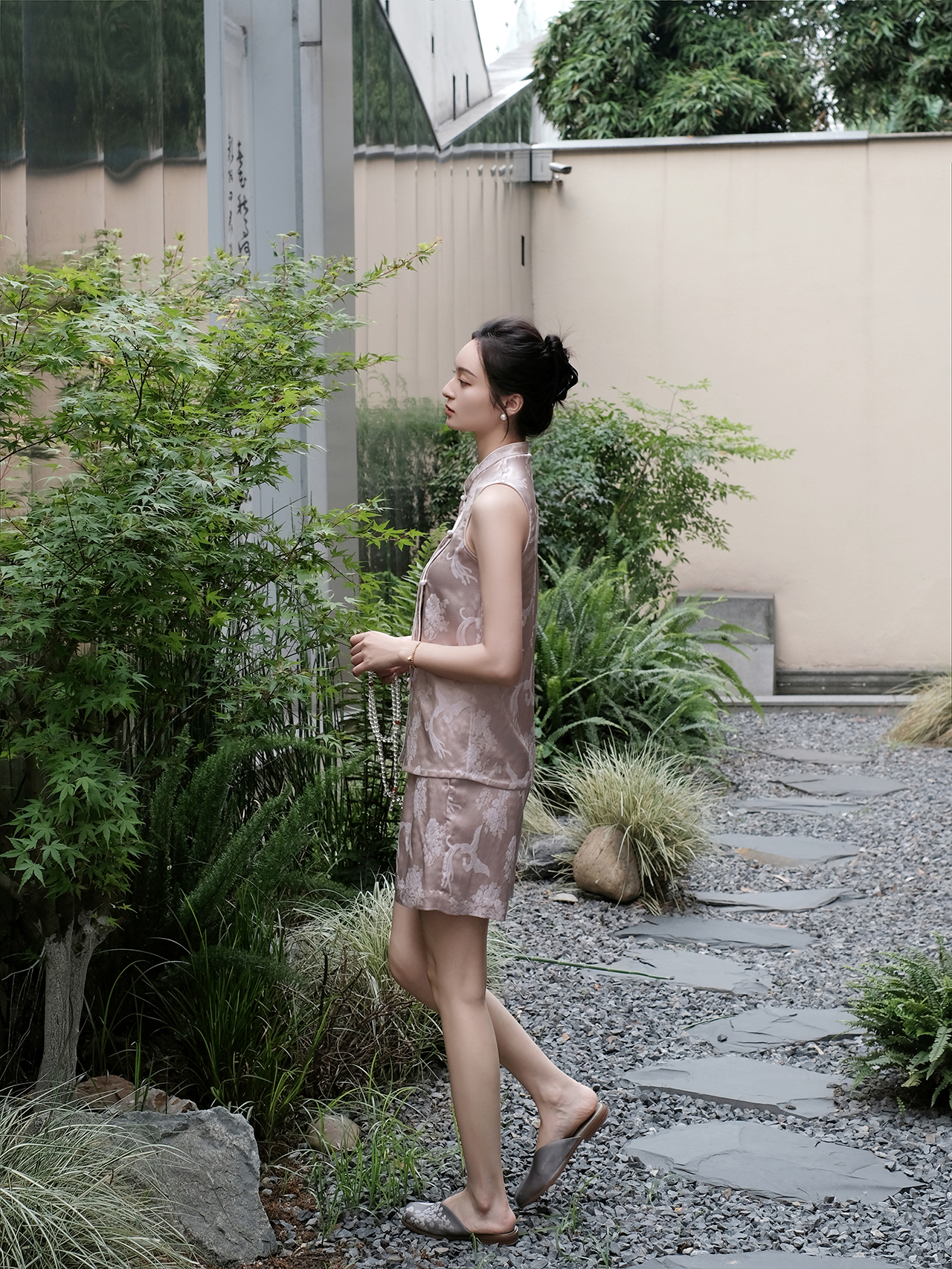盛唐牡丹 |老工艺花蕾缎真丝马甲正反两穿