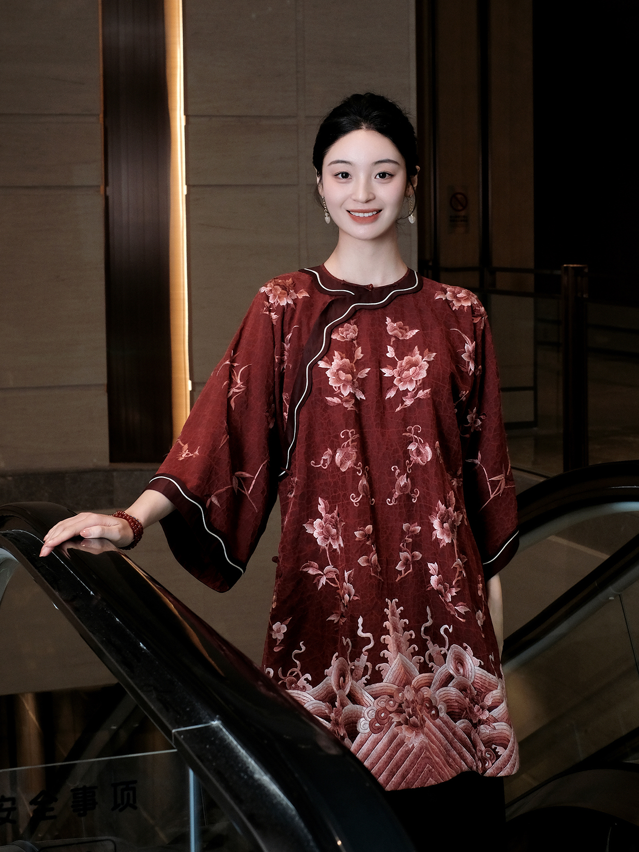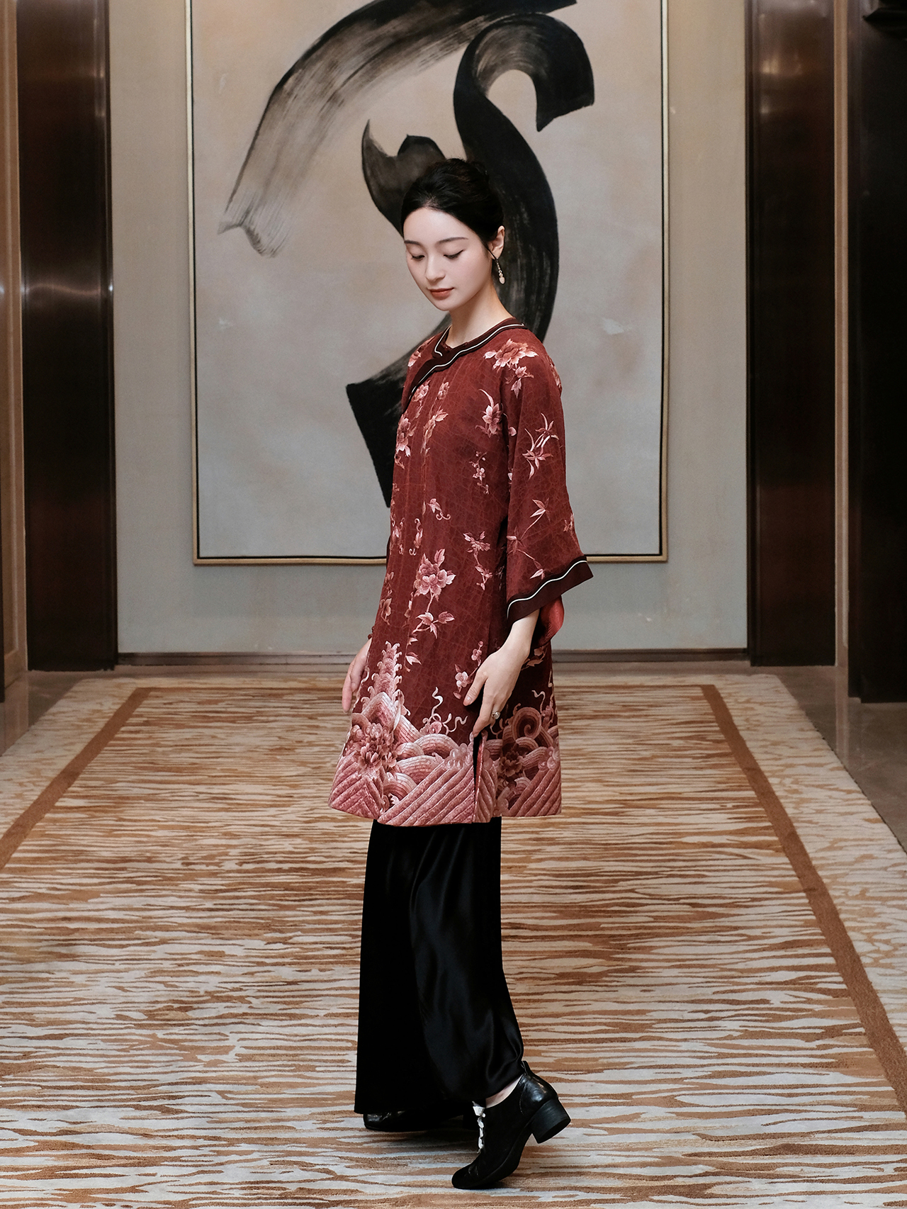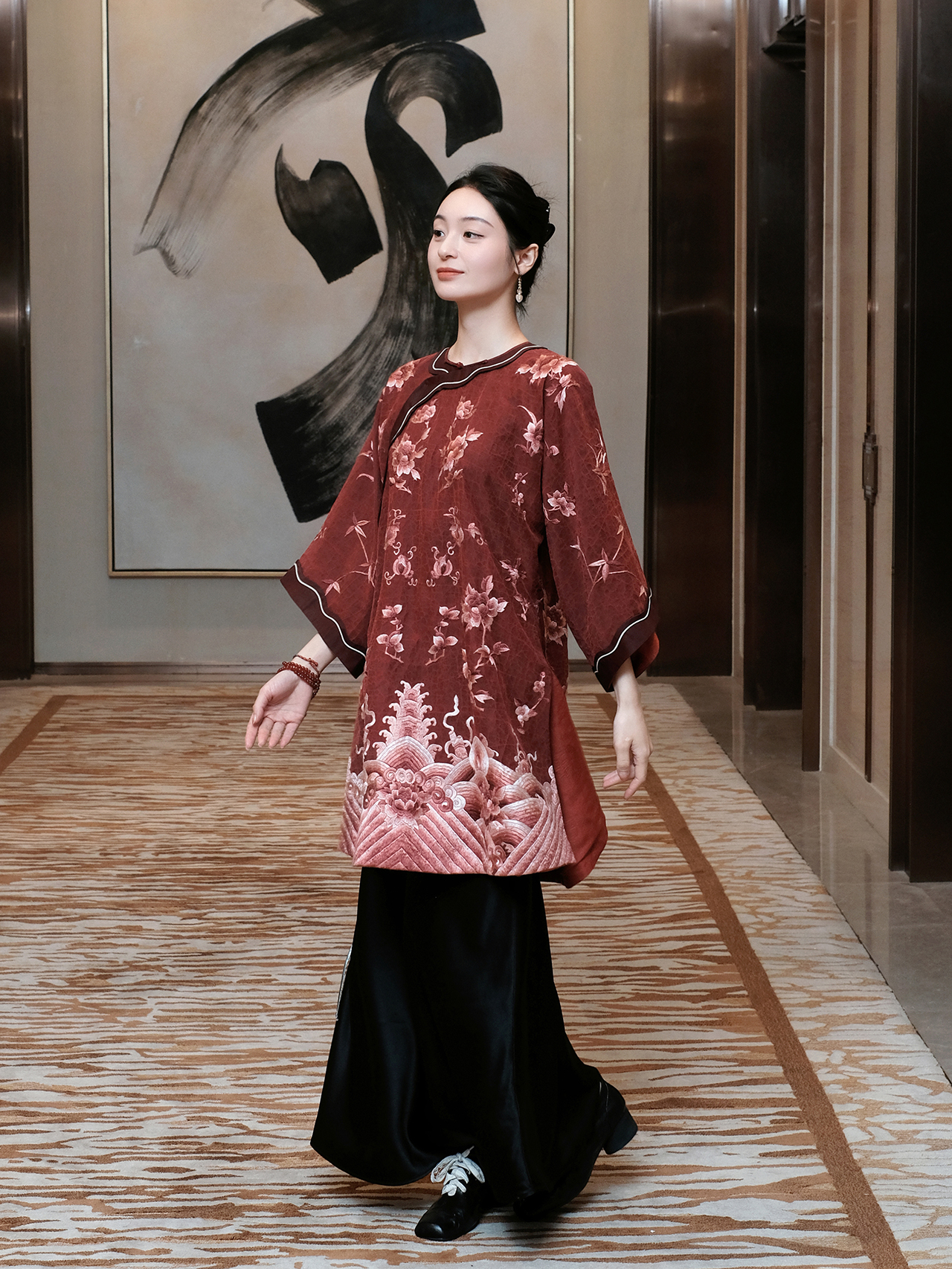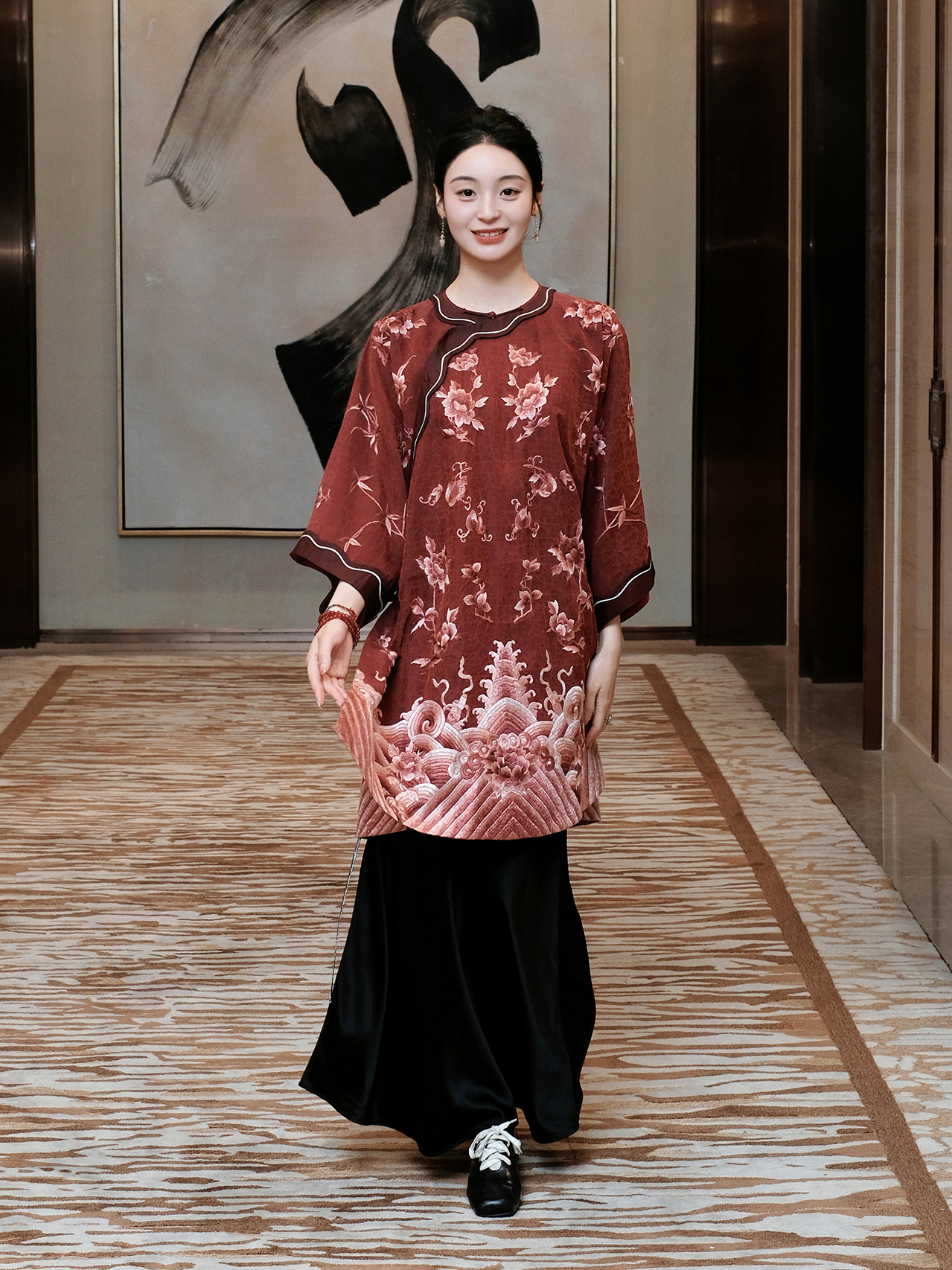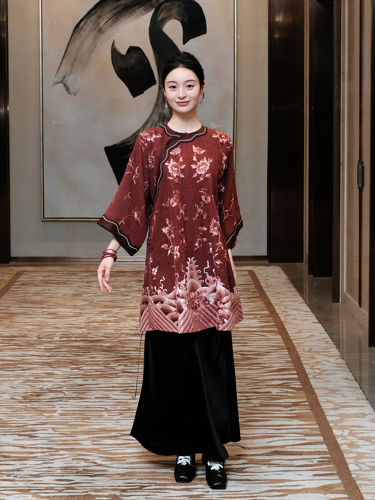 盛唐牡丹| 高货-红云纱手工满绣长衫