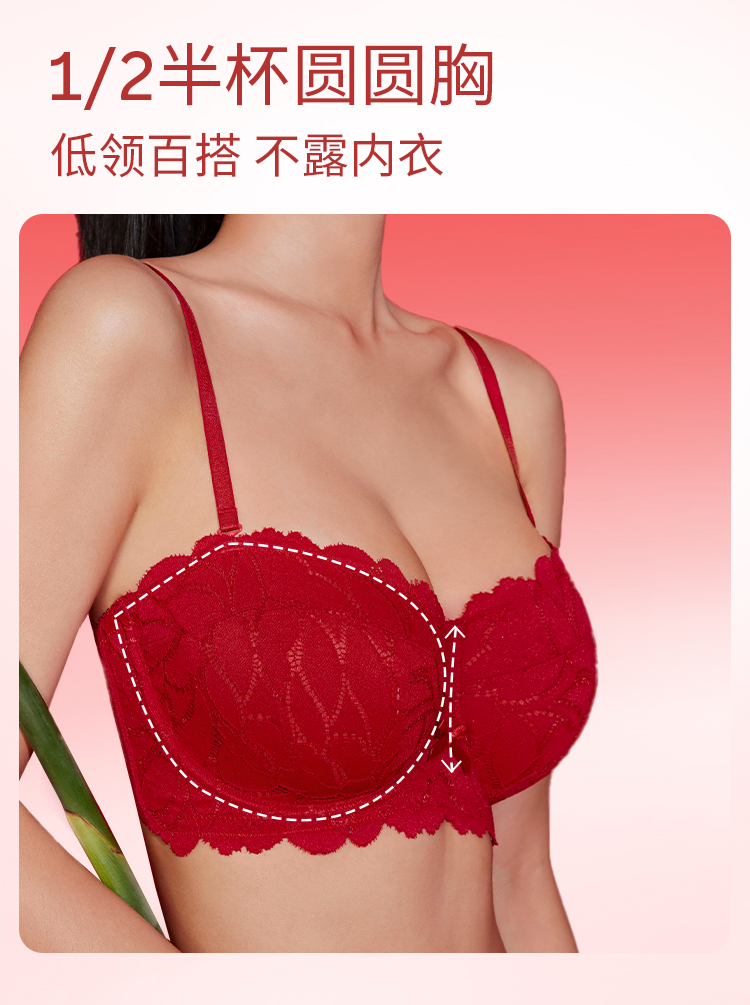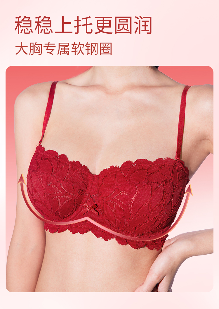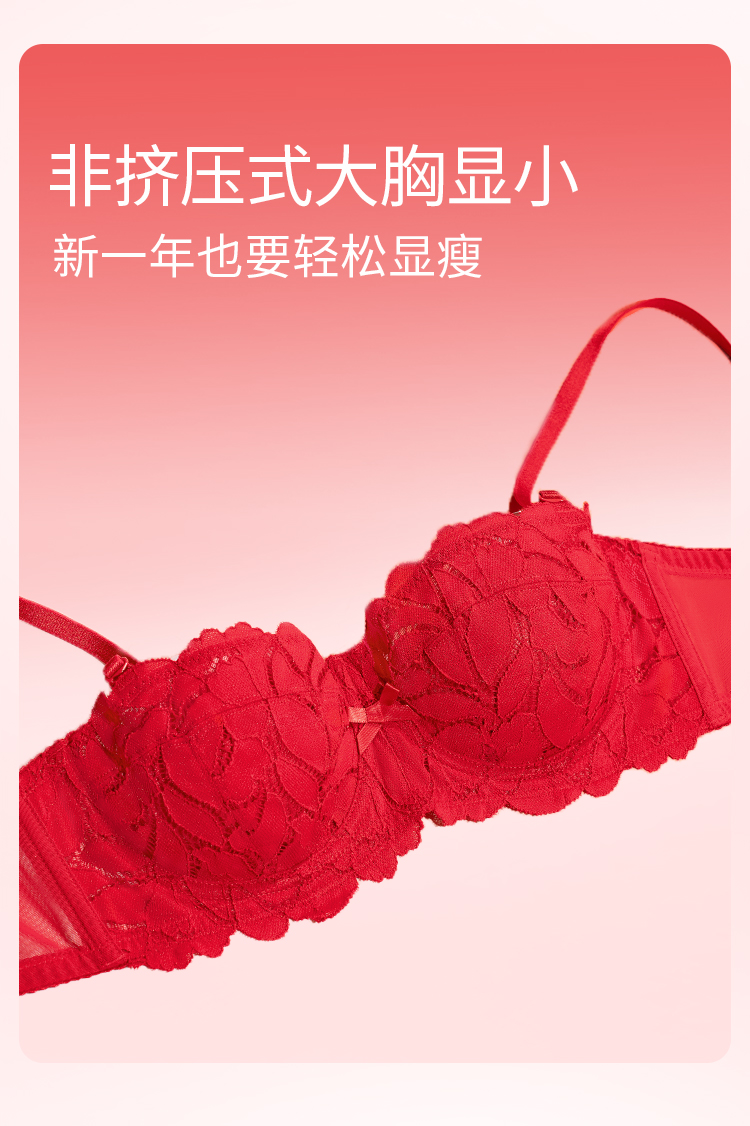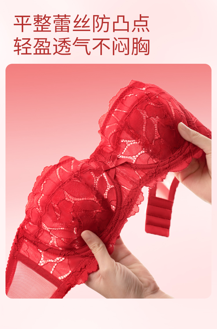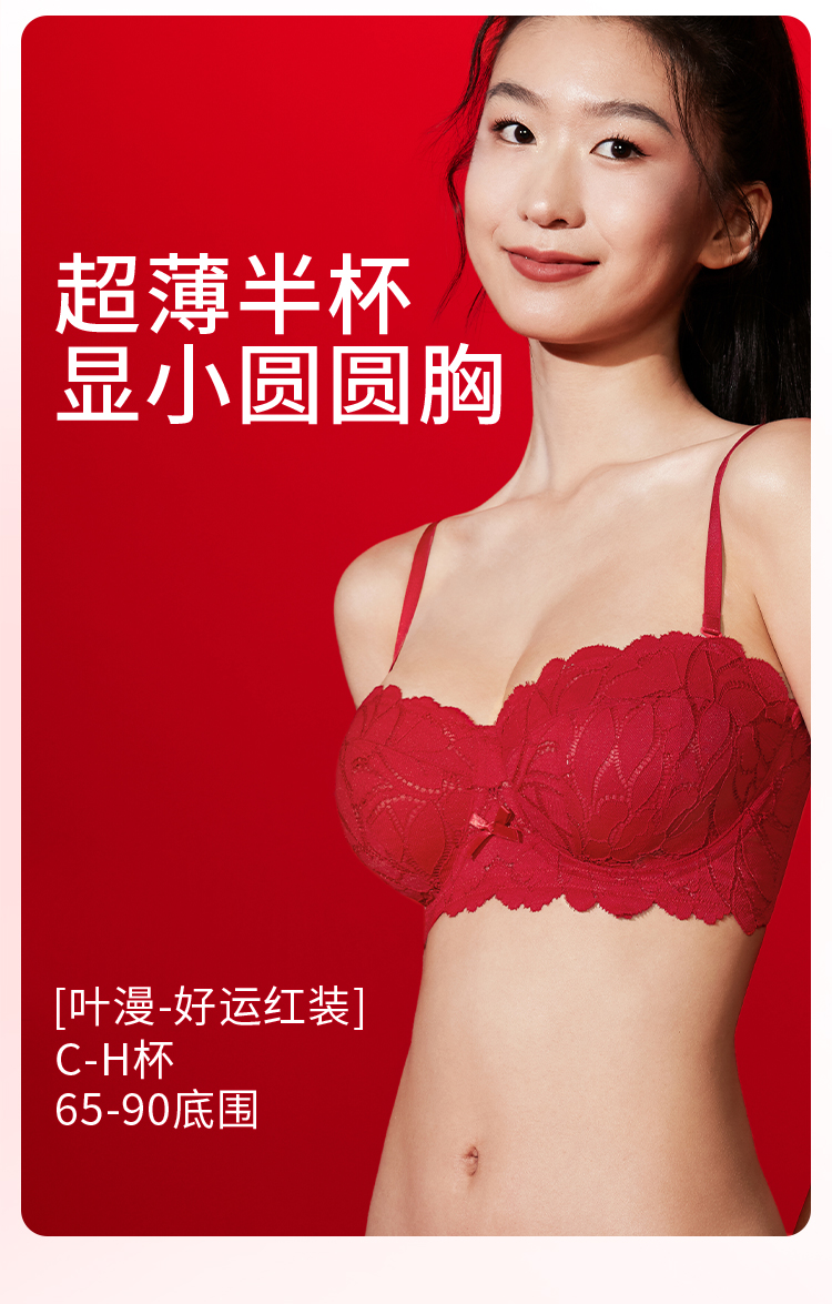 奶糖派大胸显小圆圆杯叶漫文胸迎新红超薄半杯防凸点蕾丝内衣女夏