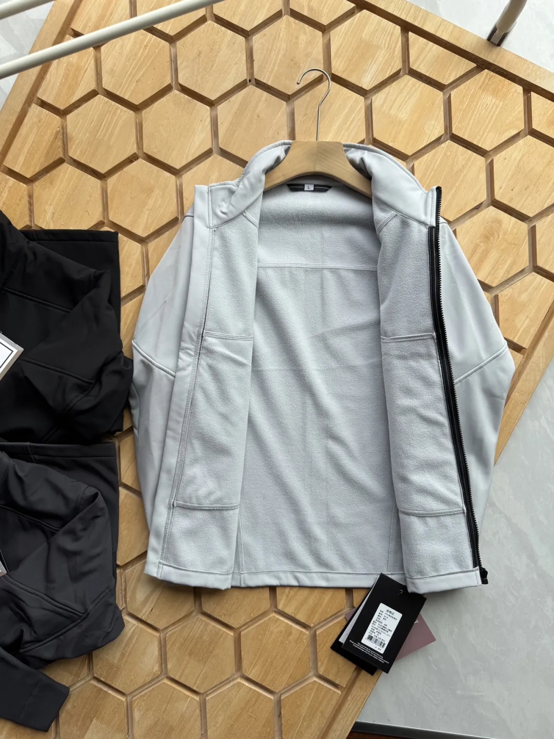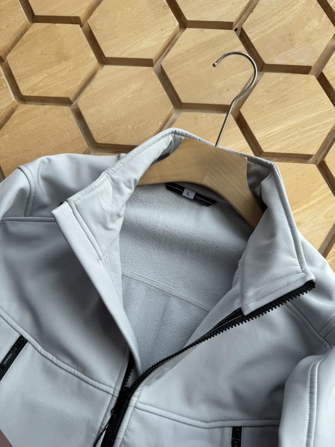 内里是抓绒的,有点厚度,春秋冬季节能够轻松驾驭,御寒效果相当出众!多片裁剪拼接设计,简洁干练的立领,两侧拉链口袋,安全保险的很;各种防风保暖细节都很到位。整体的视觉简洁利落,通勤也可以做到大方得体!