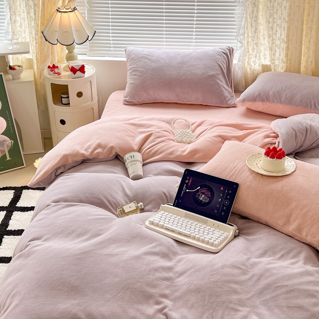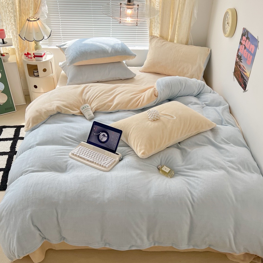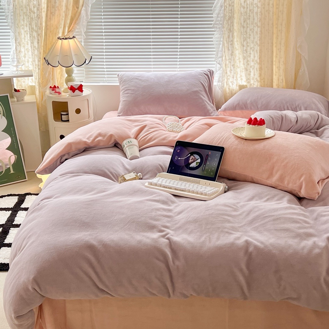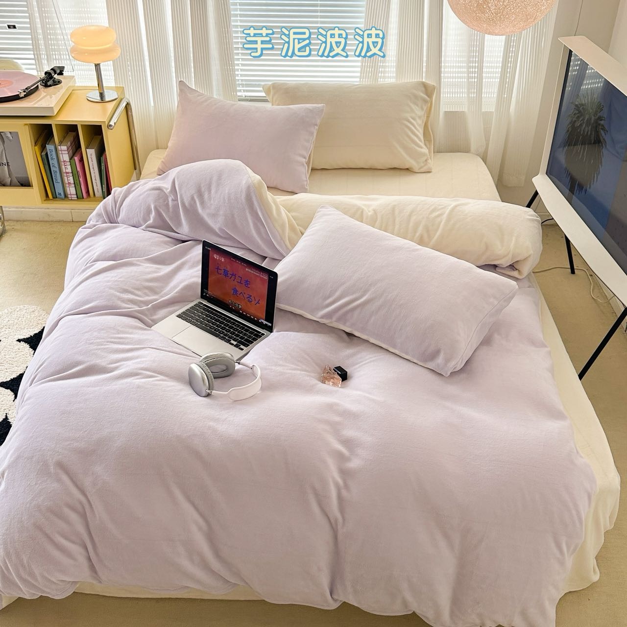 D112536氛围感奶油双拼牛奶绒高品质保暖牛奶绒床上四件套